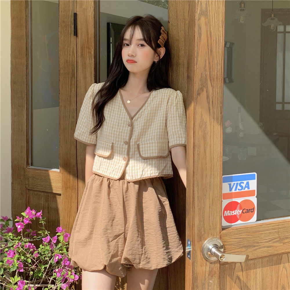 - 颜色分类:卡其格上衣单件
