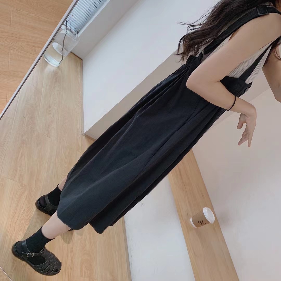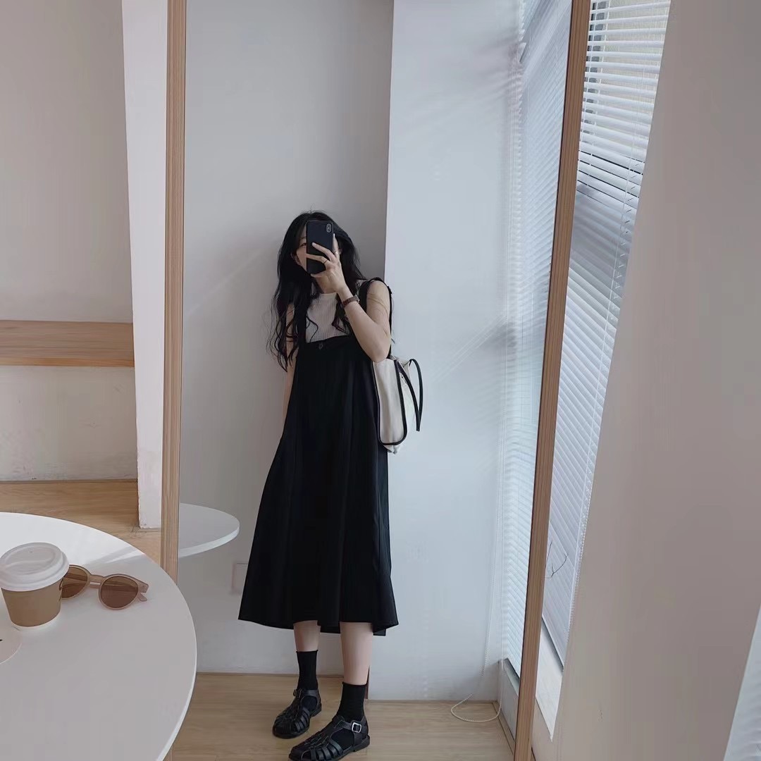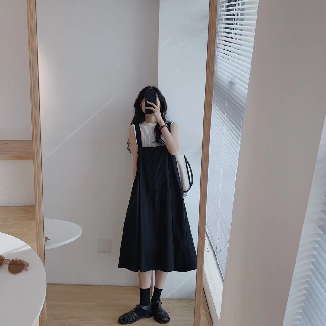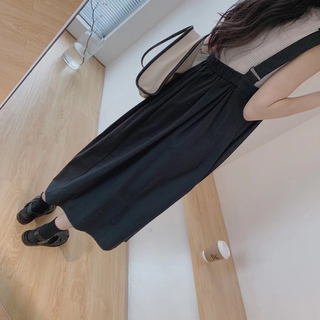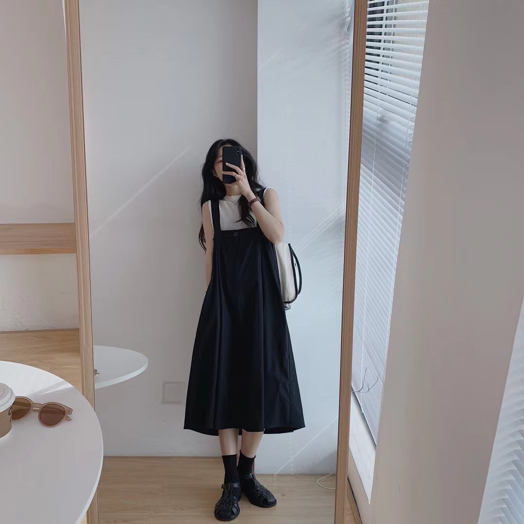 赞赞高品质黑糖泡芙韩系一粒扣背带裙+冰沙无袖背心套装