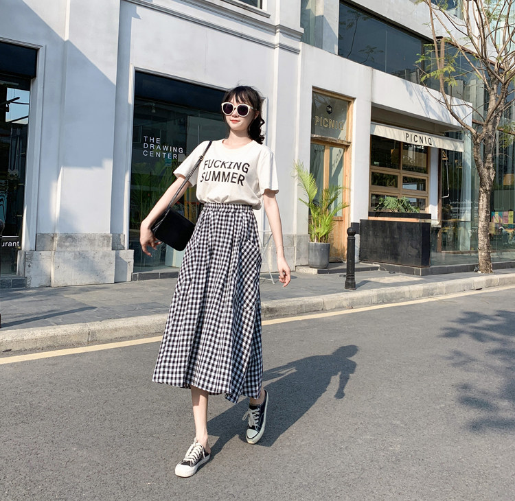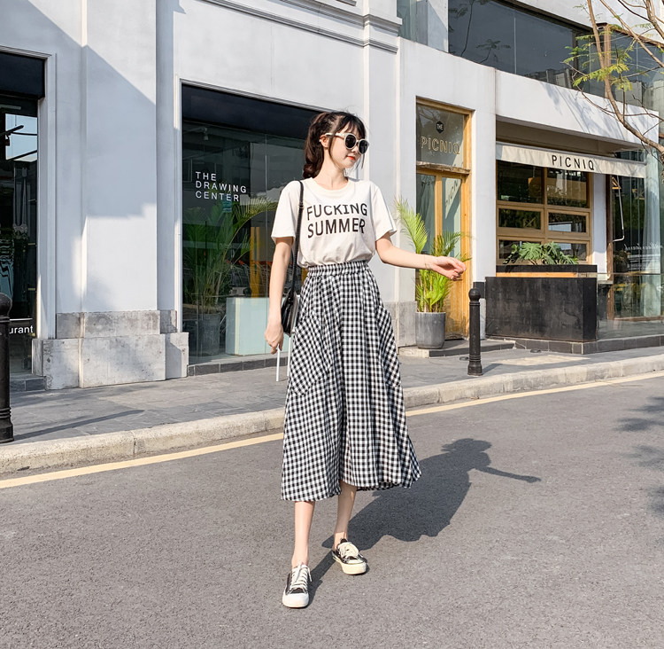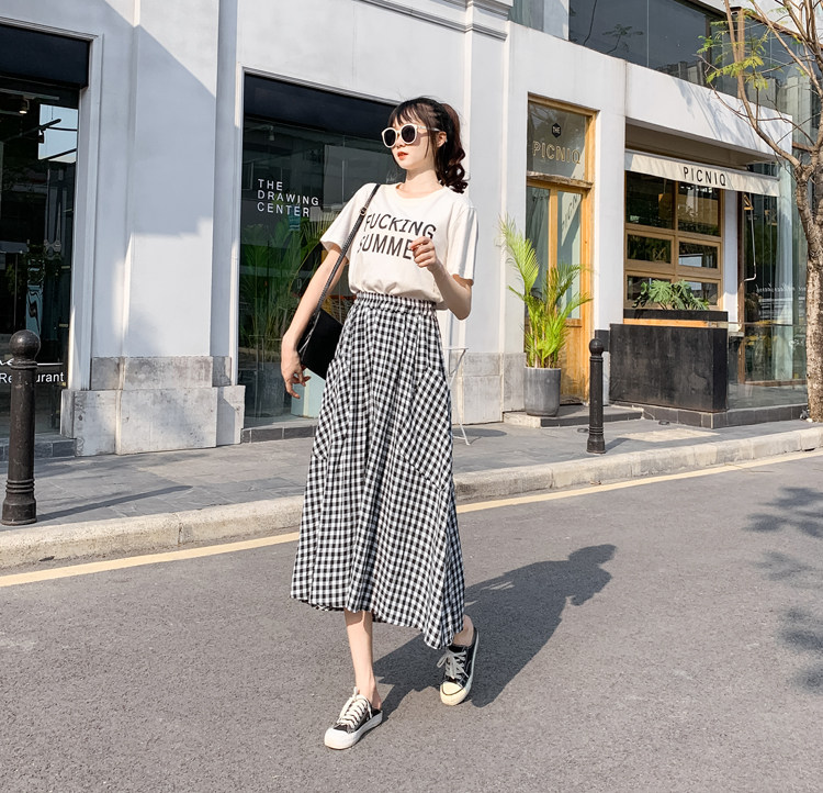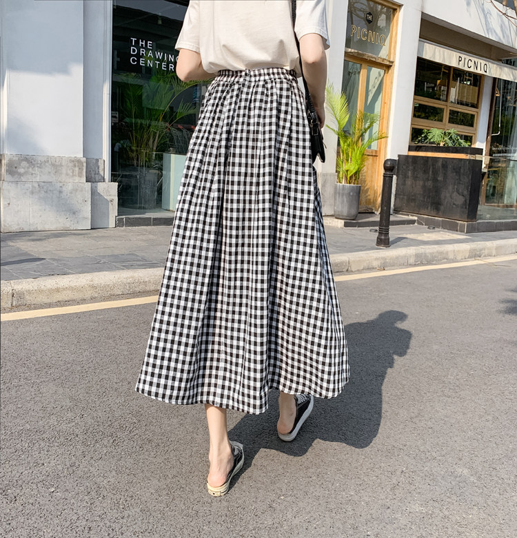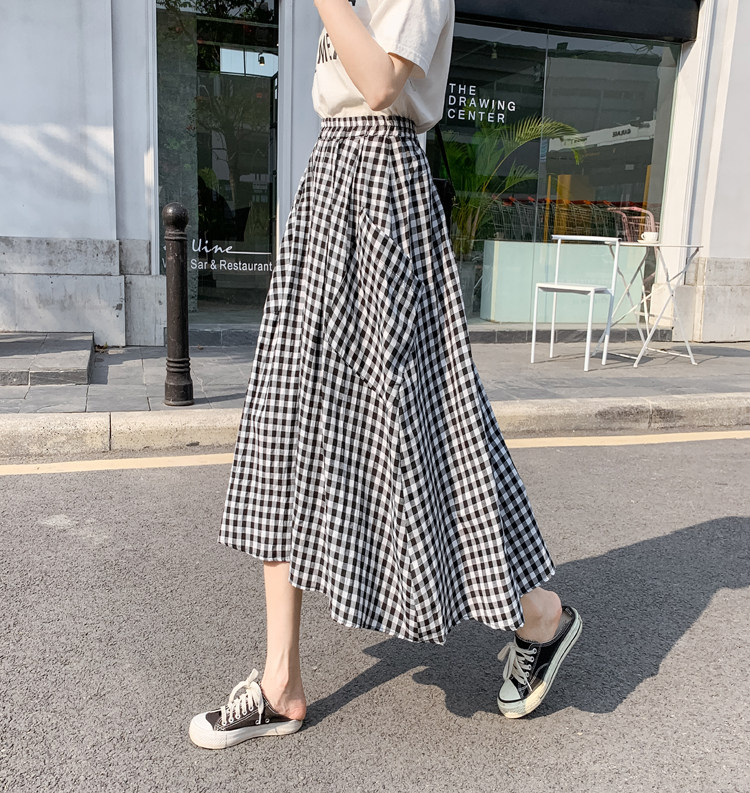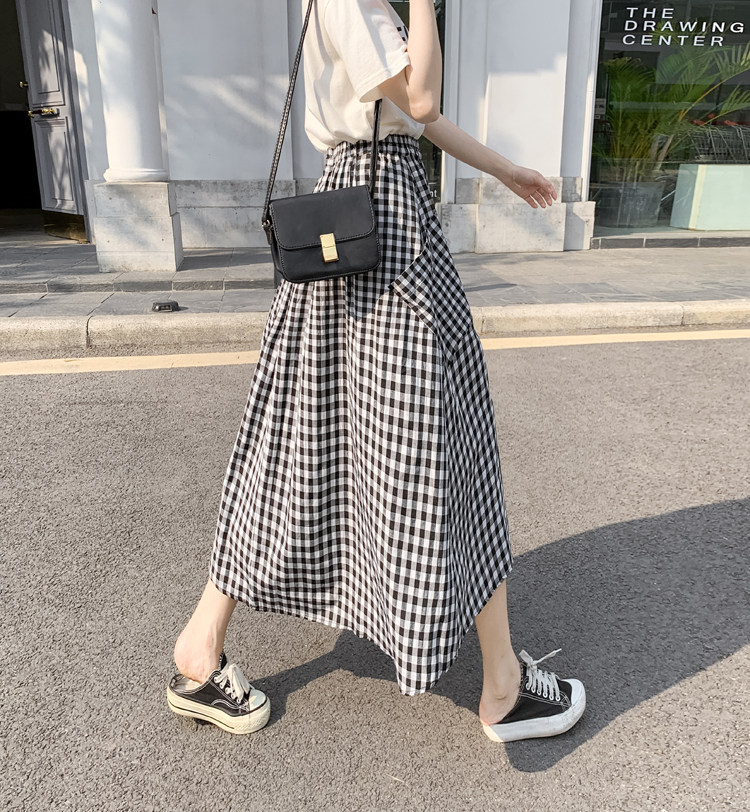 格子半身裙女2021春夏显瘦百搭微胖mm大码宽松中长款高腰a字裙子