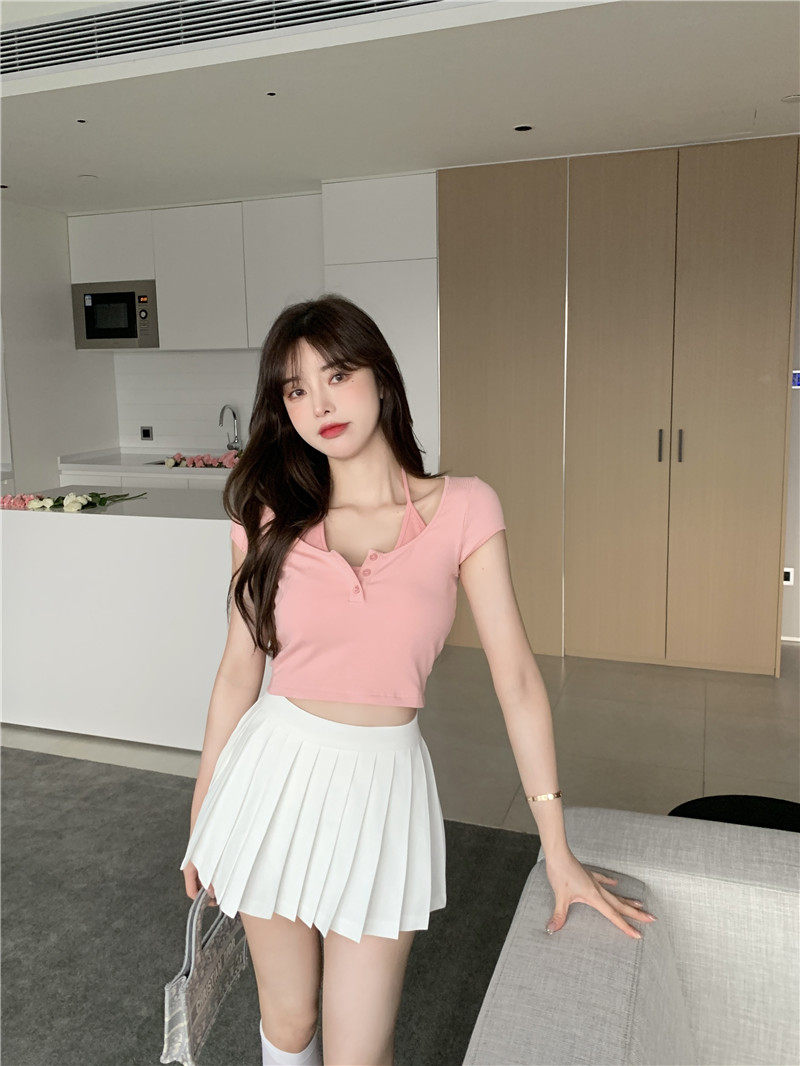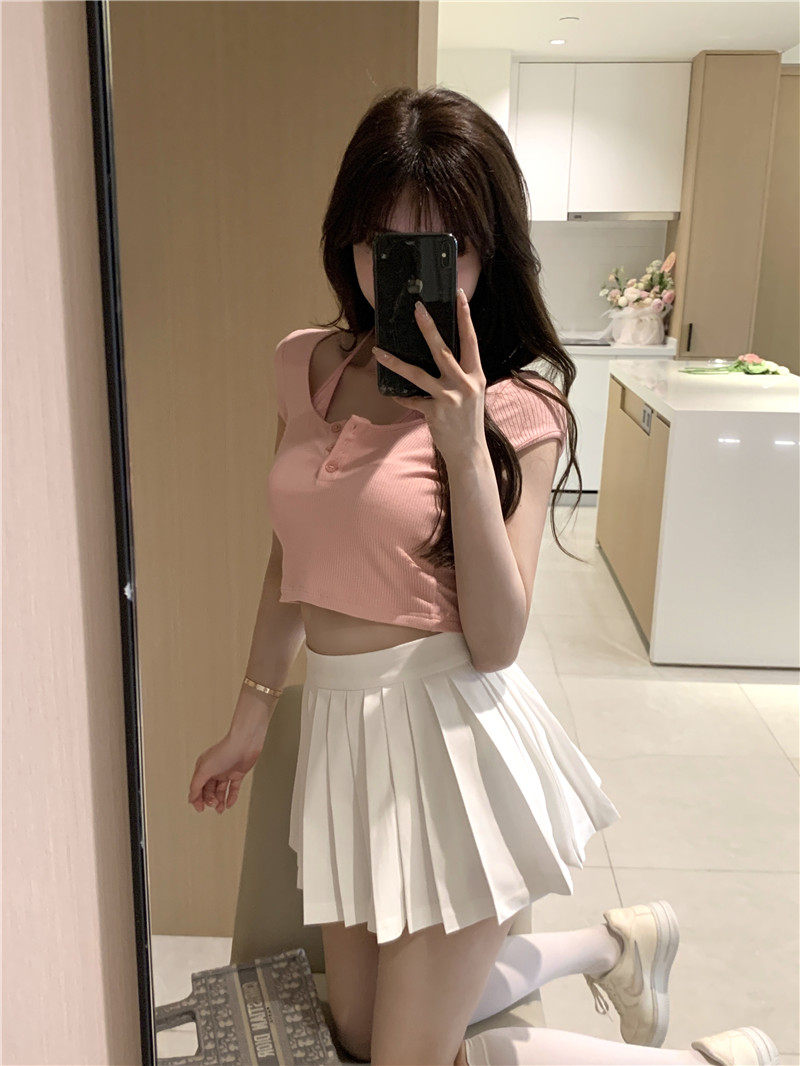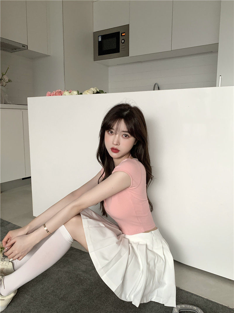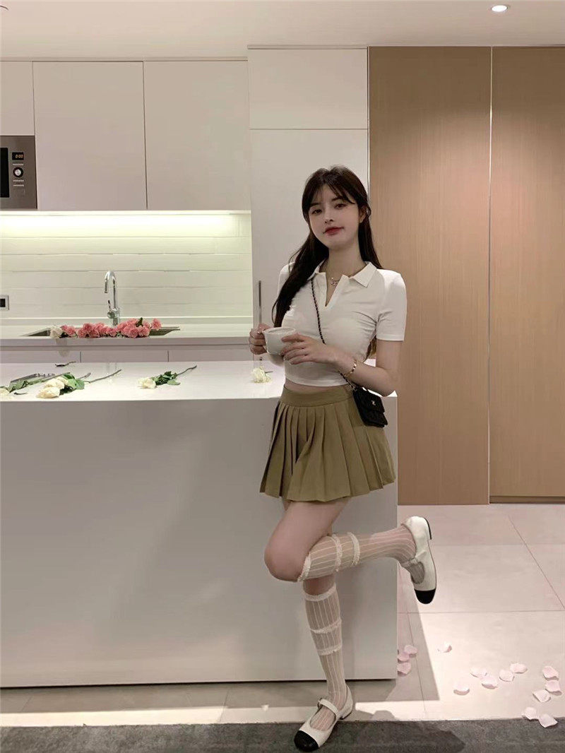 实拍实价 A字短裙高腰显瘦半身裙学院风修身百褶裙女
