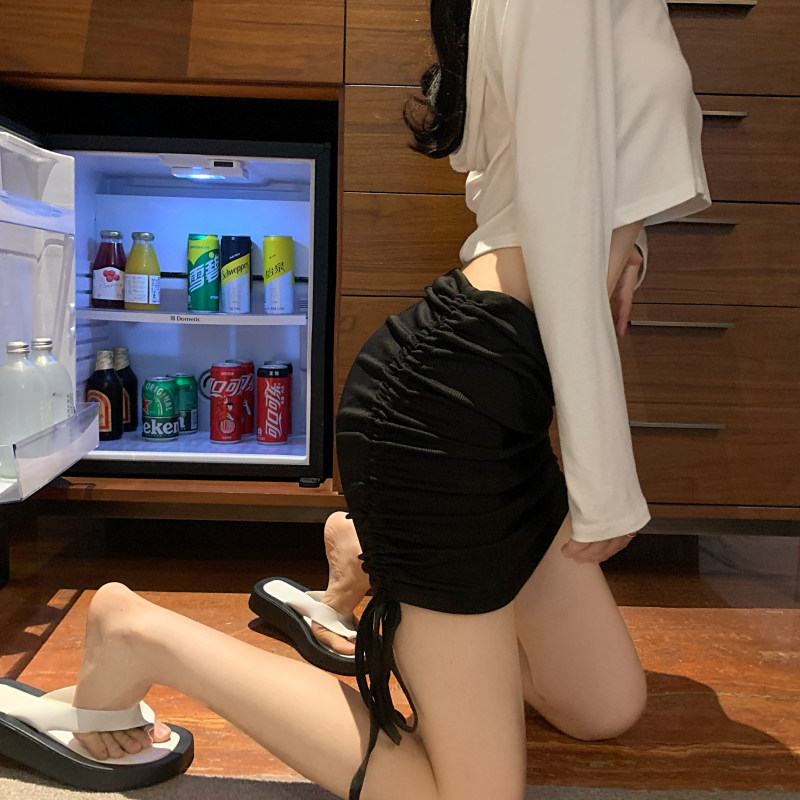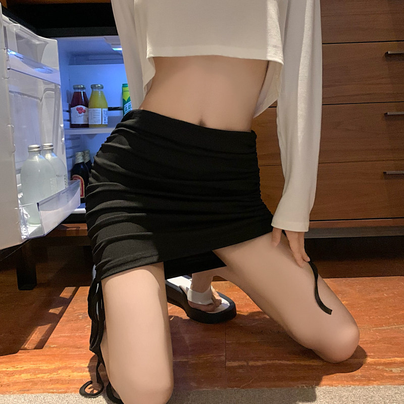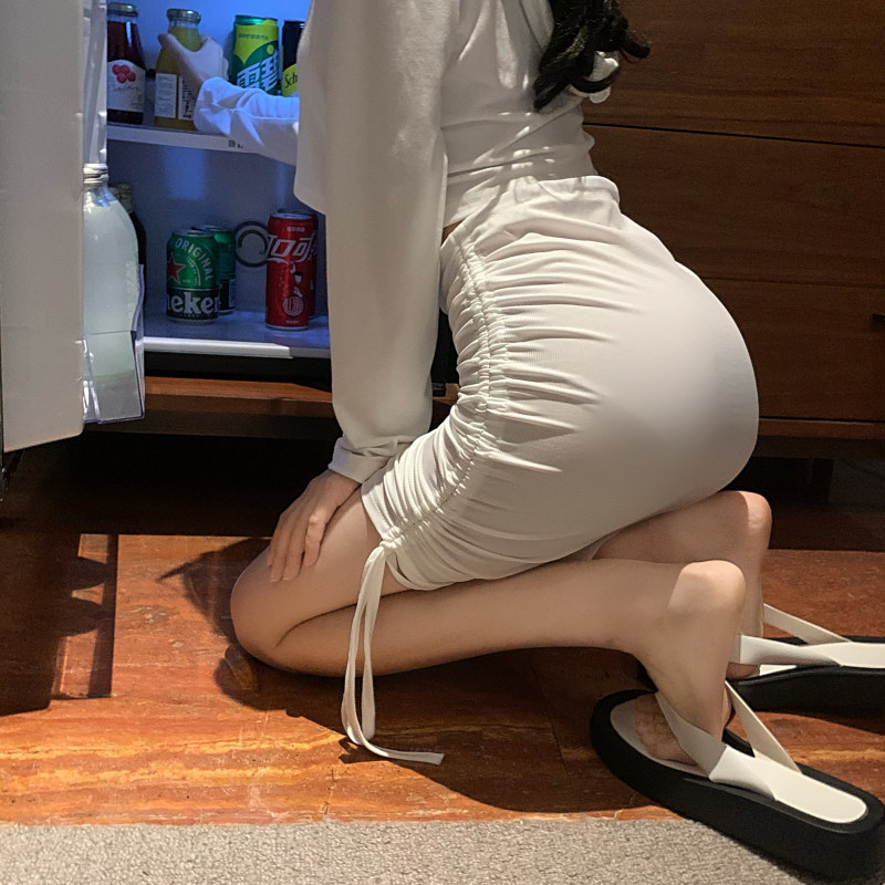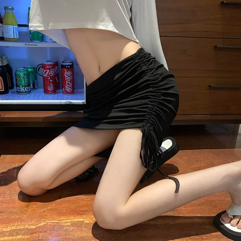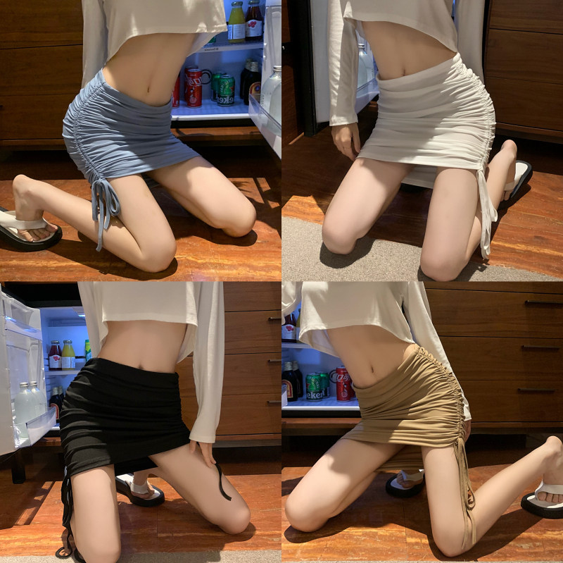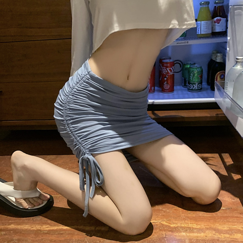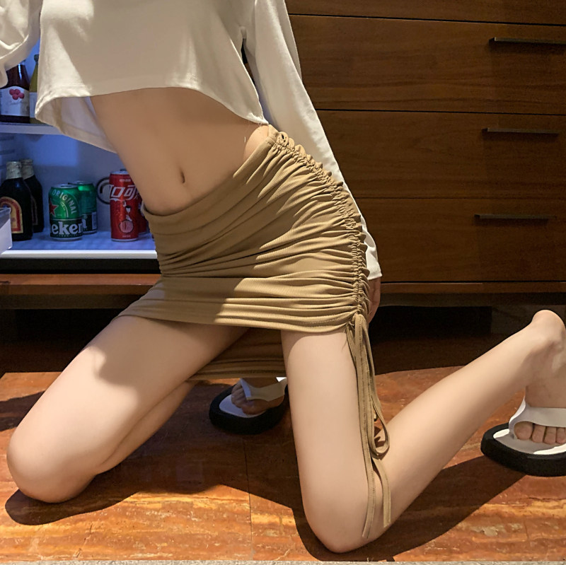 实拍实价 ins风修身包臀显臀弹力抽绳绑带半身裙