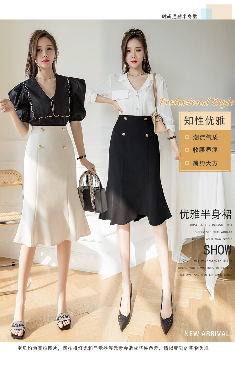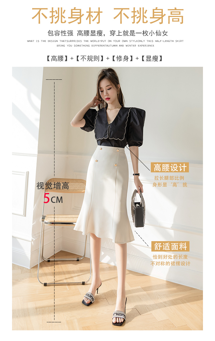实拍+视频+三标 荷叶边半身裙女2021春夏高腰中长遮跨包臀一步裙