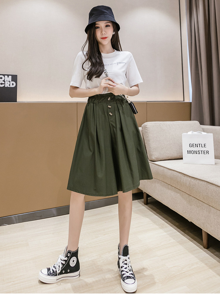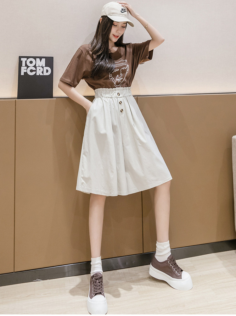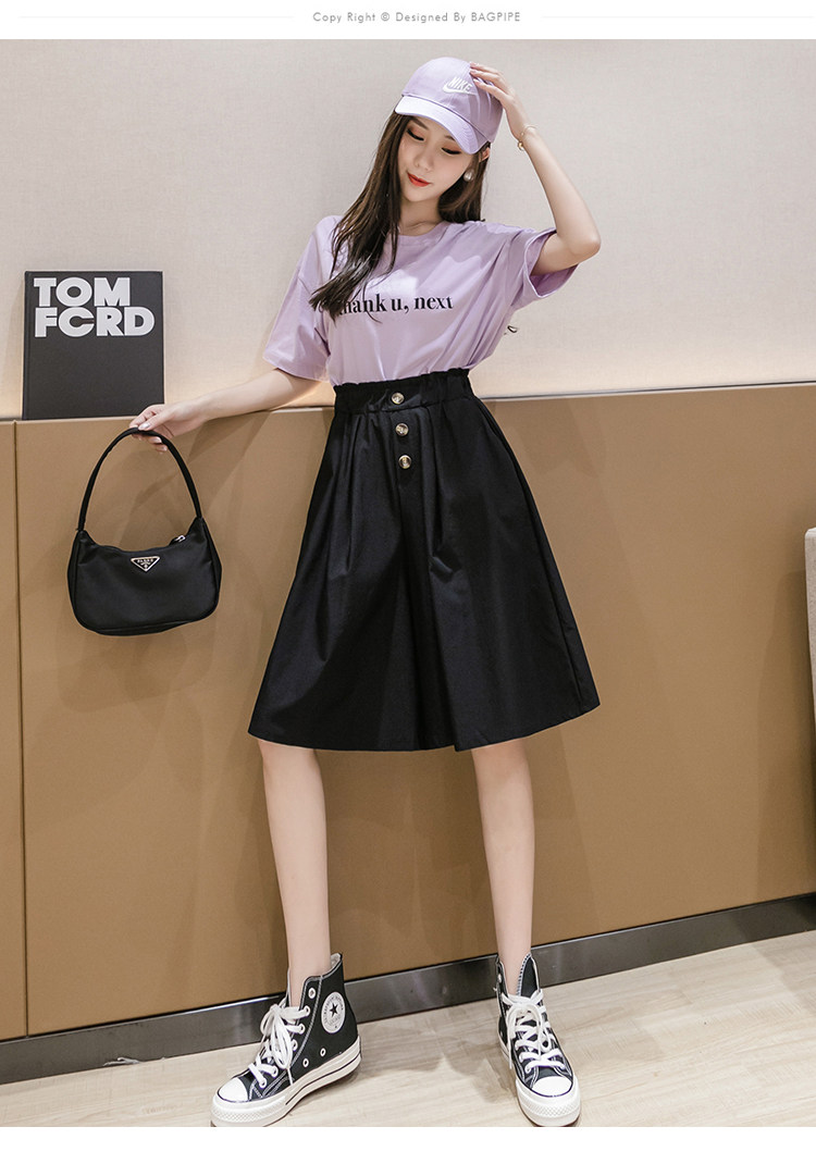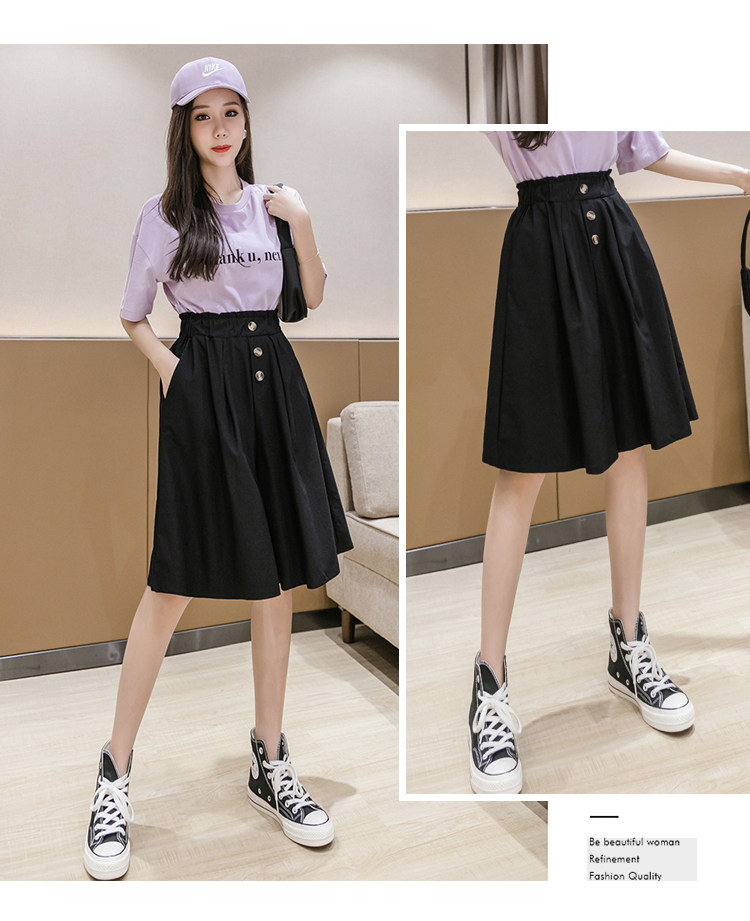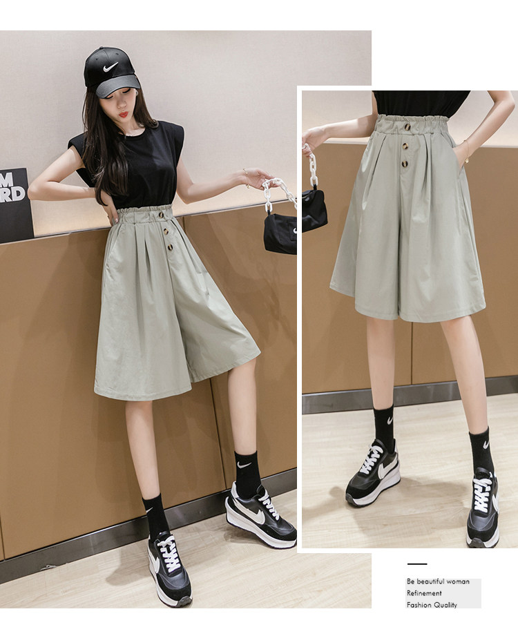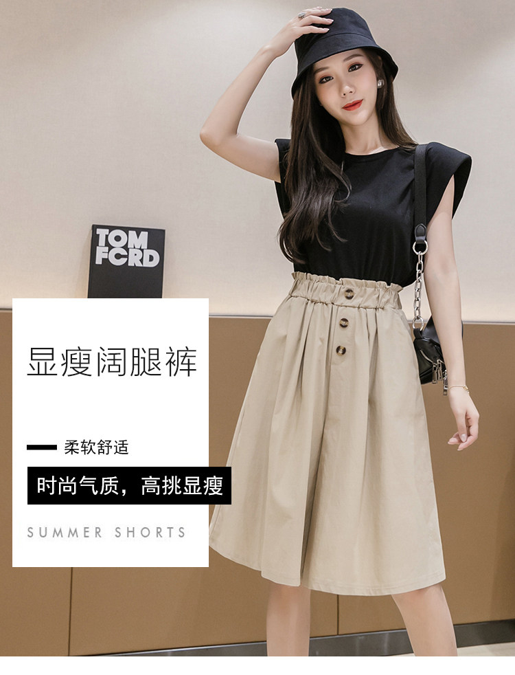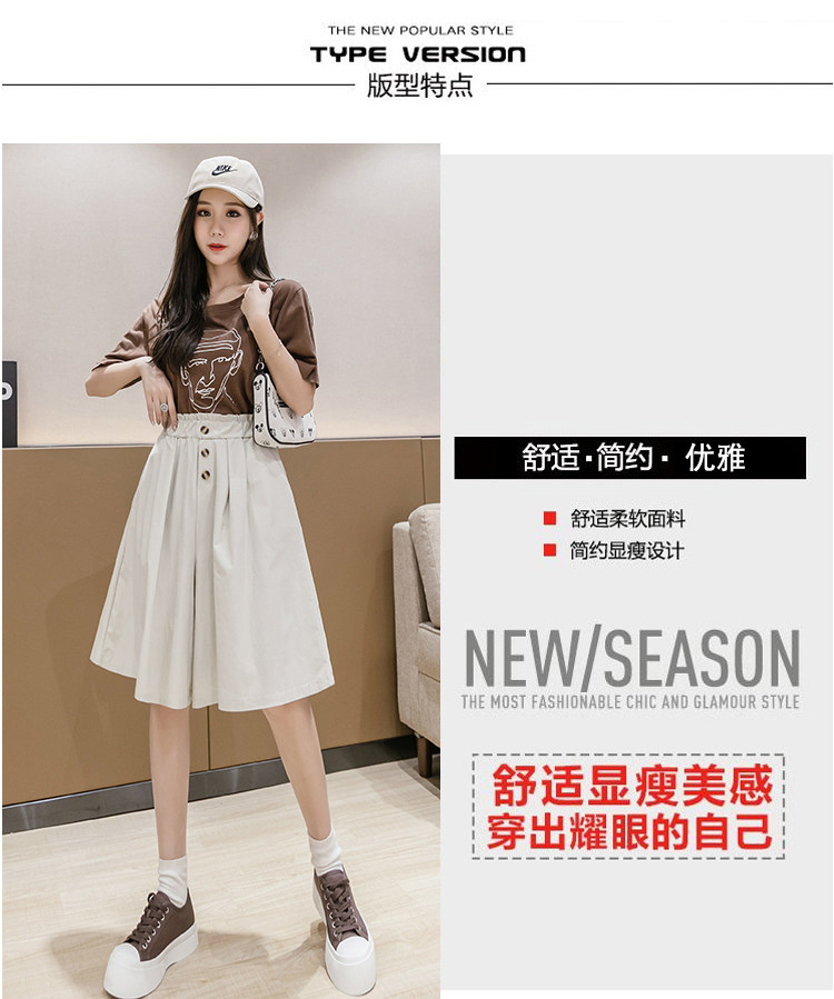 2021春夏季新款阔腿裤休闲裤女韩版高腰显瘦时尚中裤五分裤