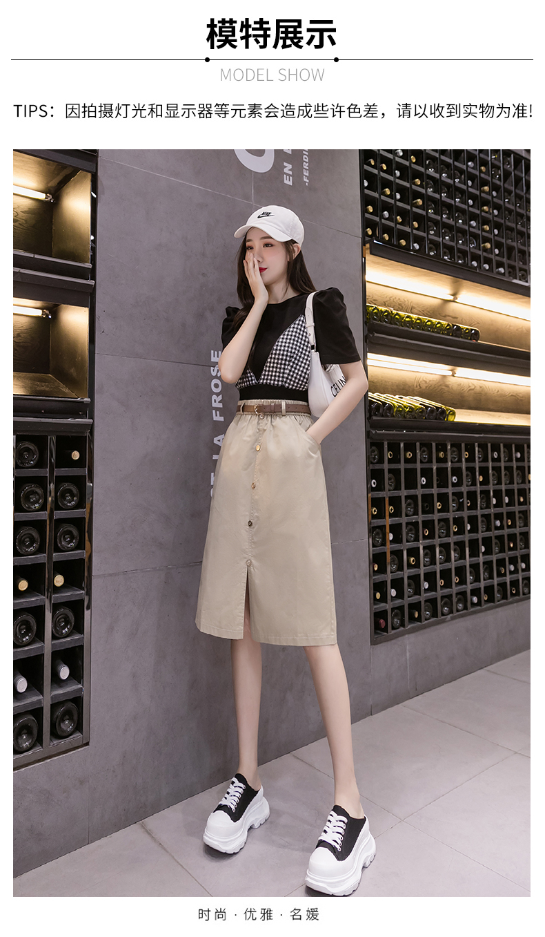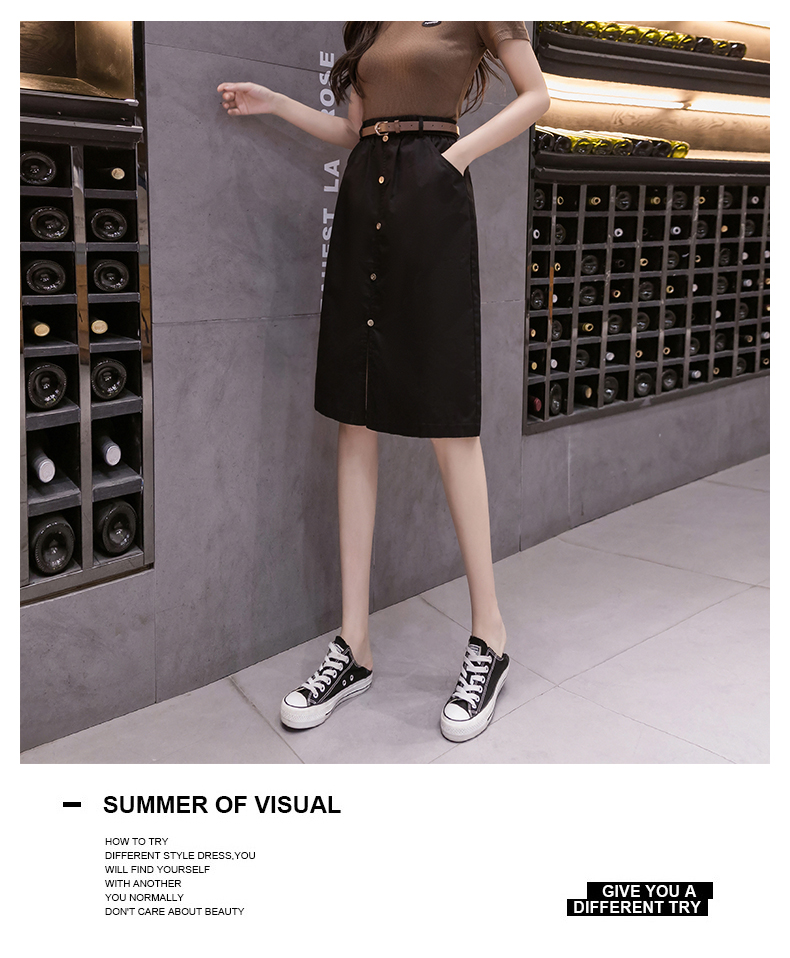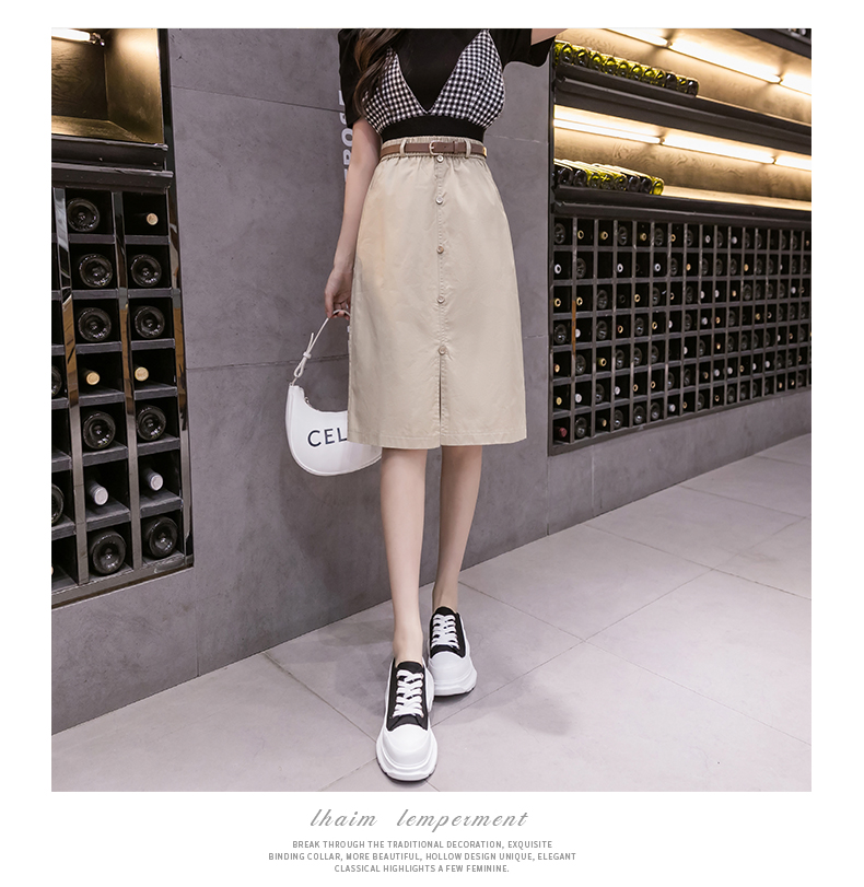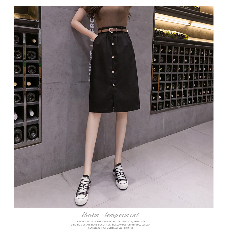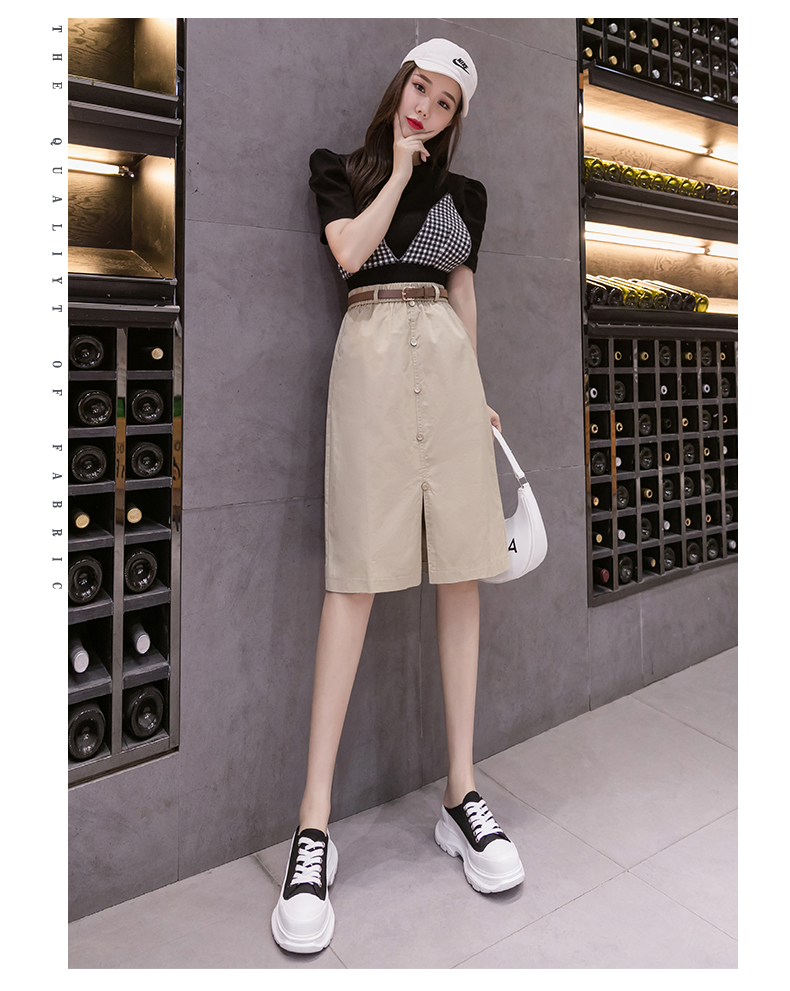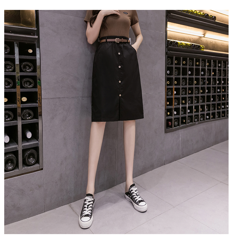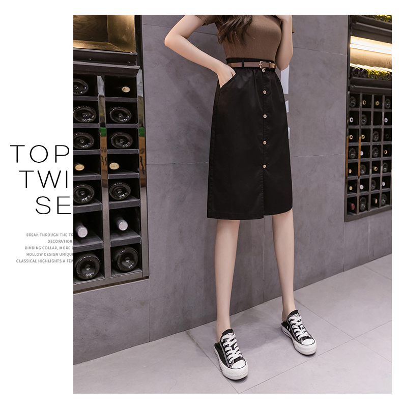 松紧腰中长款半身裙女高腰夏季韩版宽松开叉直筒显瘦过膝一步长裙
