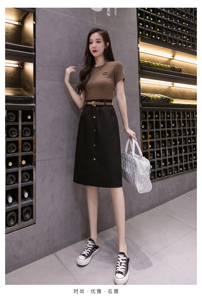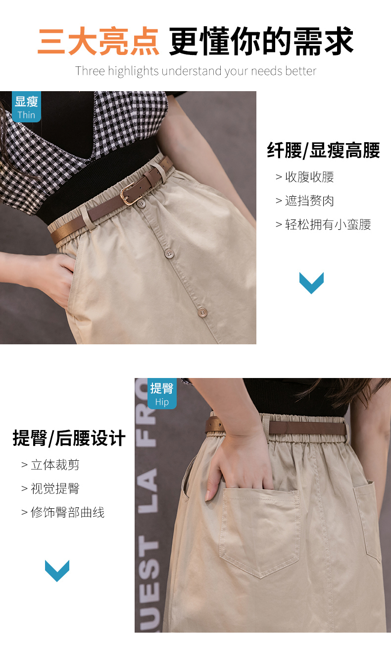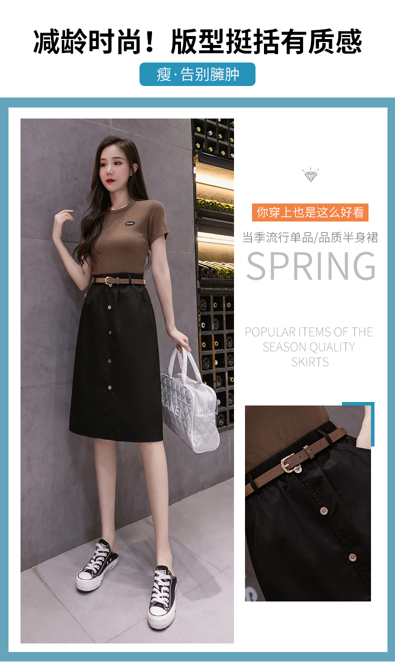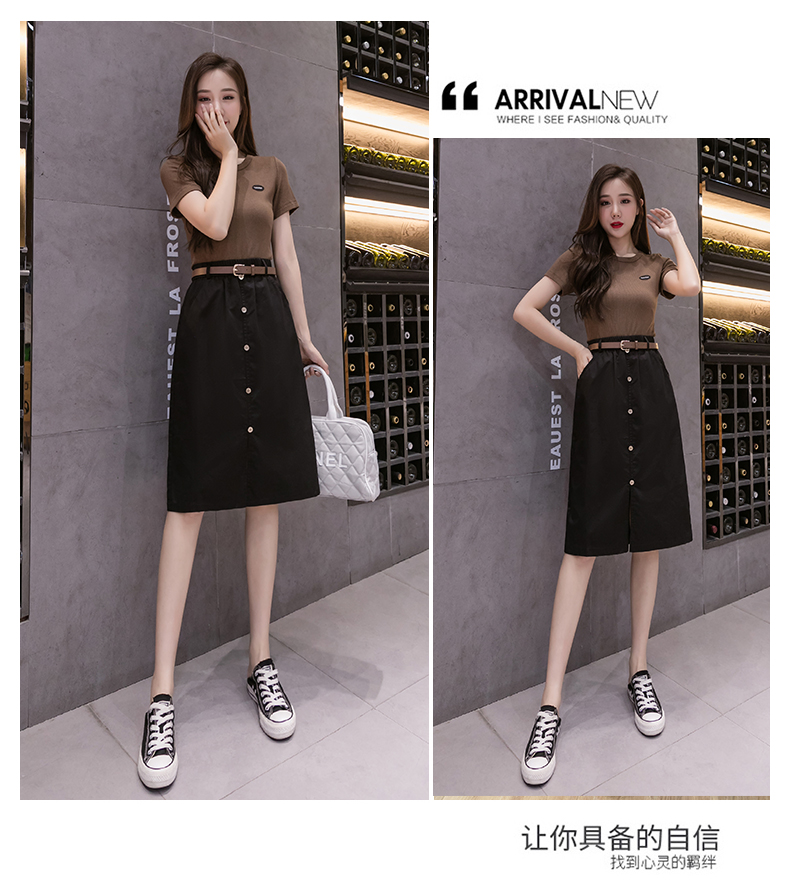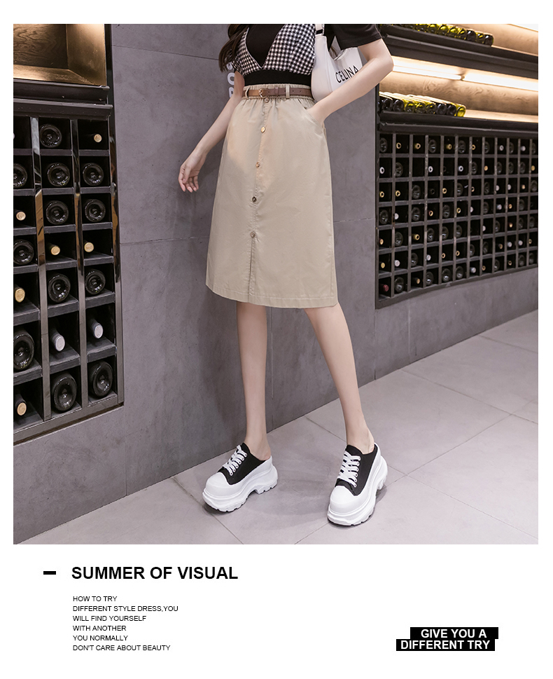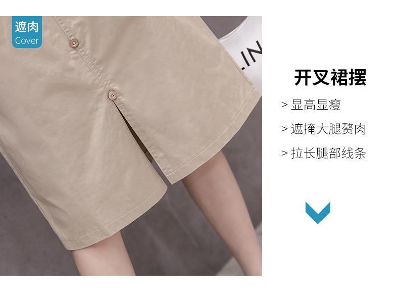 松紧腰中长款半身裙女高腰夏季韩版宽松开叉直筒显瘦过膝一步长裙