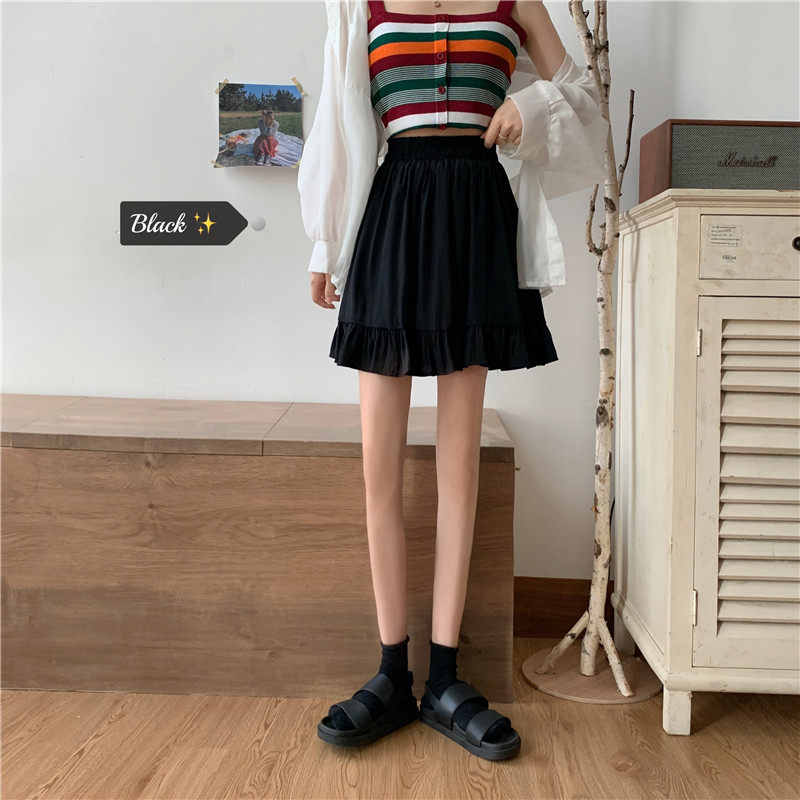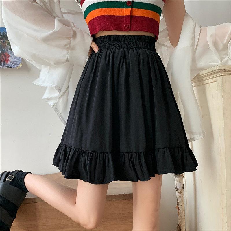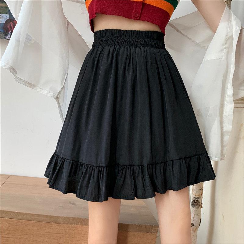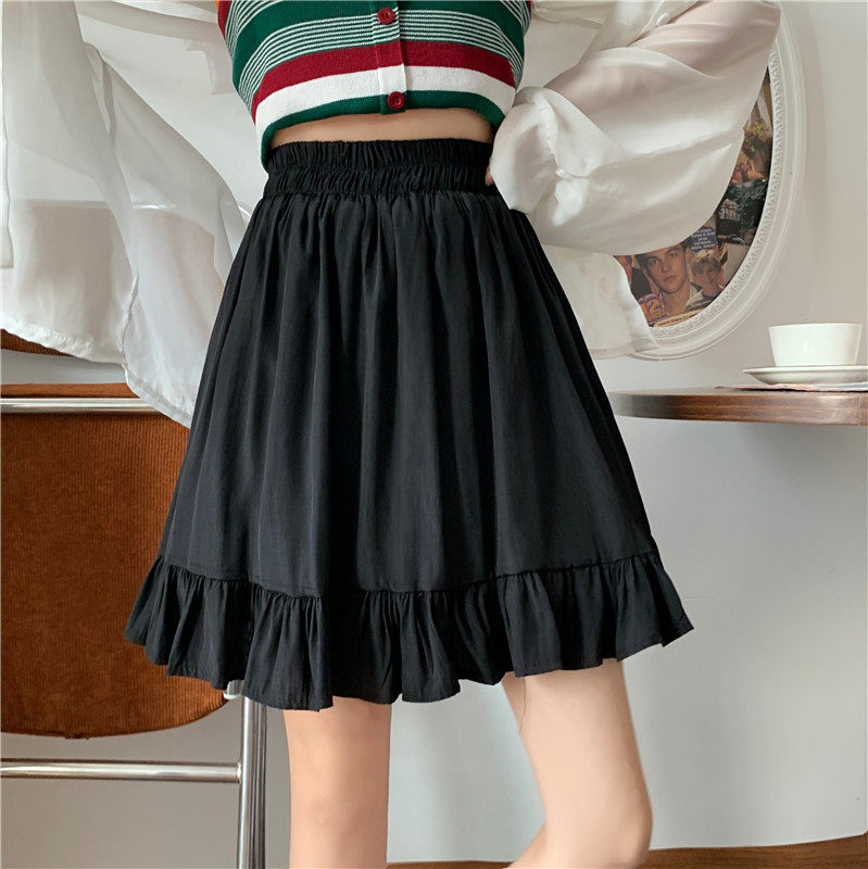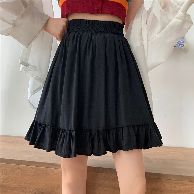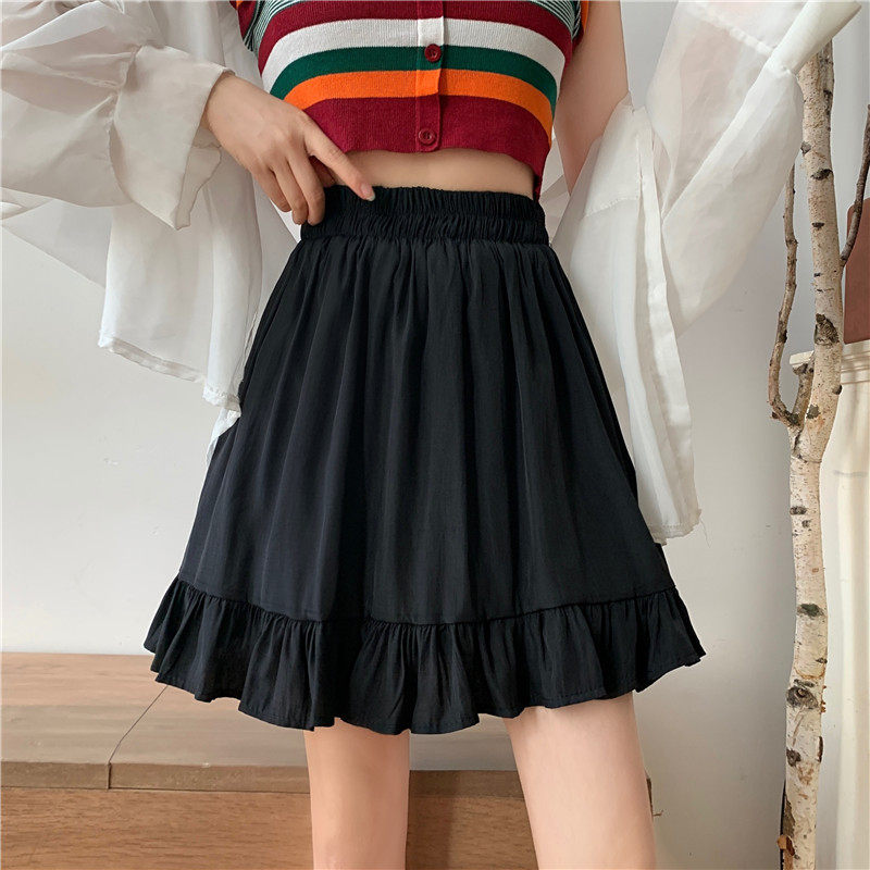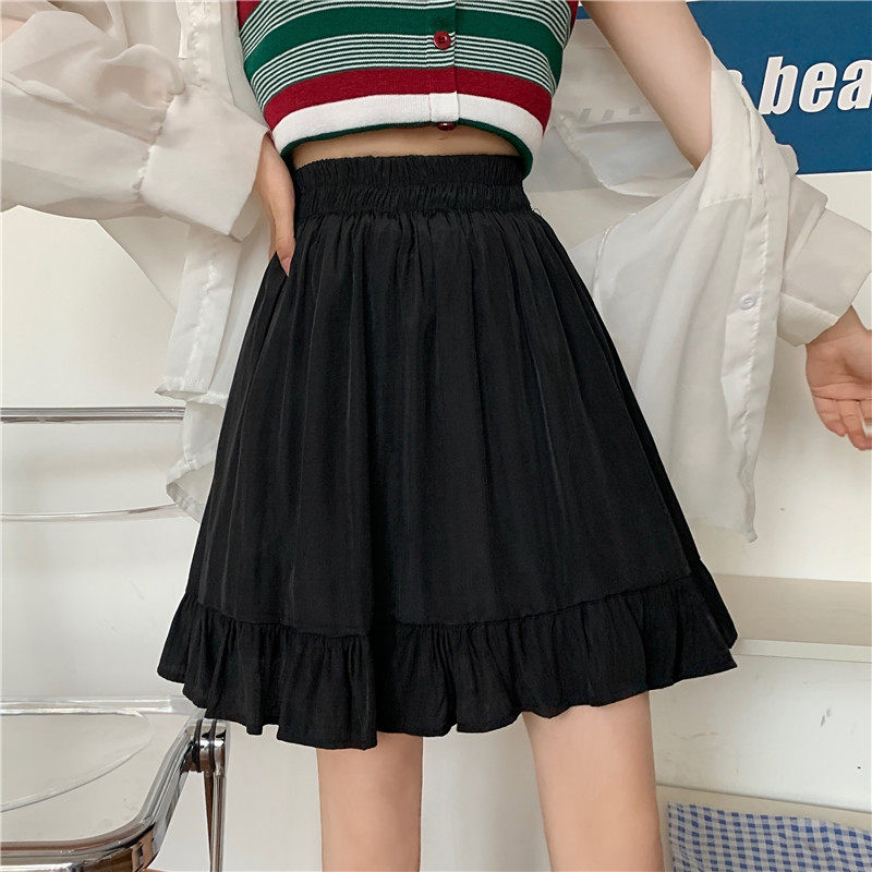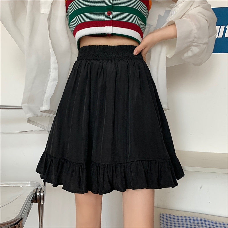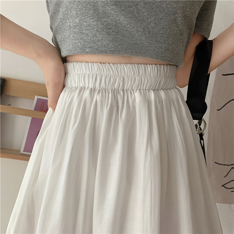 实拍~2021年半身裙女夏季韩版高腰显瘦chic纯色百褶裙A字短裙子