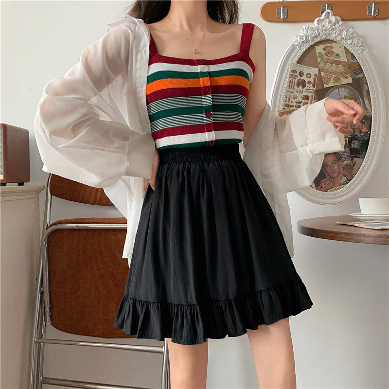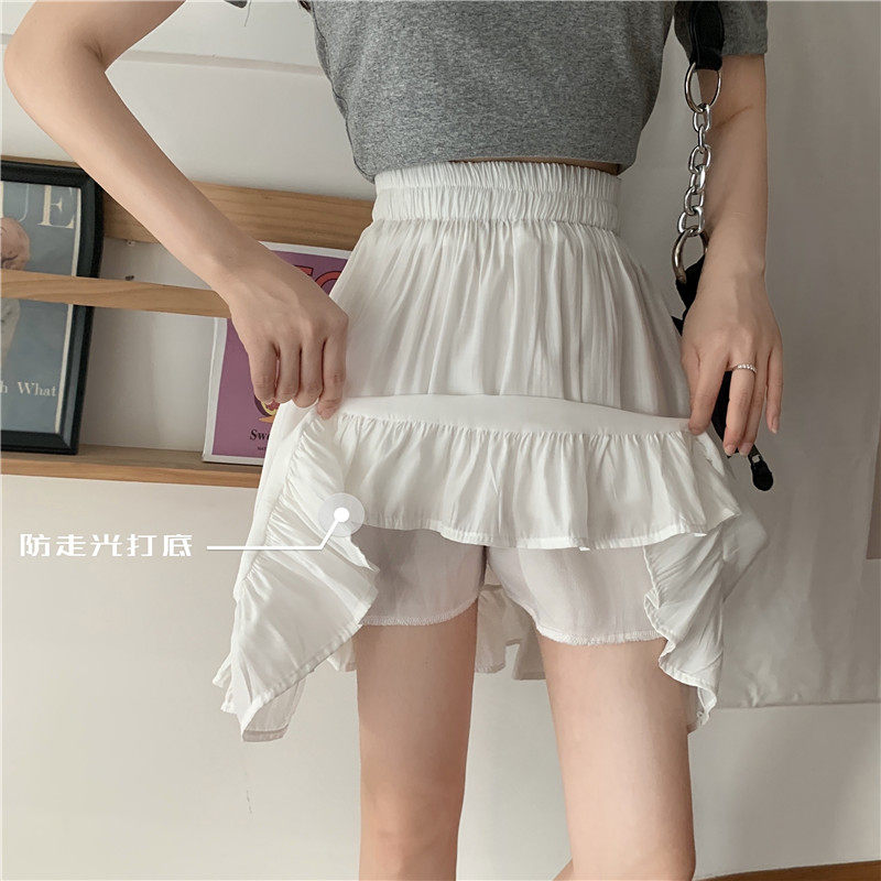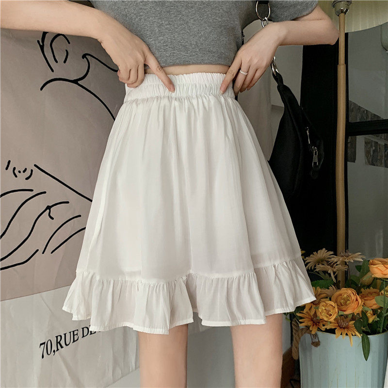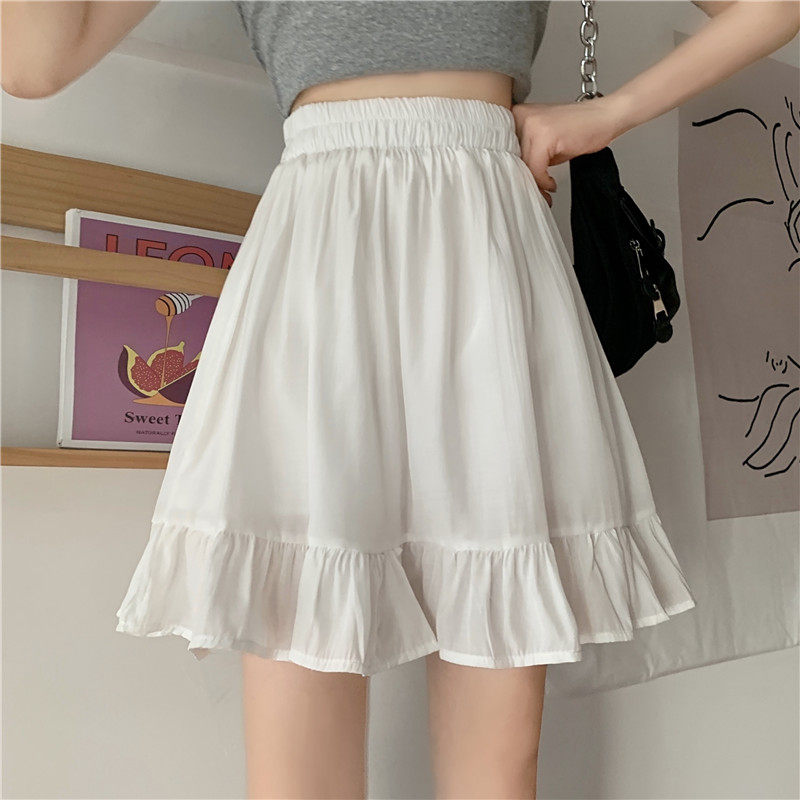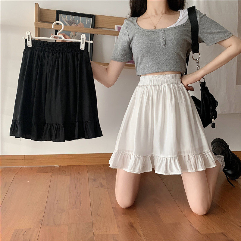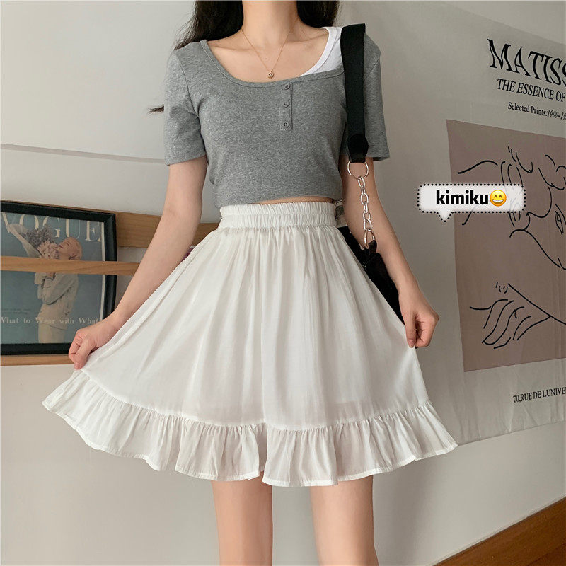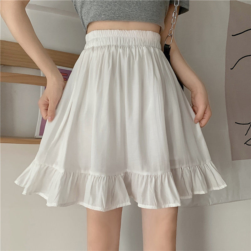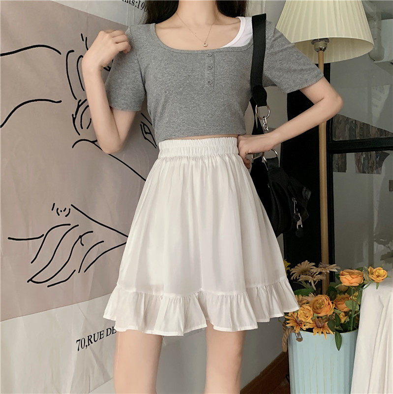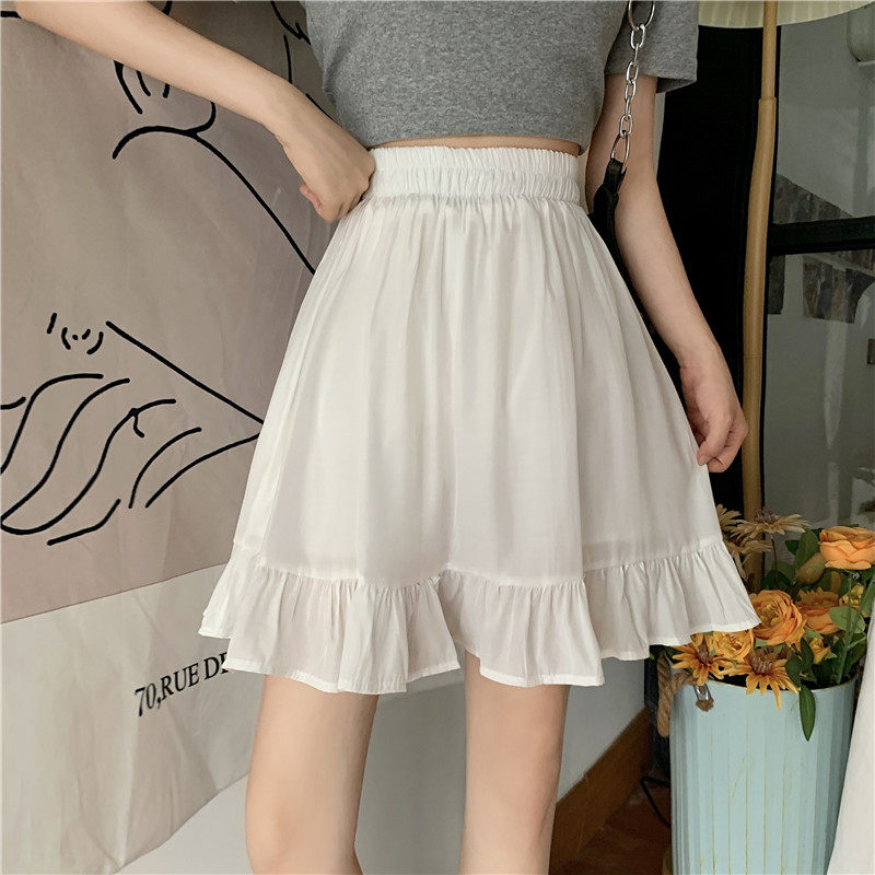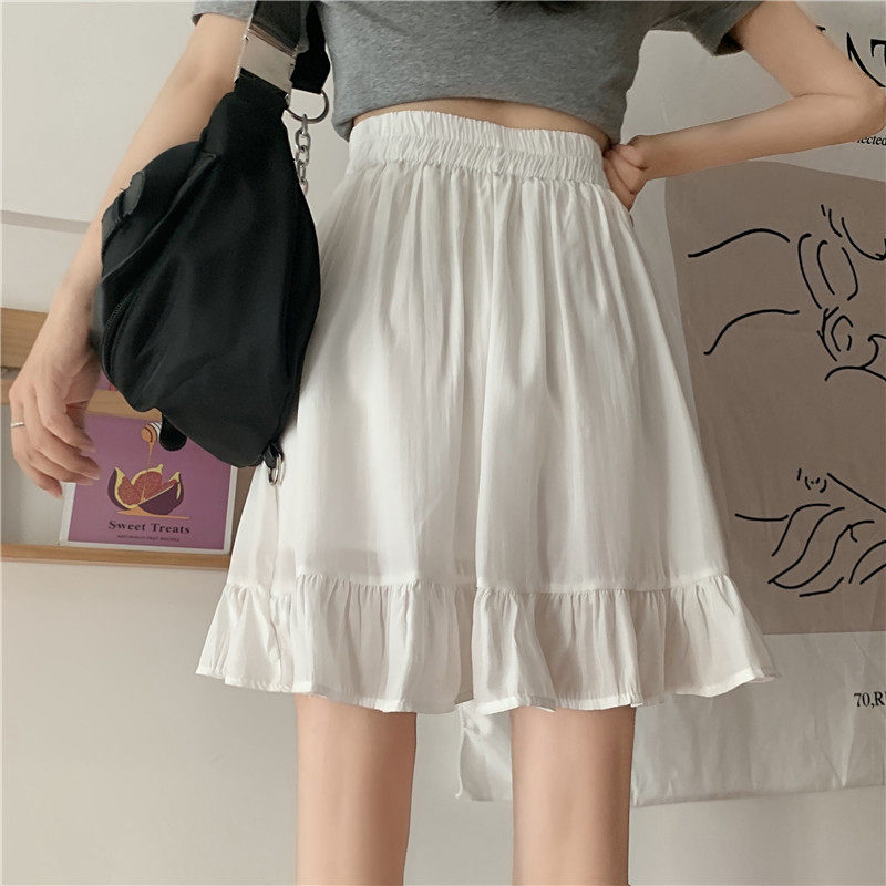 实拍~2021年半身裙女夏季韩版高腰显瘦chic纯色百褶裙A字短裙子