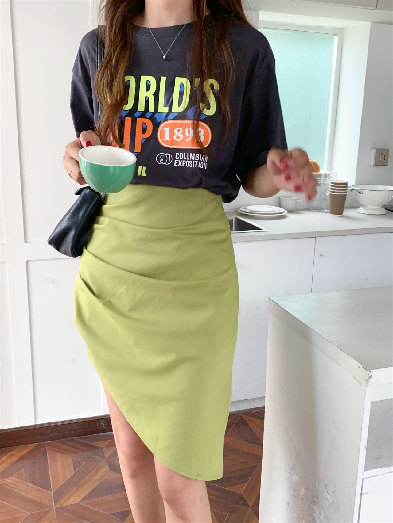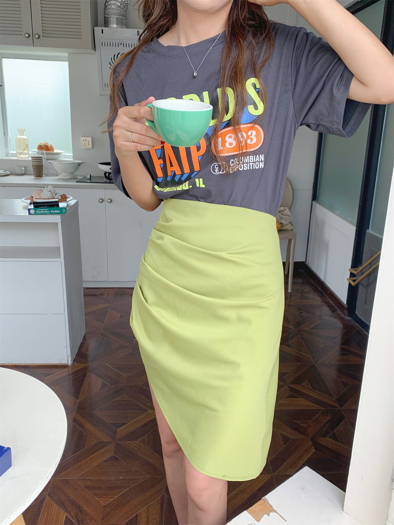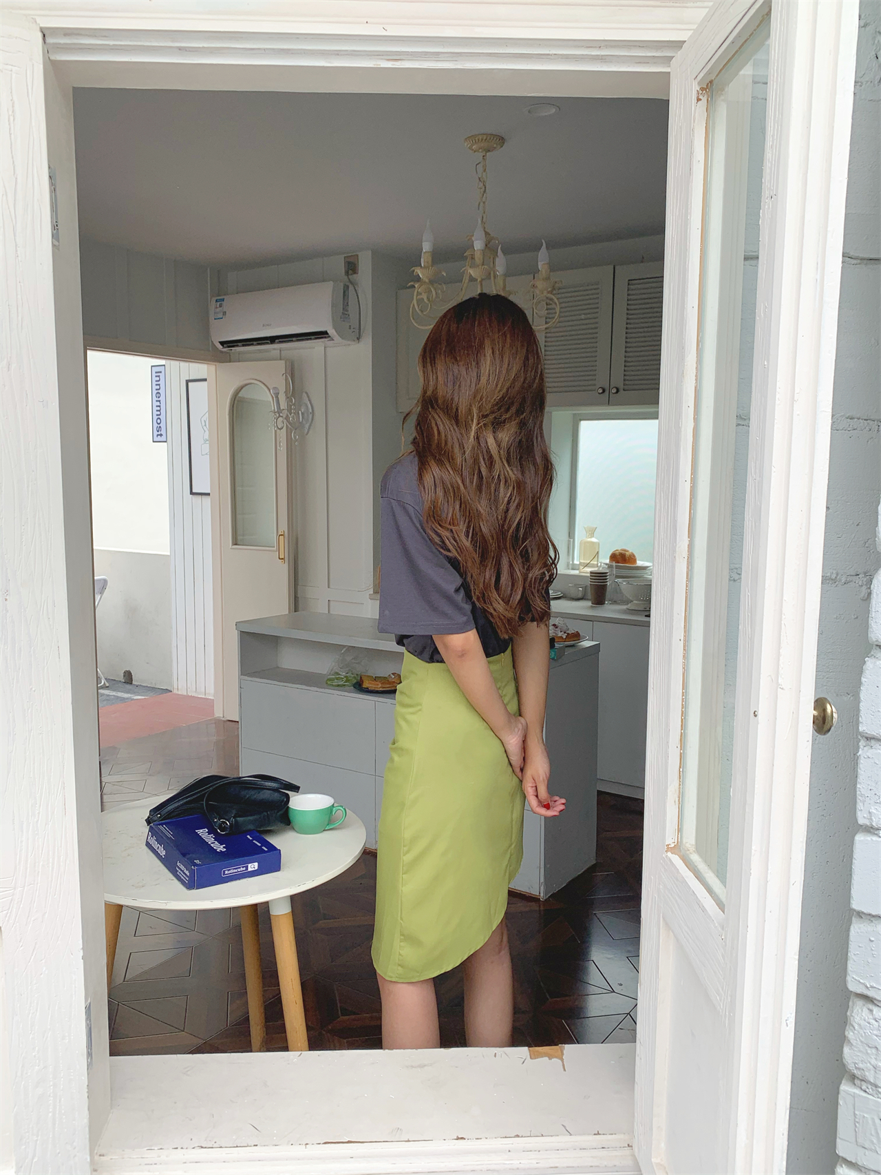 - 颜色:灰色T恤 黄绿色半身裙 灰色T恤半身裙套装 白色T恤 黑色半身裙 黑裙白T恤两件套装