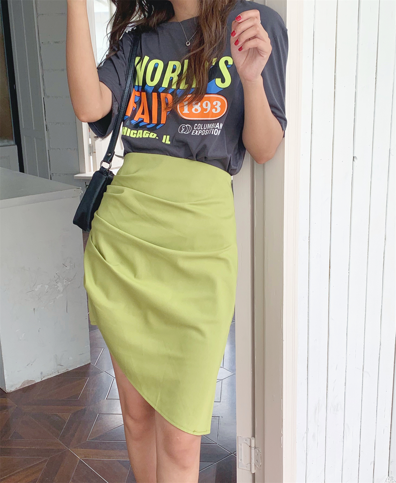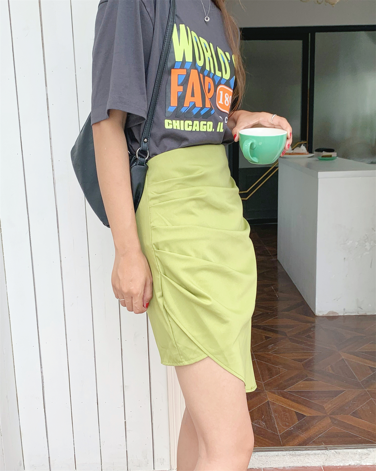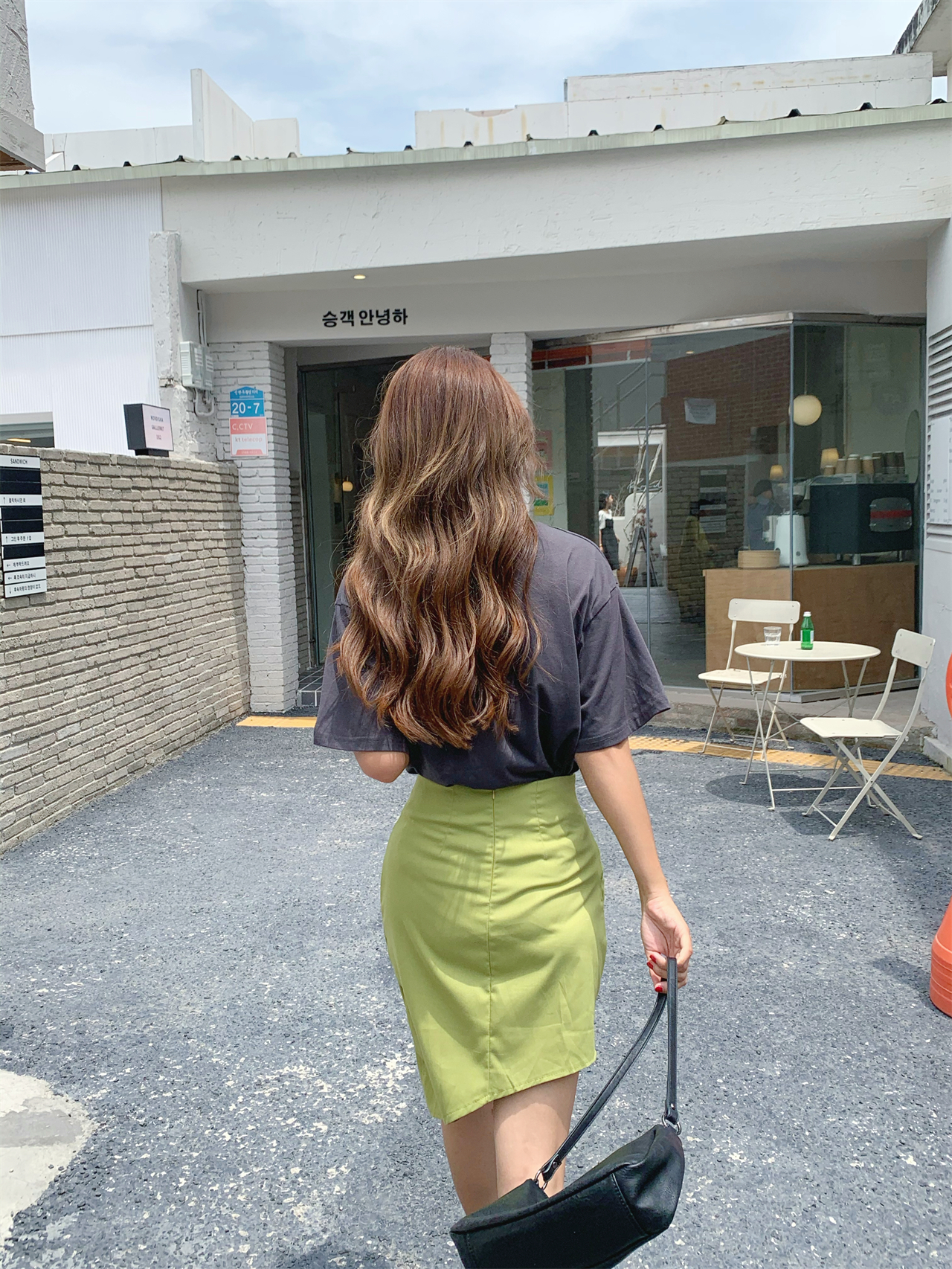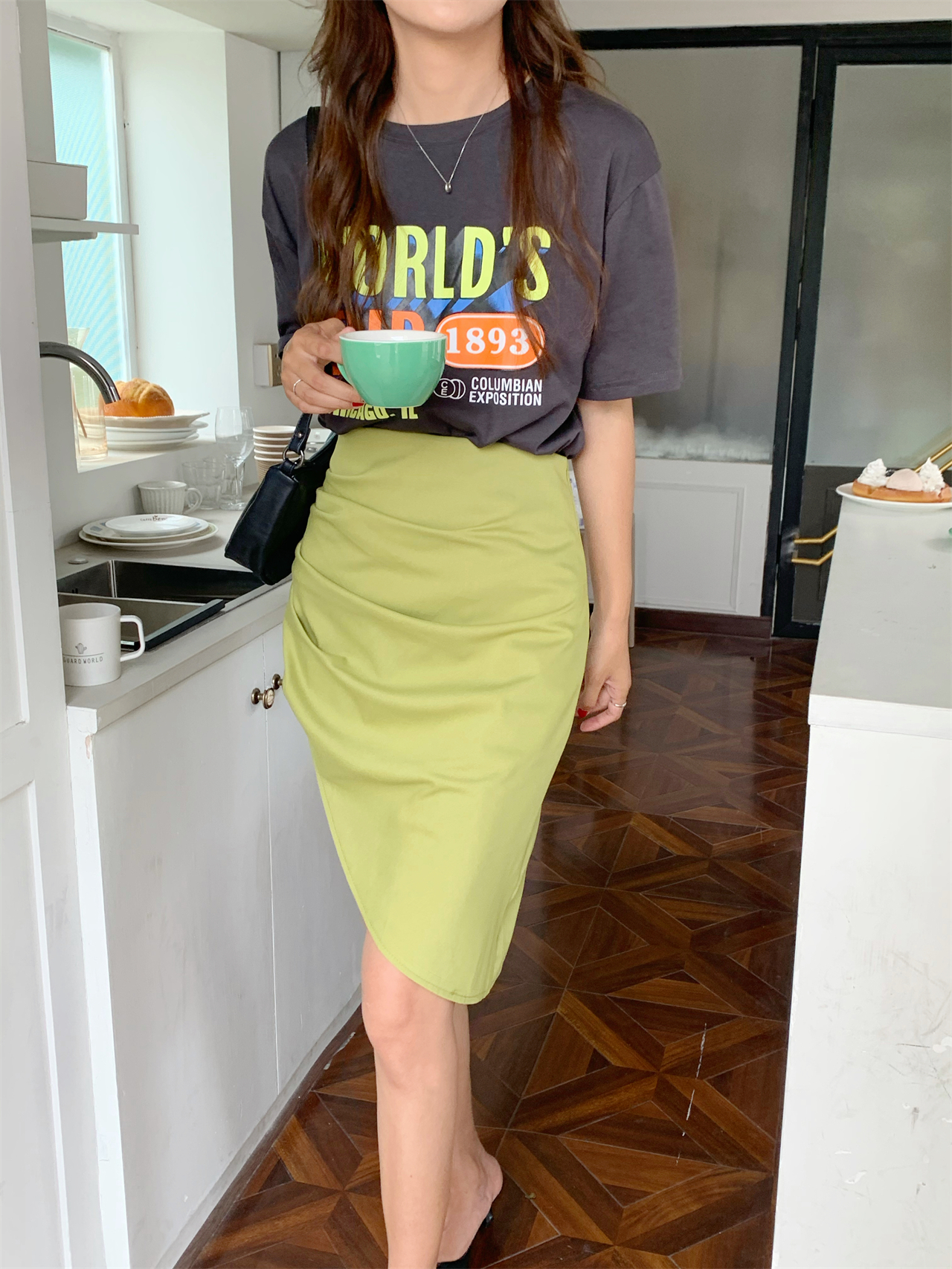 - 颜色:灰色T恤 黄绿色半身裙 灰色T恤半身裙套装 白色T恤 黑色半身裙 黑裙白T恤两件套装