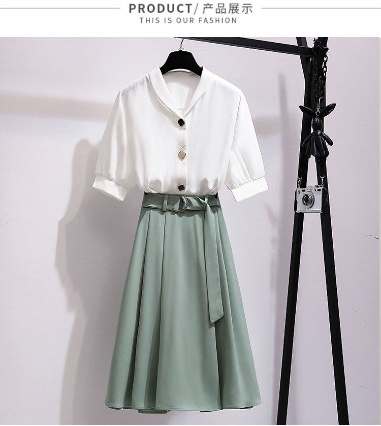 芙娜妮时尚裙子套装春夏短袖雪纺上衣半身裙洋气减龄两件套连衣裙
