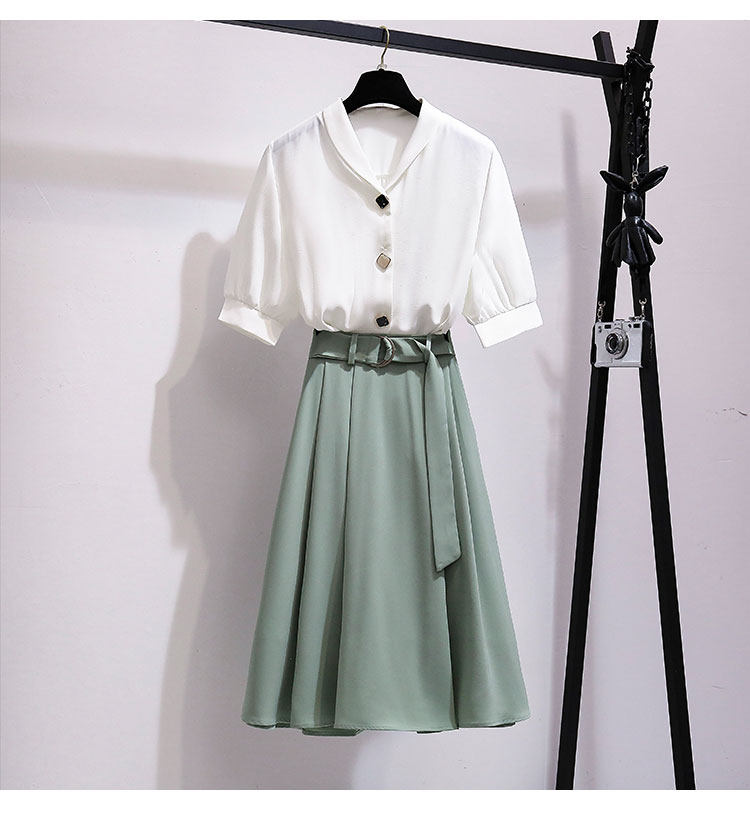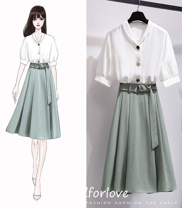 2021职业气质女神范衣服雪纺衬衫两件套装女小个子减龄显瘦套装裙