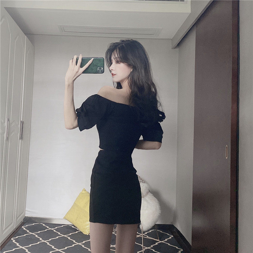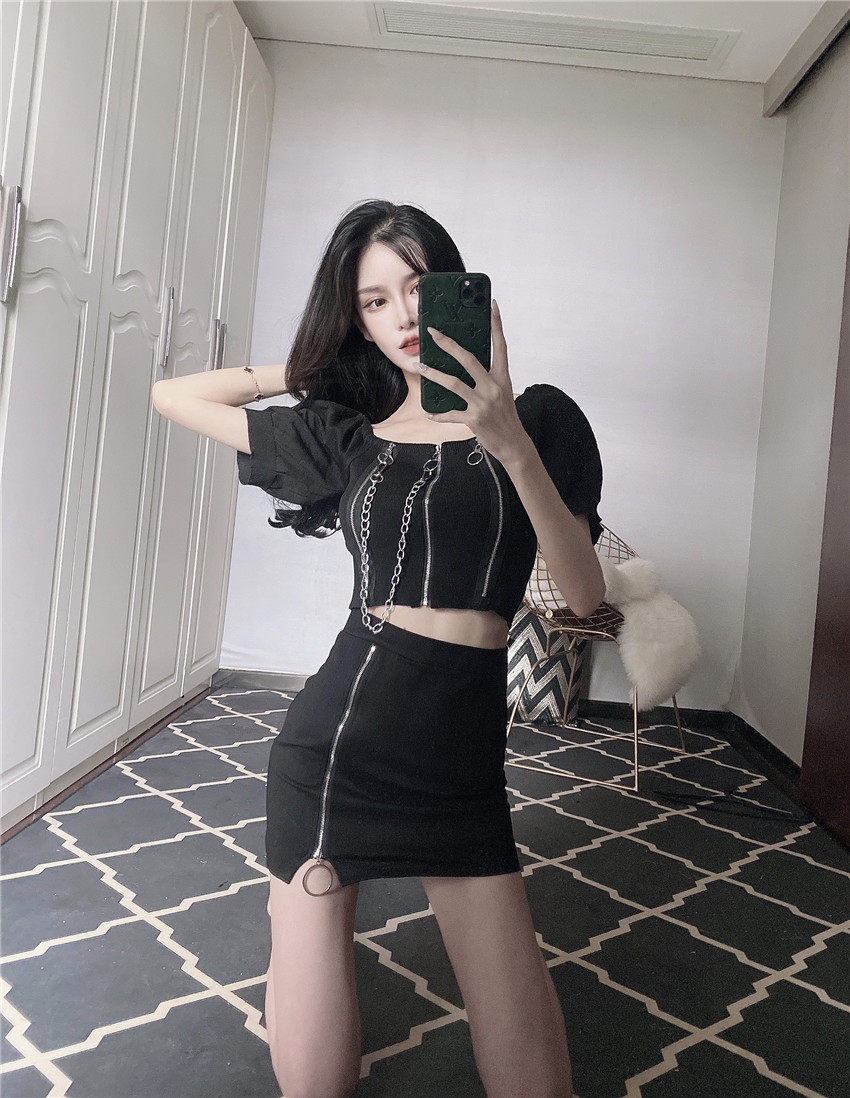 实拍实价新款修身短款针织露脐上衣+包臀裙性感两件套