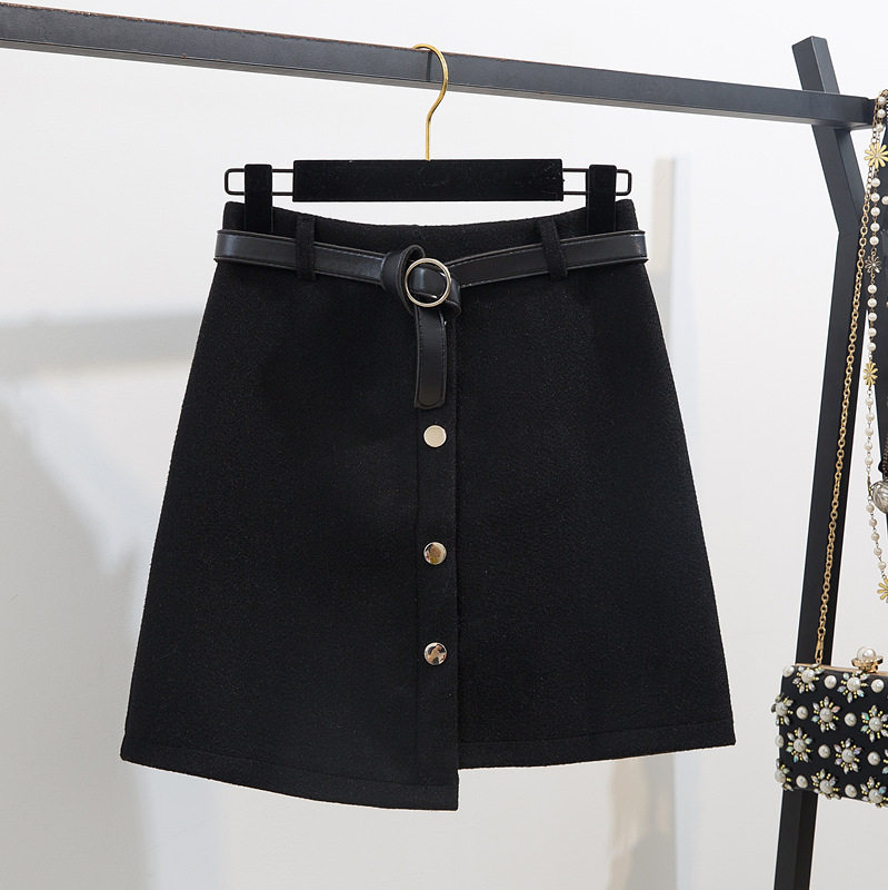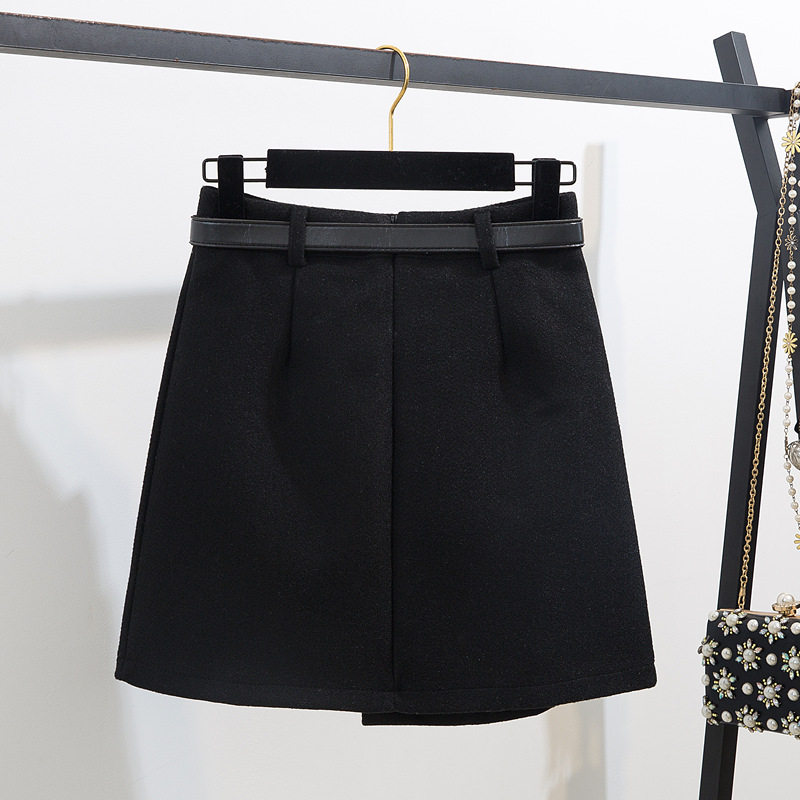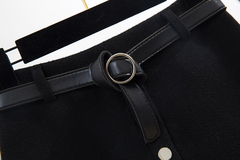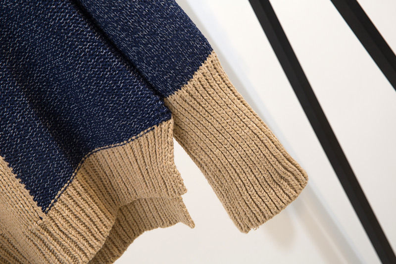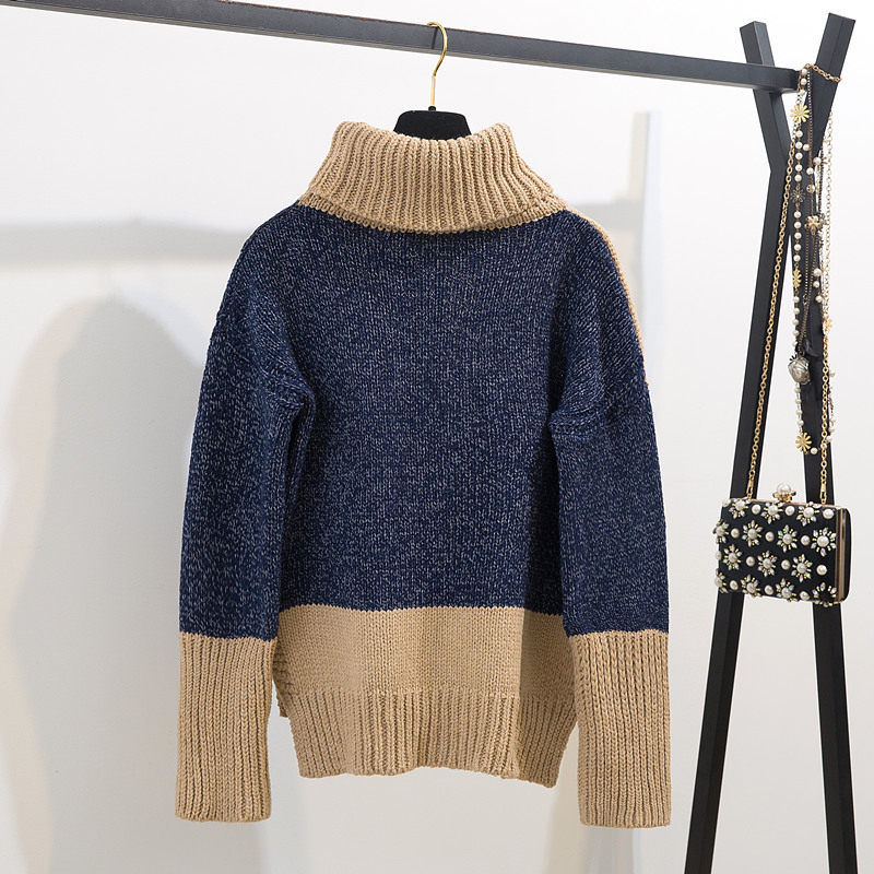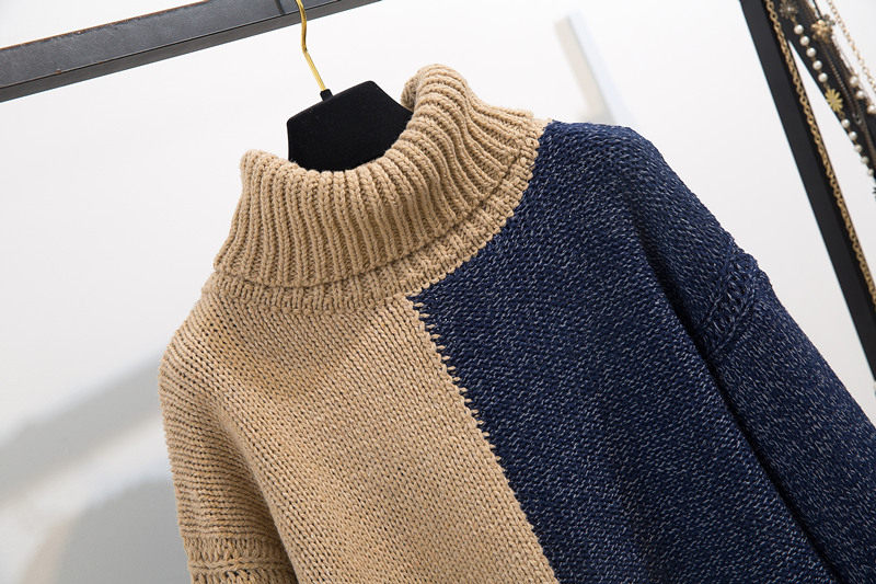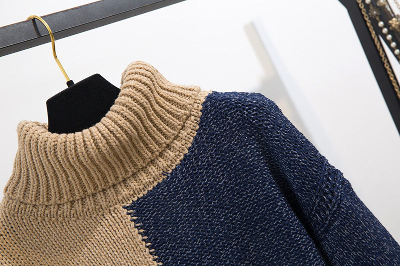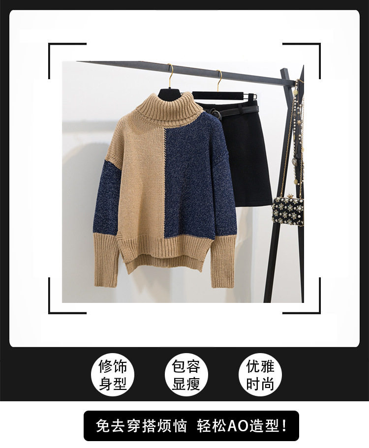 实拍2018冬季新款两件套时尚慵懒风高领拼色毛衣毛呢不规则半身裙