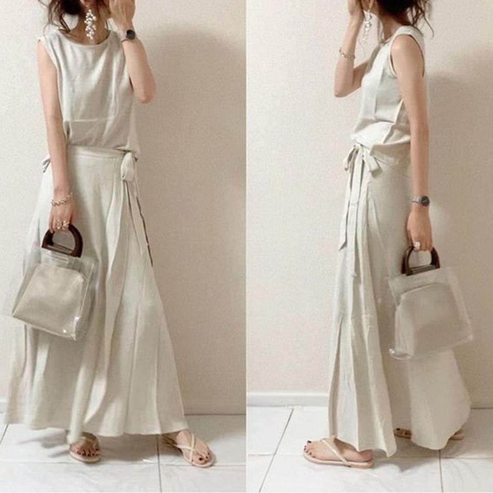现货时尚套装女2021夏季新款日系气质通勤无袖上衣半身裙套装