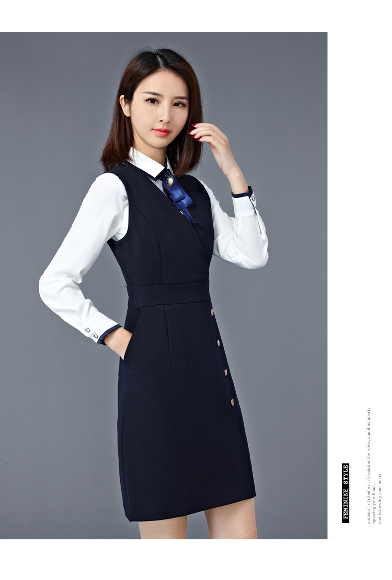 两件套 气质OL修身衬衫马甲裙两件套工作服女装套装