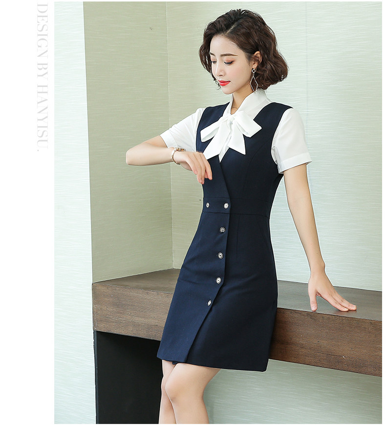 职业装女神范夏季前台接待客服珠宝店美容院工作服连衣裙