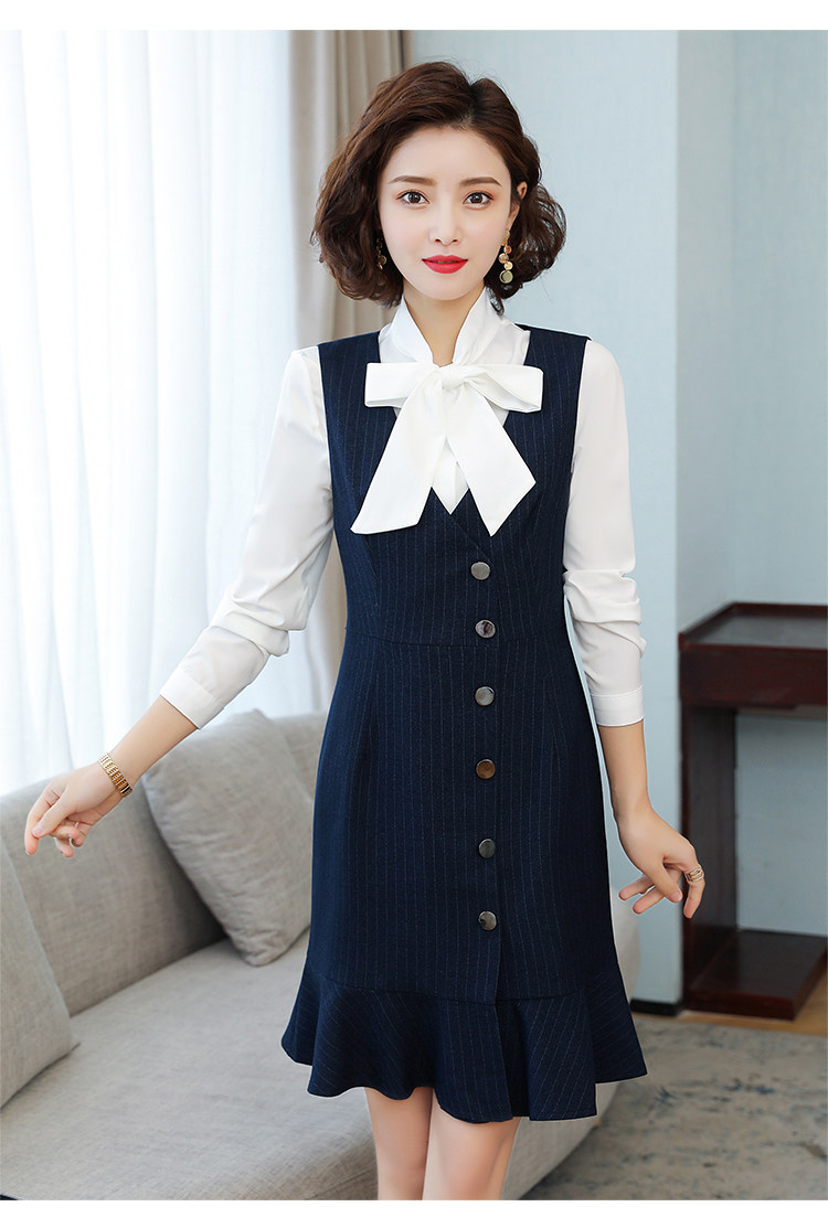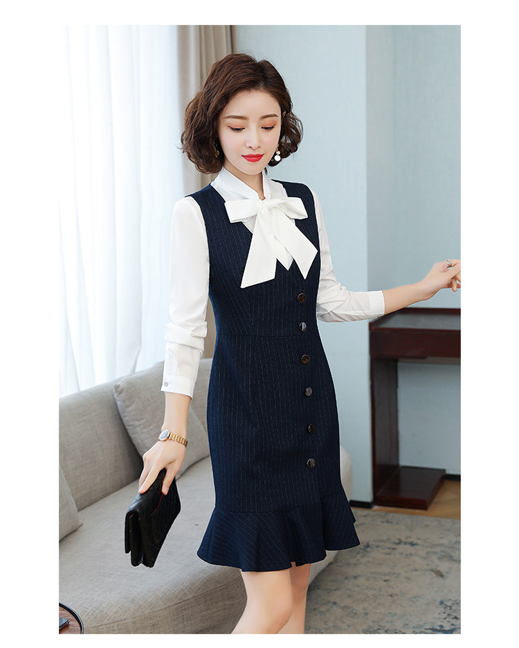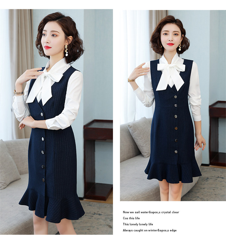 大量现货 新款职业装女装毛呢背心裙加衬衣女裙套装