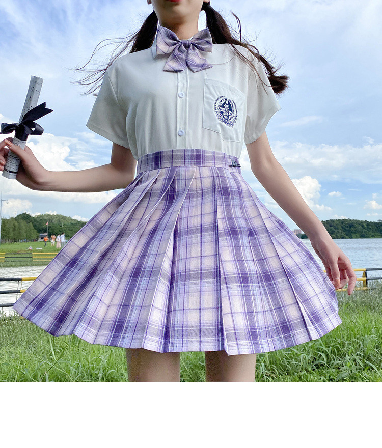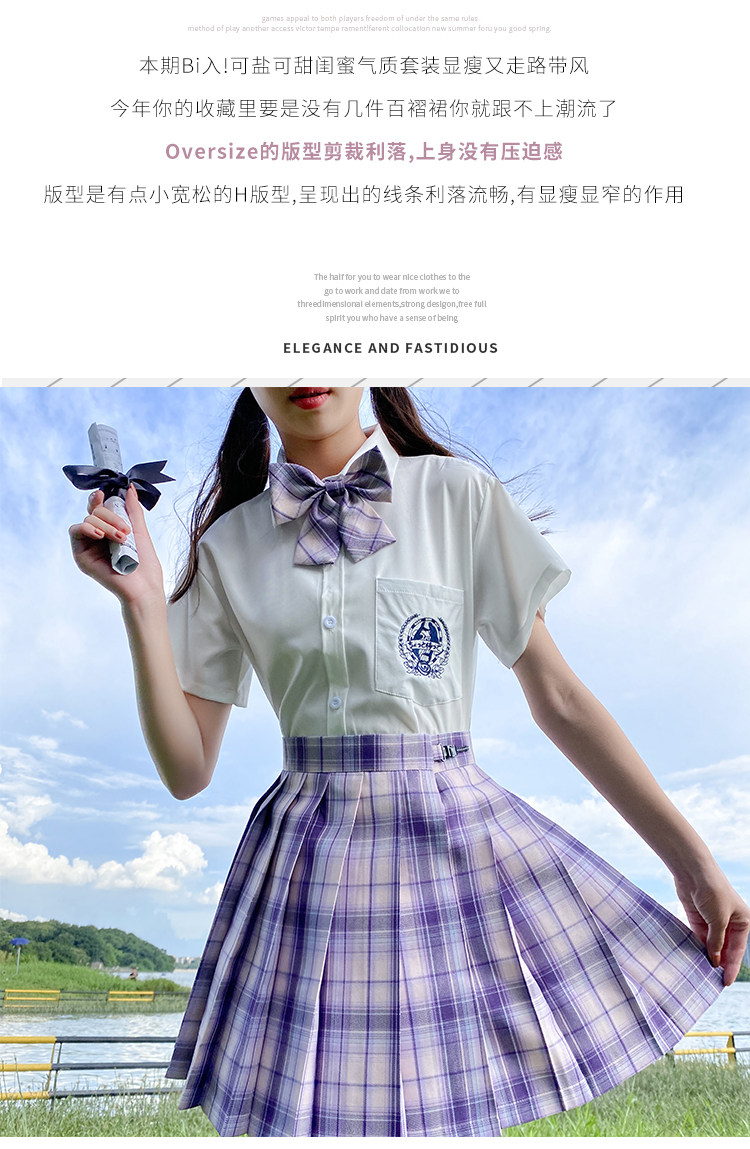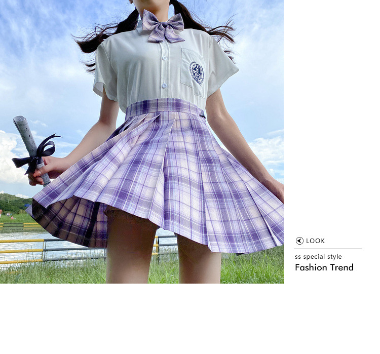 - 颜色分类:幽雾格裙+短袖刺绣款+领带