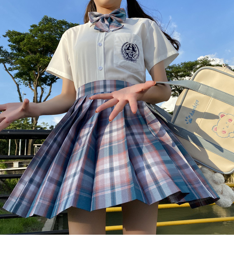 - 颜色分类:春告草格裙+短袖刺绣款+领带