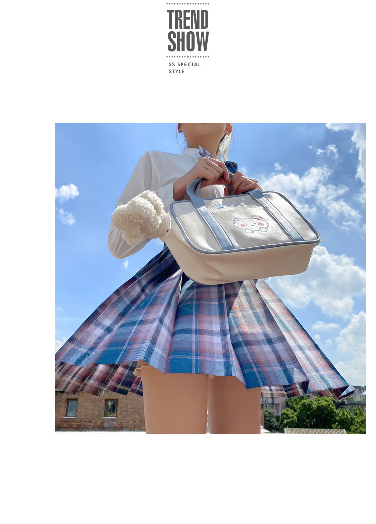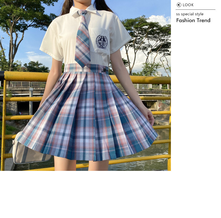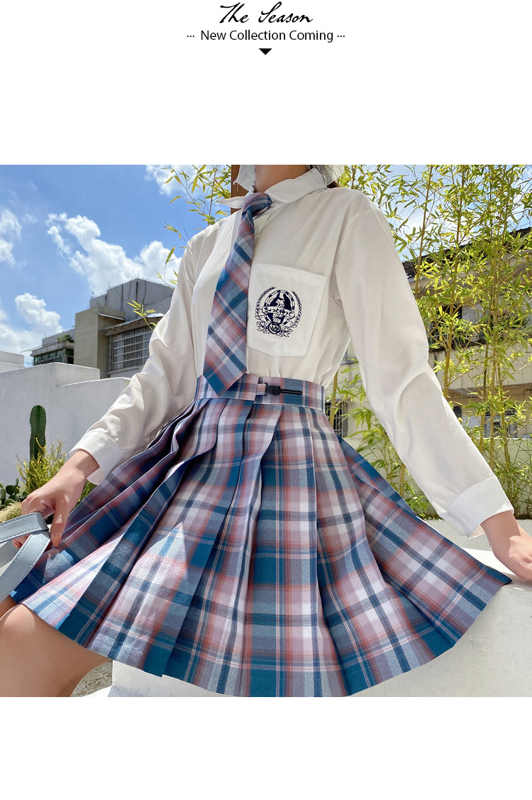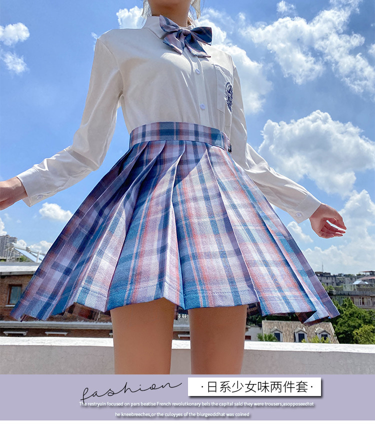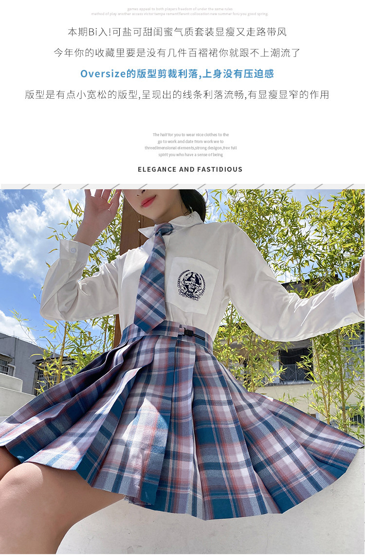 - 颜色分类:春告草格裙+长袖刺绣款+领带