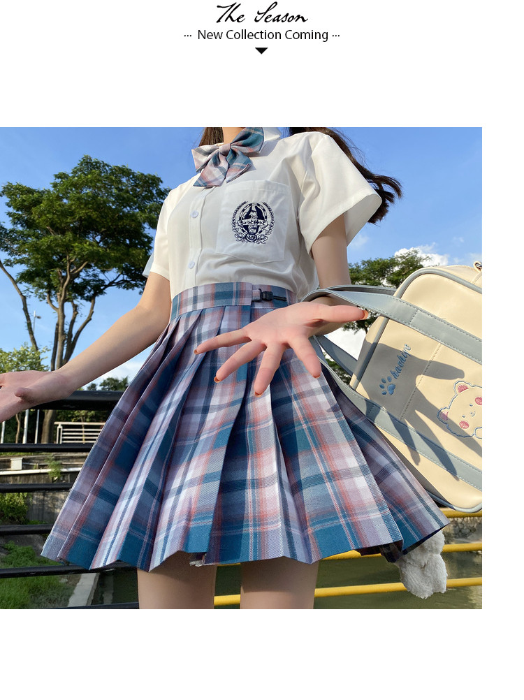- 颜色分类:春告草格裙+短袖基础款+领带