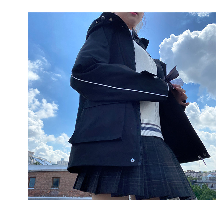 实拍新款工装夹克秋季外套女宽松学院百搭上衣JK流行外套韩版