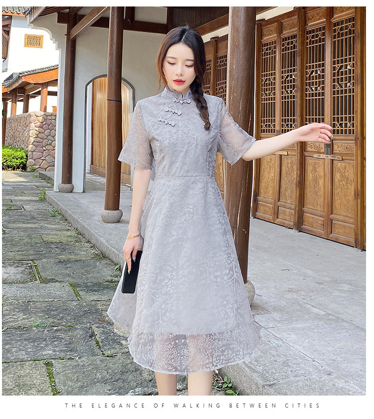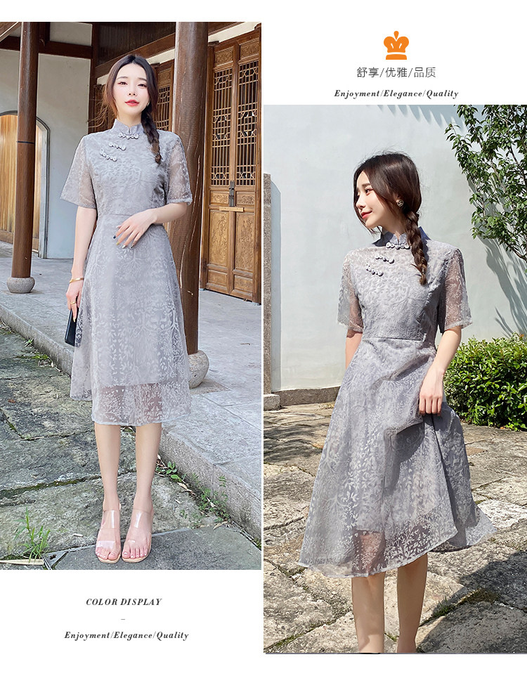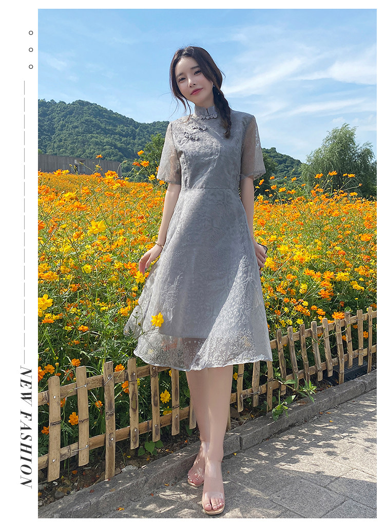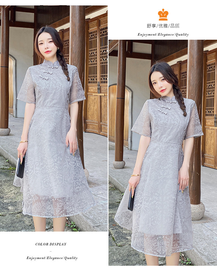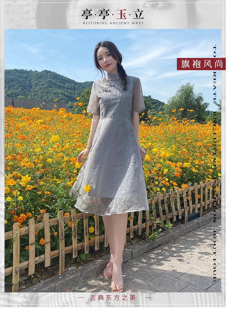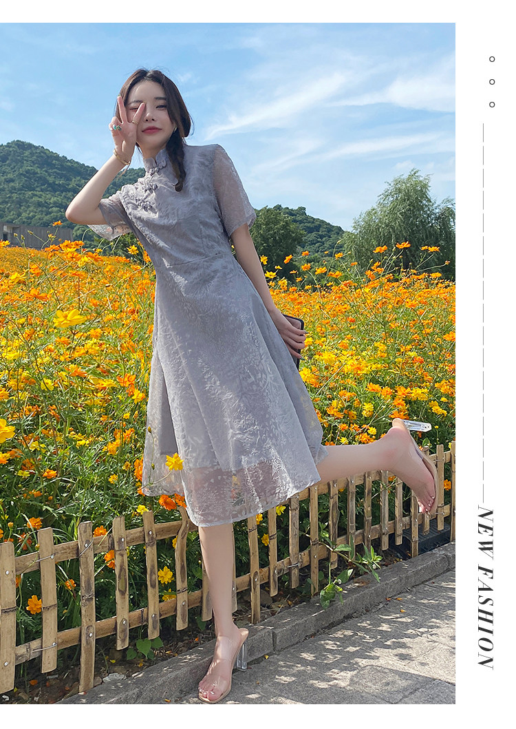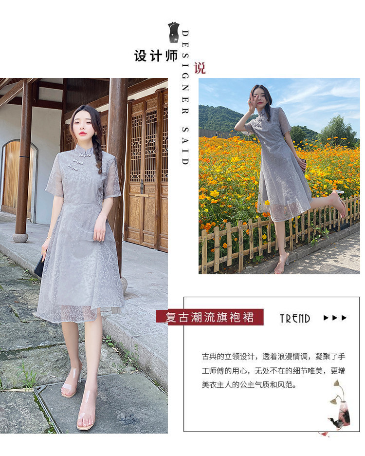 实拍 现货 大码女装2021夏季新款胖mm改良国风时尚显瘦旗袍连衣裙
