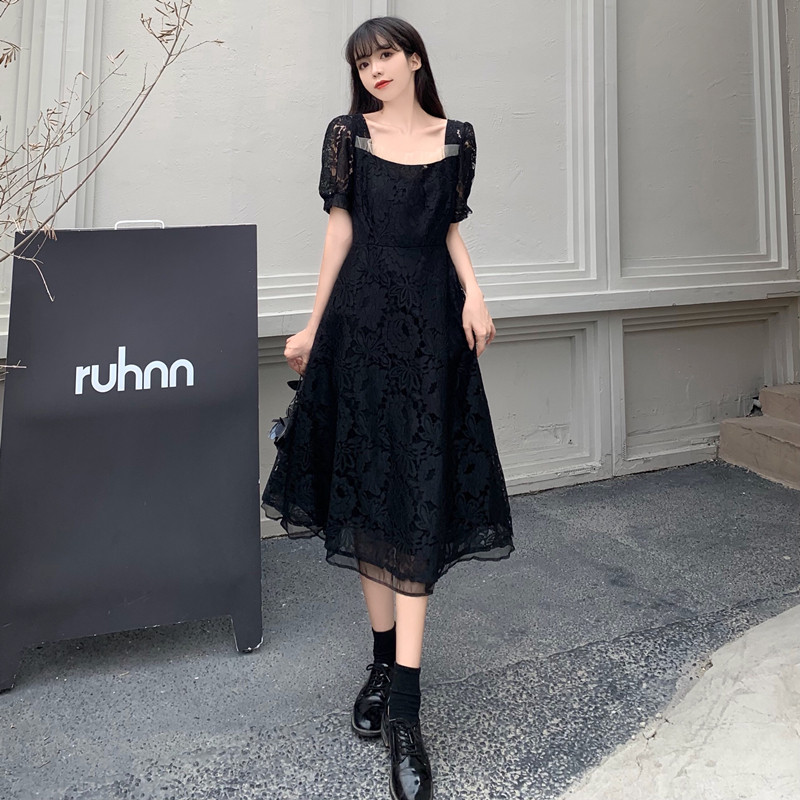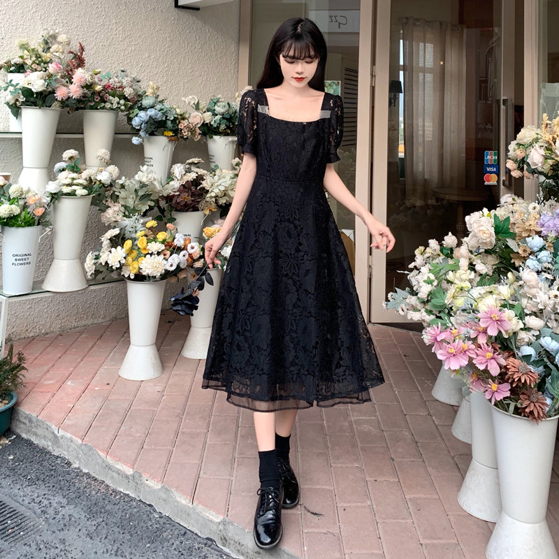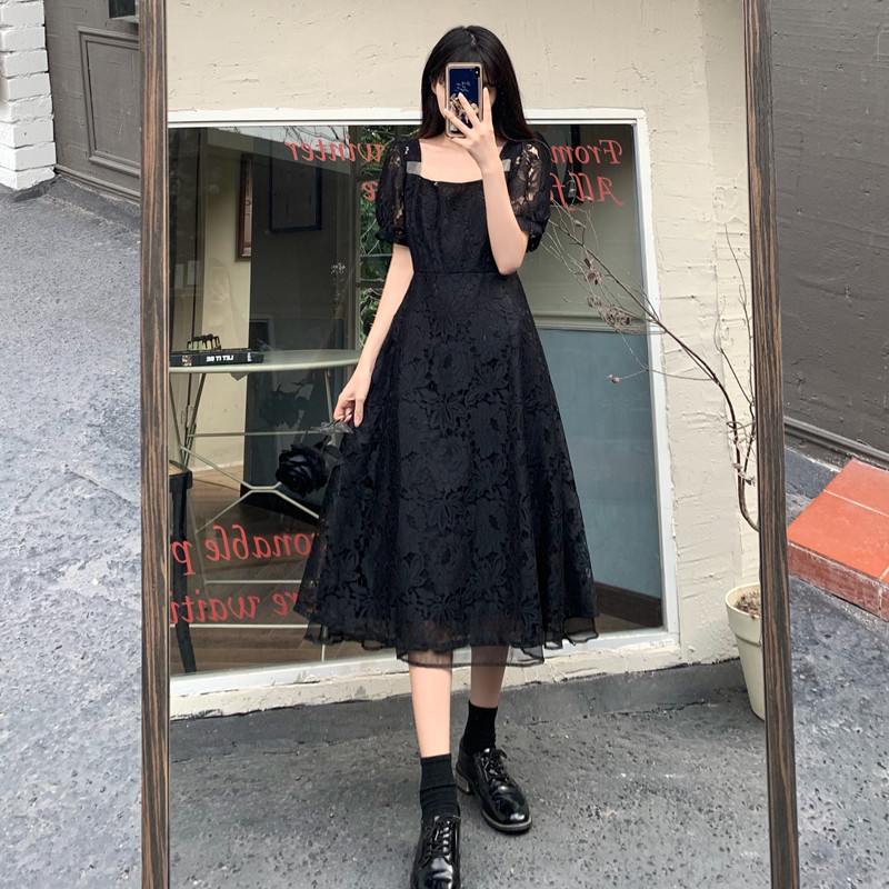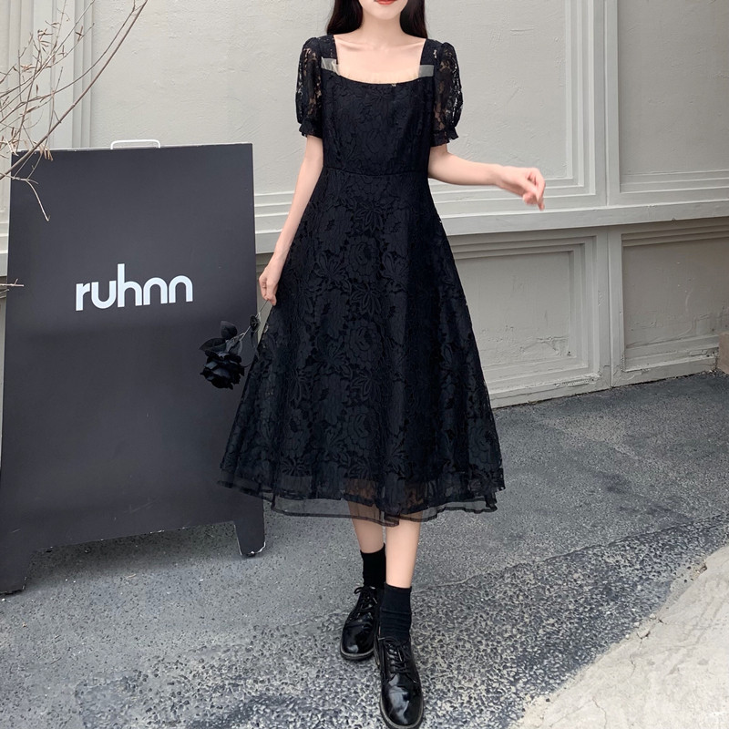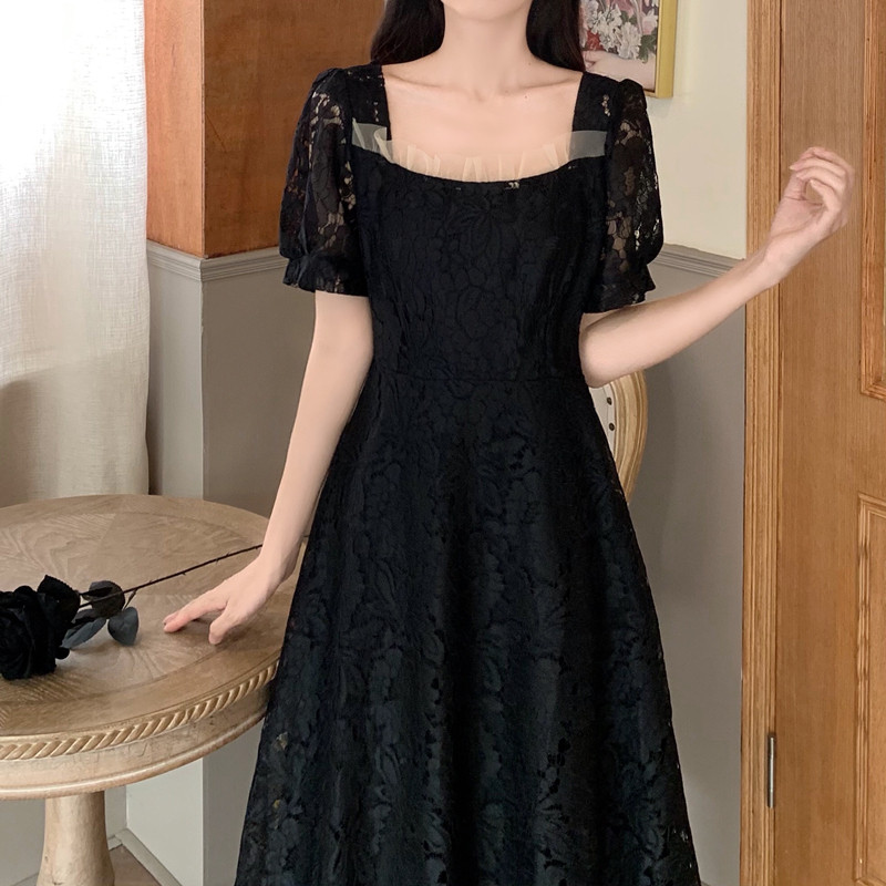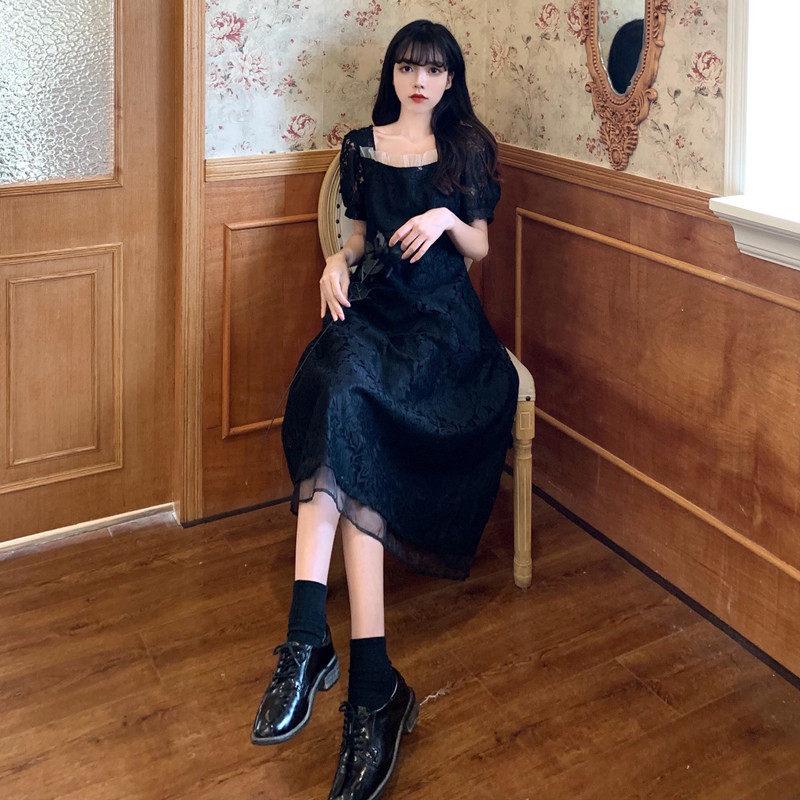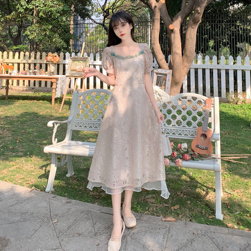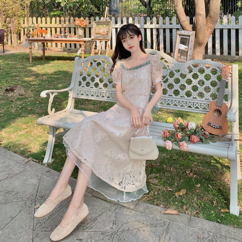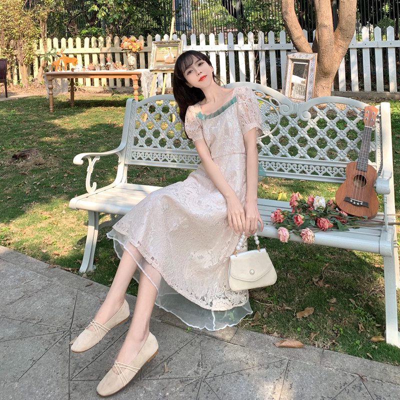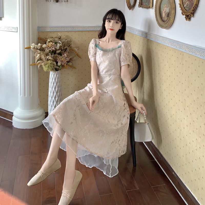 国大B区314~法式复古蕾丝蝴蝶结绑带连衣裙