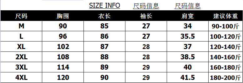尺码:大码M 大码L 大码XL 大码2XL 大码3XL 大码4XL