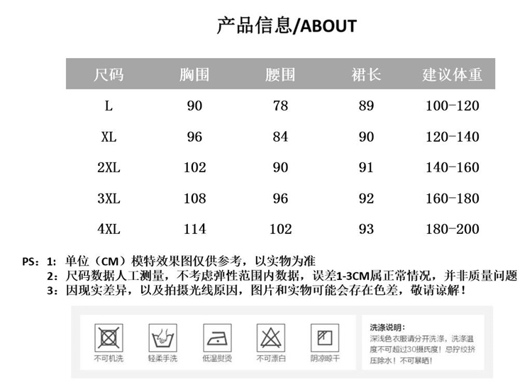 尺码:大码L 大码XL 大码2XL 大码3XL 大码4XL
