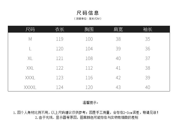 尺码:M 大码L 大码XL 大码2XL 大码3XL 大码4XL