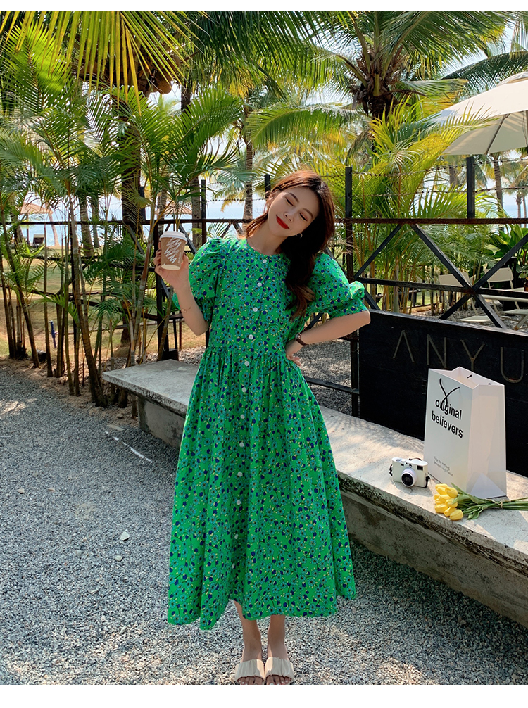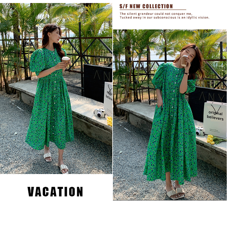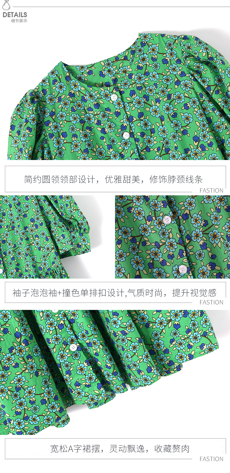 实拍~大码女装夏季碎花宽松连衣裙夏天胖mm中长款显瘦短袖裙子