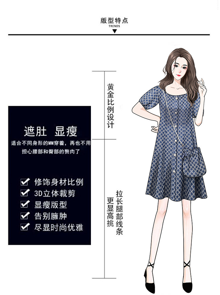 实拍现货 大码女装2021夏季新款连衣裙胖妹妹减龄显瘦中长款裙子