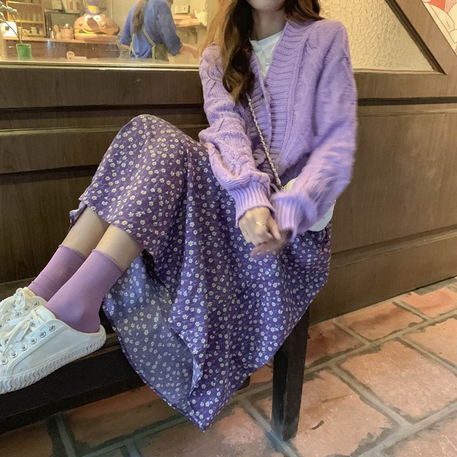 Size/尺码 针织开衫/ 衣长:58 胸围:108 袖长:50 肩宽:48 半身裙/ 裙长:78 腰围:58-88(松紧腰)