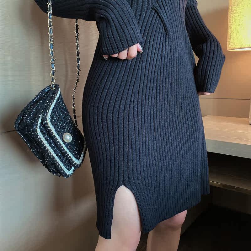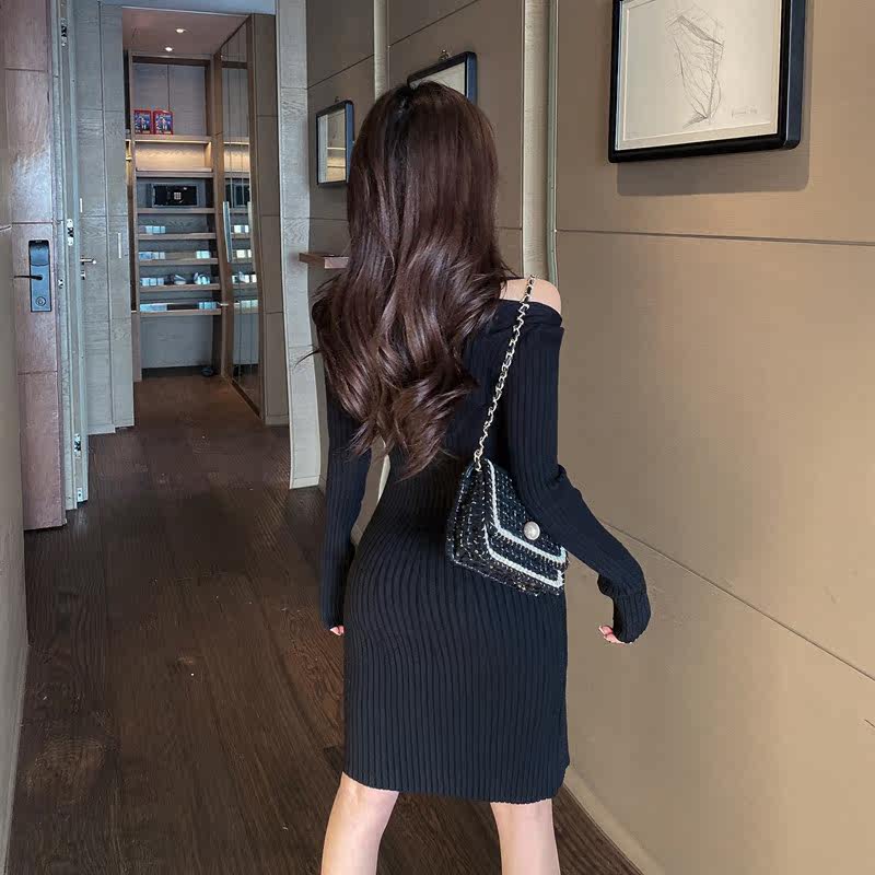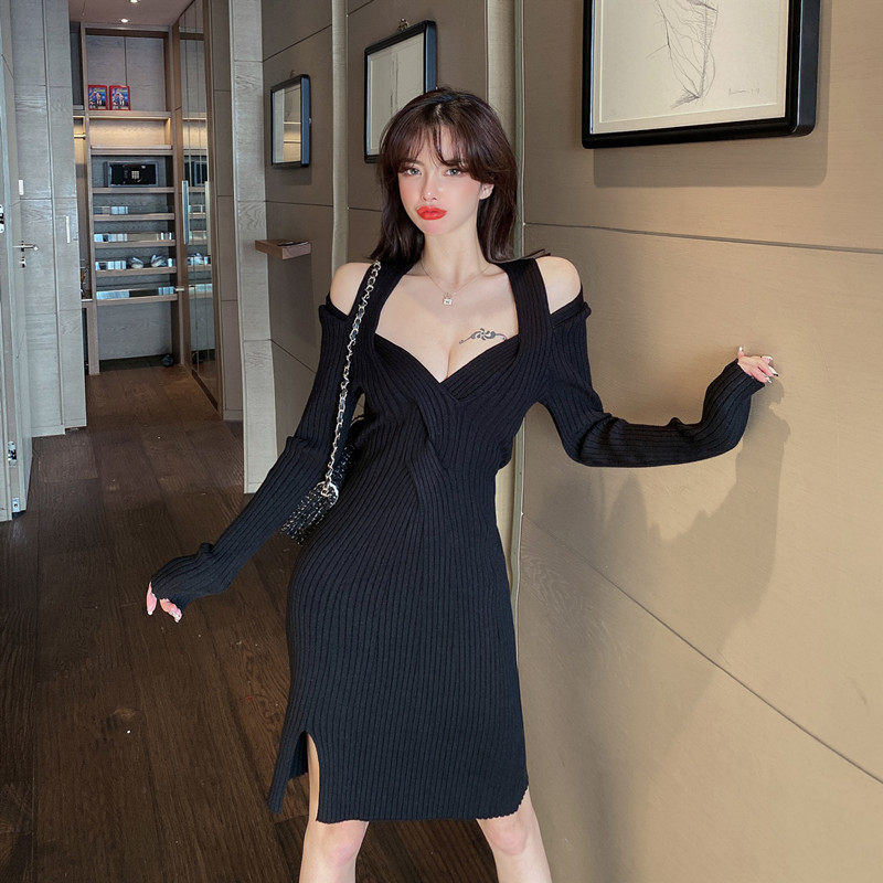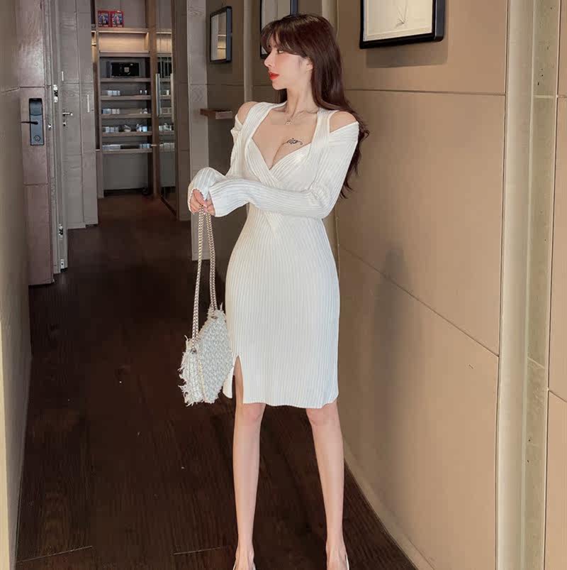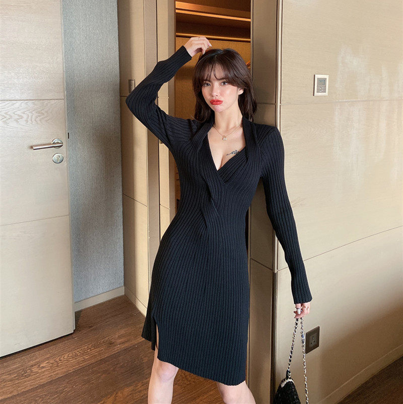 新款修身扭结设计感小心机洋气百搭港风针织连衣裙