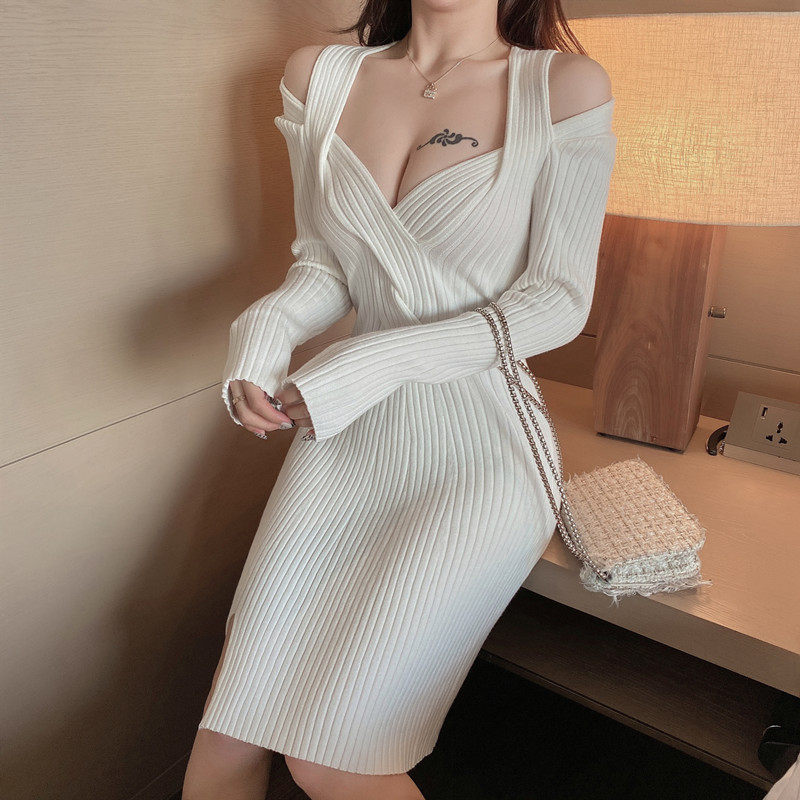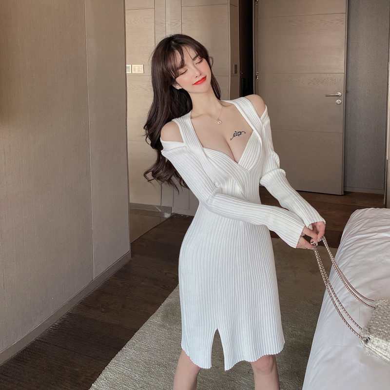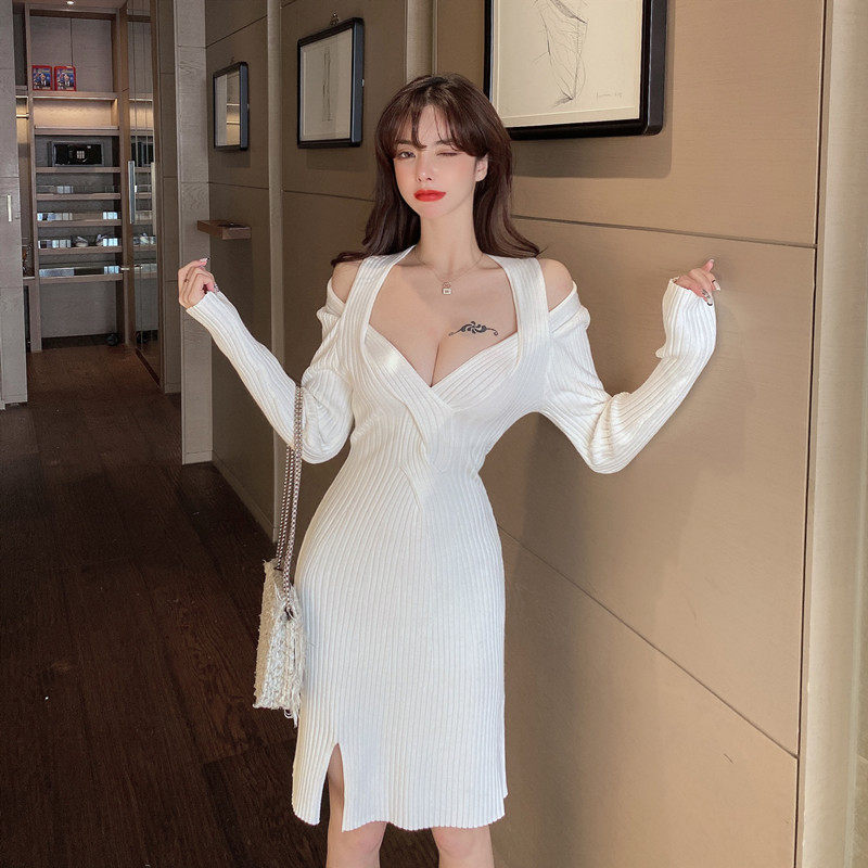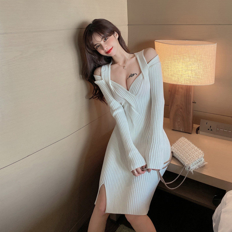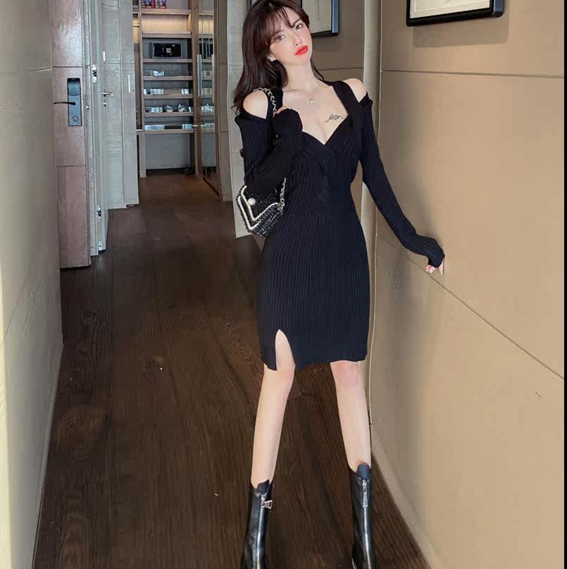 新款修身扭结设计感小心机洋气百搭港风针织连衣裙