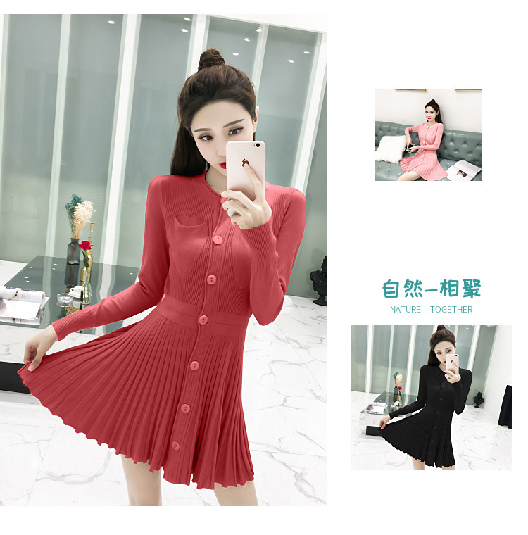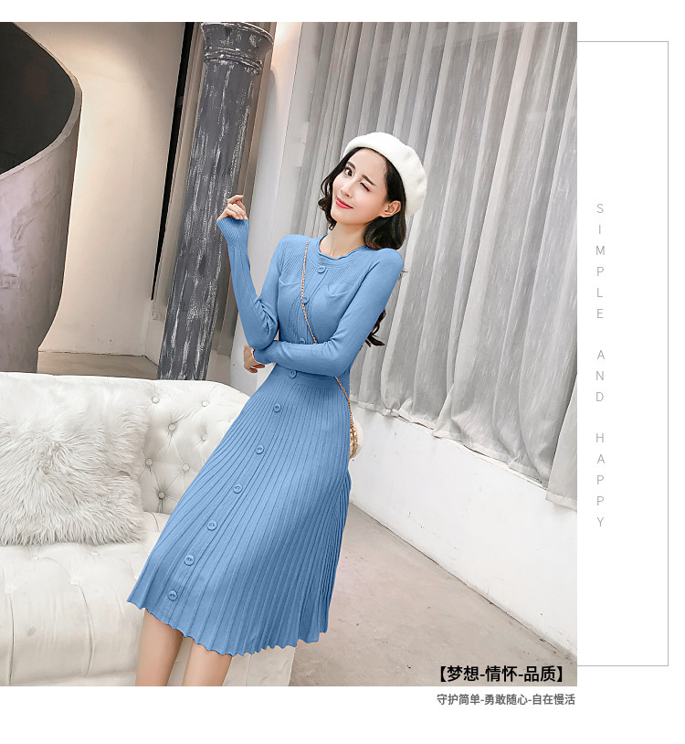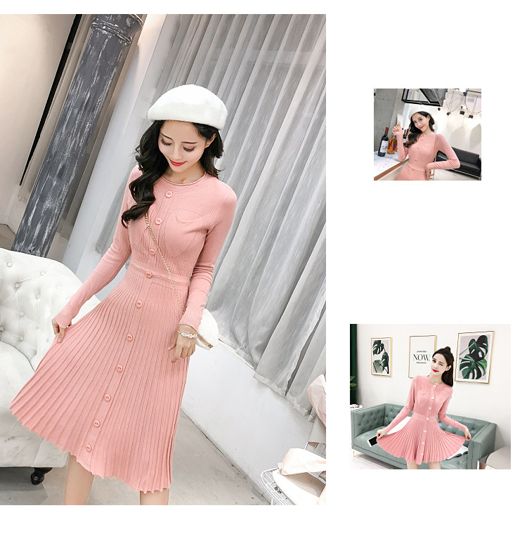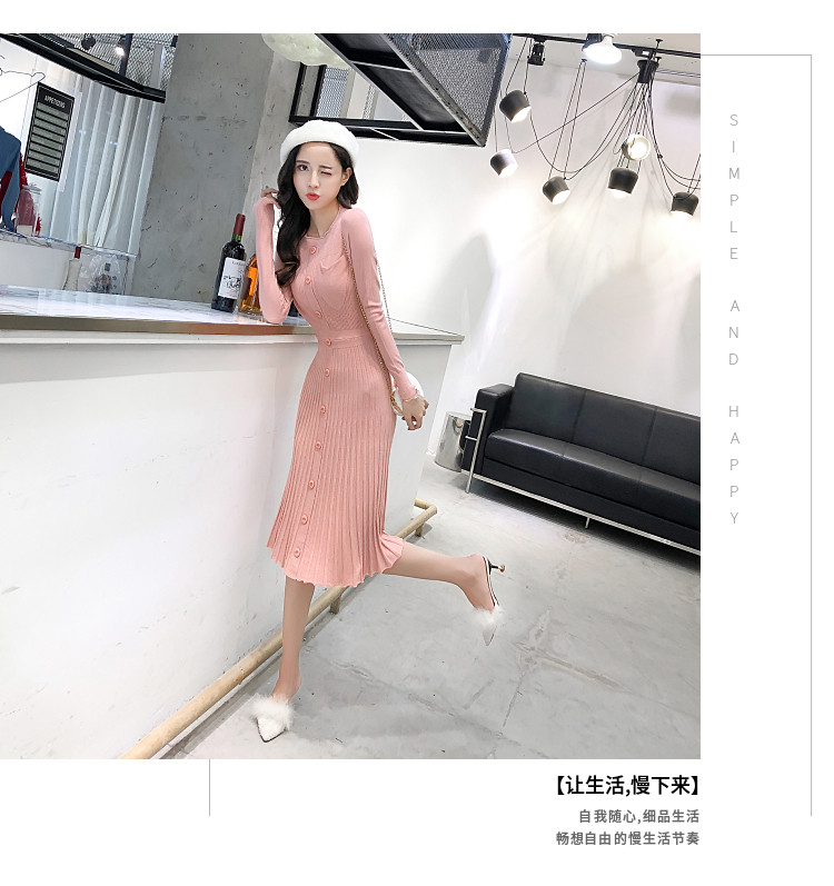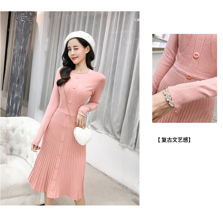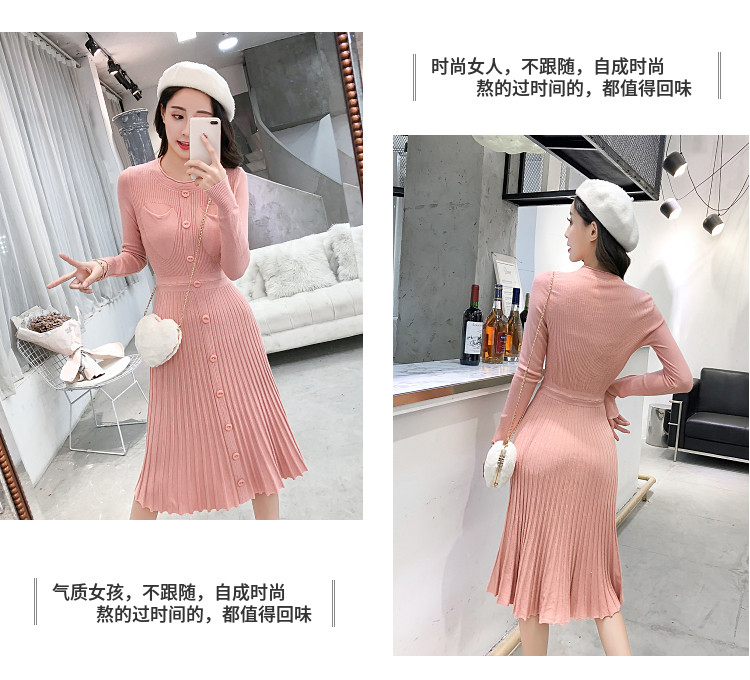 实拍2019秋冬新款名媛小香风气质针织长袖连衣裙打底裙