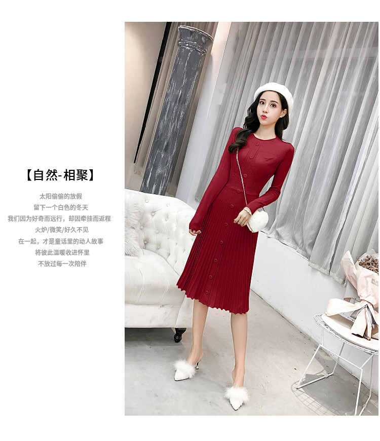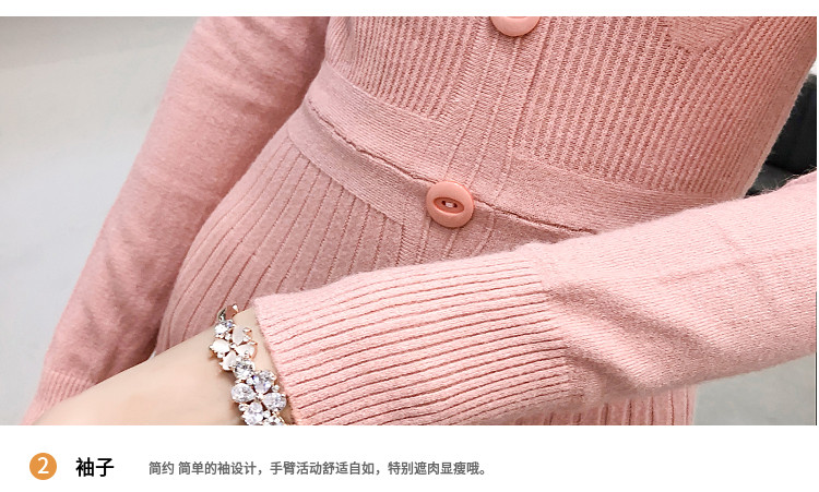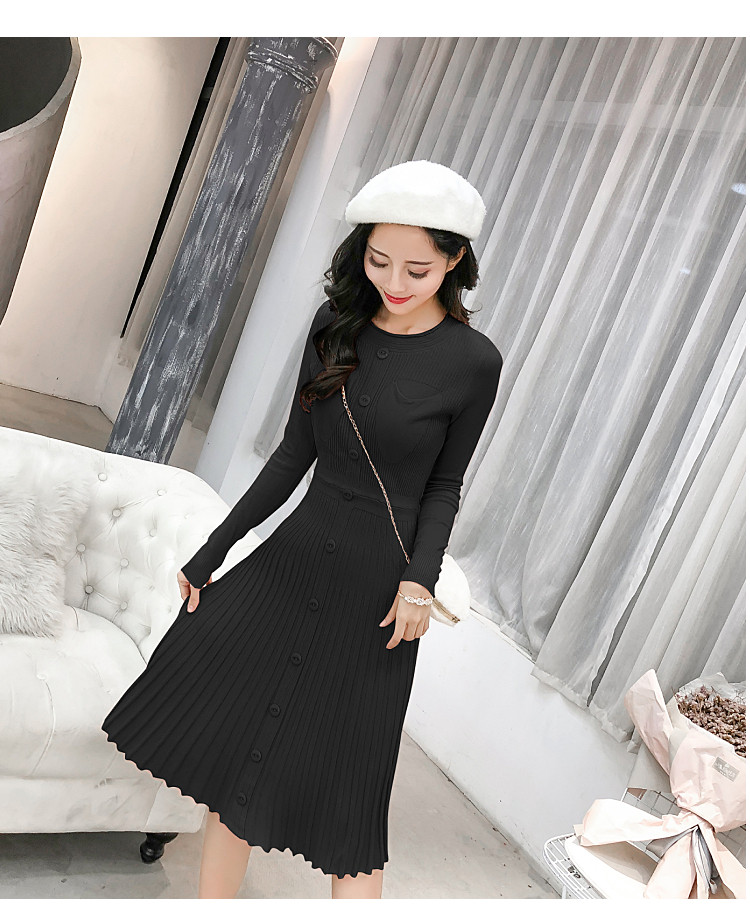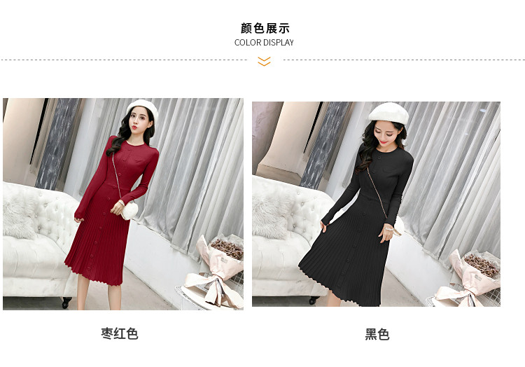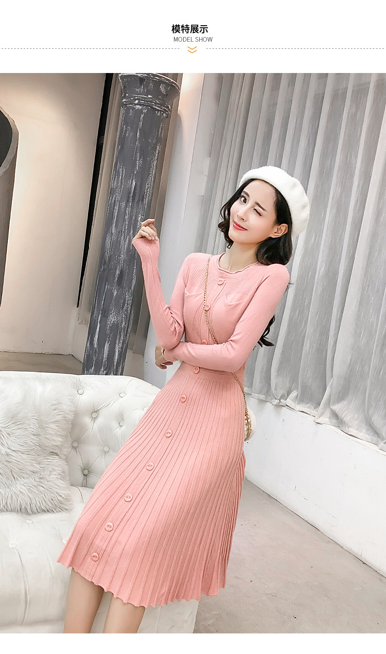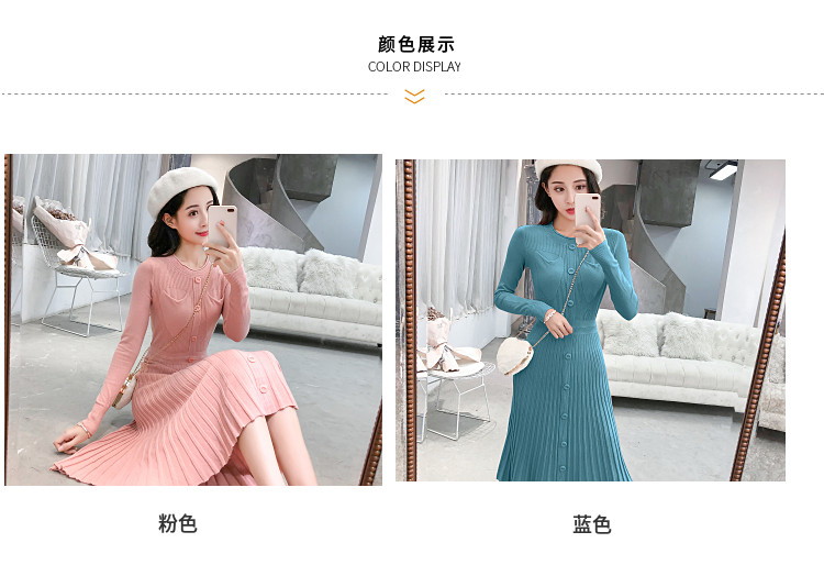实拍2019秋冬新款名媛小香风气质针织长袖连衣裙打底裙