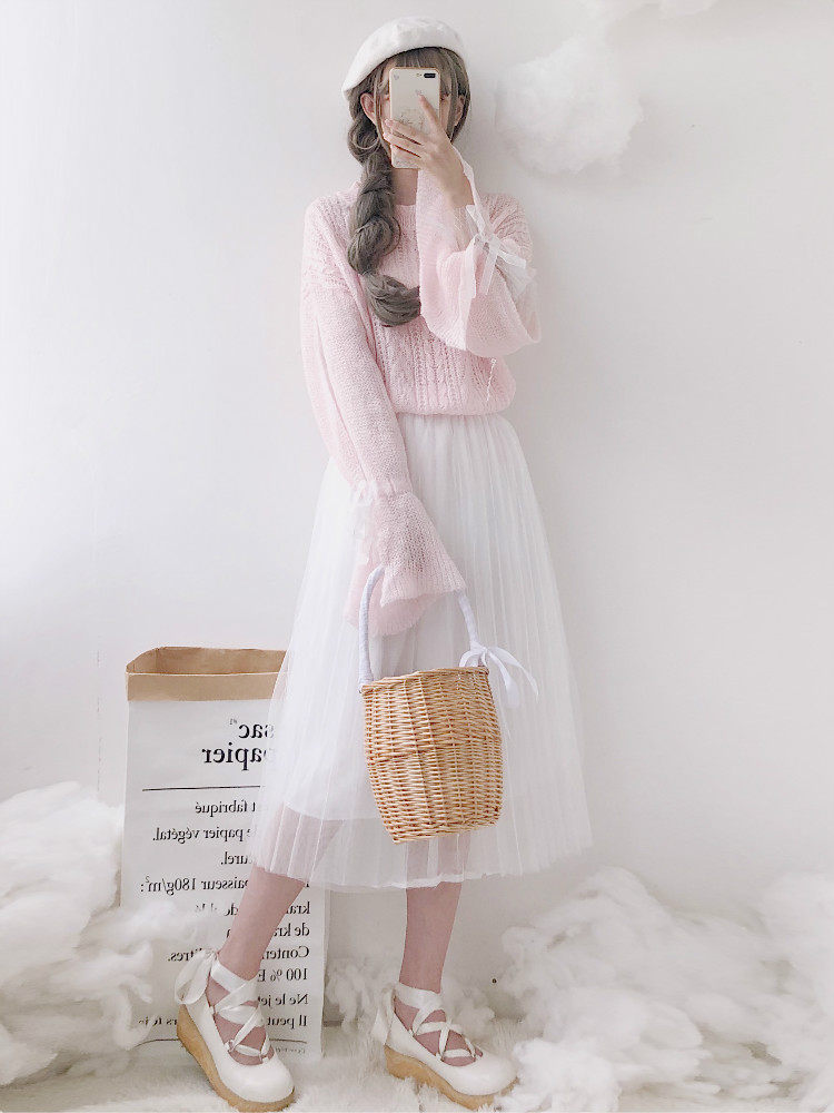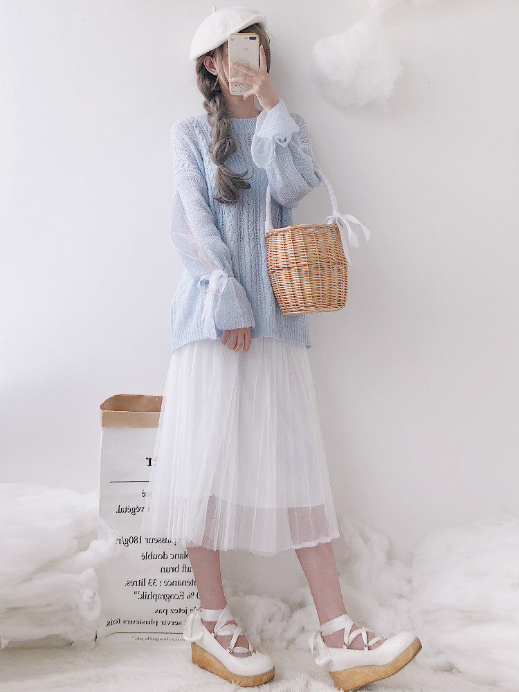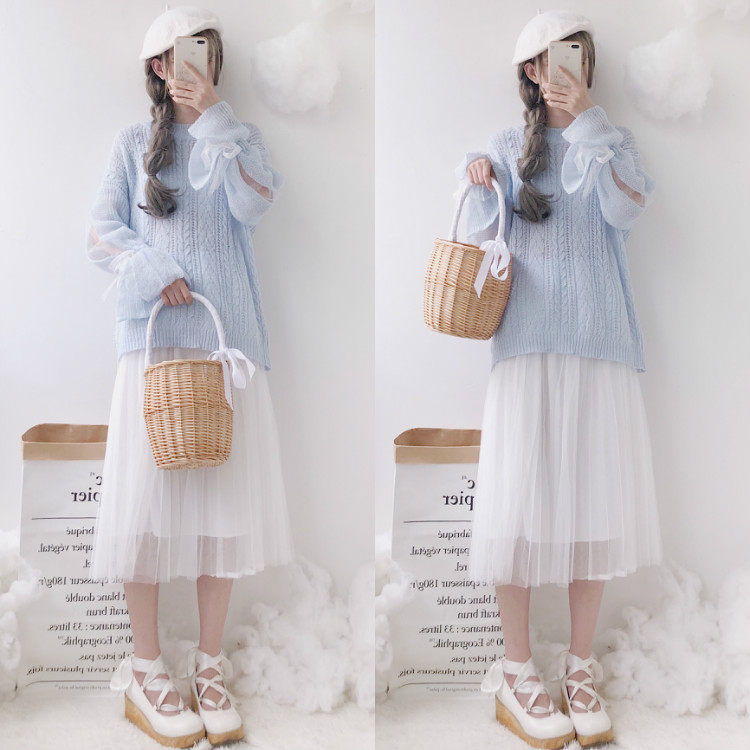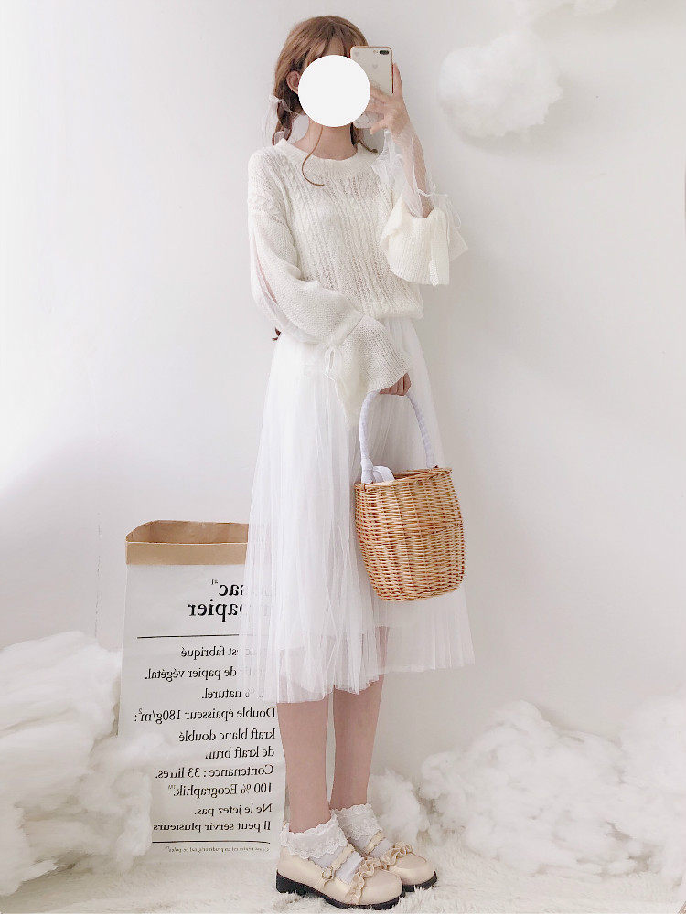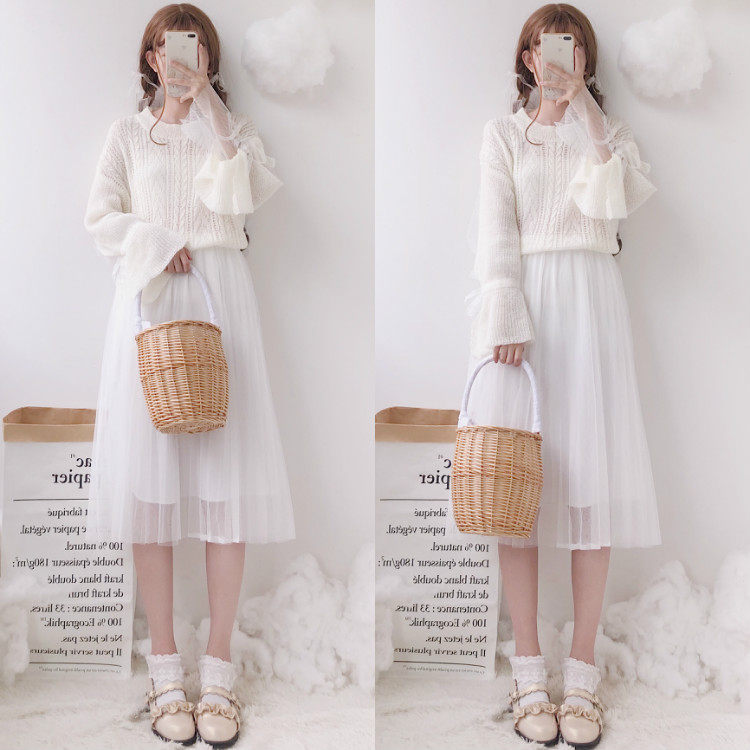 SIZE INFO 上衣均码:衣长66CM 肩宽59CM 胸围126CM 袖长49CM 半身裙均码:裙长82CM 腰围60-84CM (手工量尺,允许误差2-4cm)