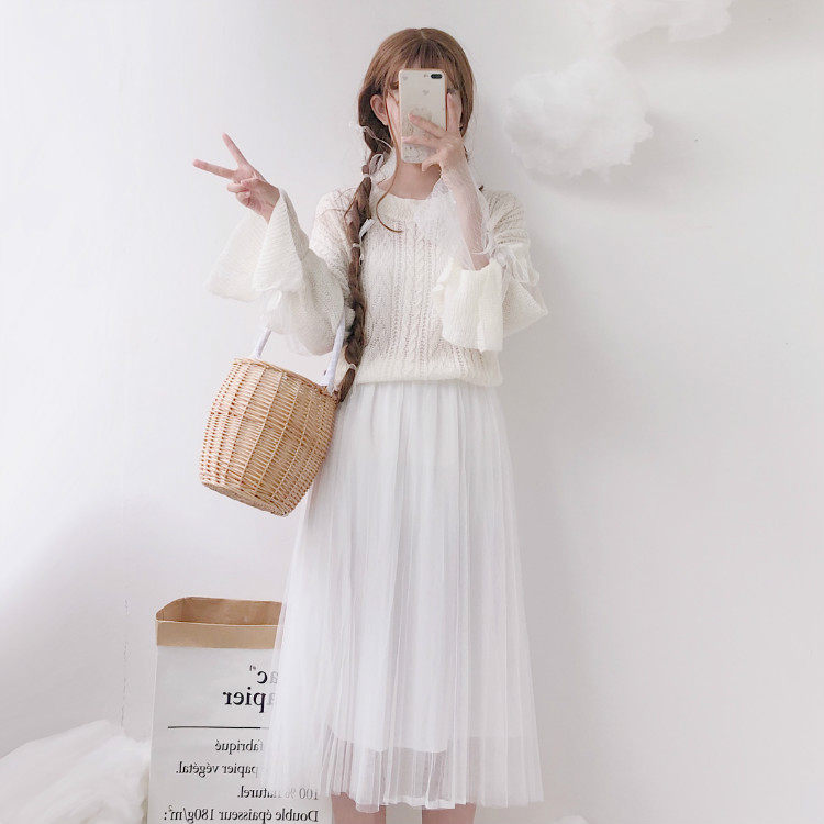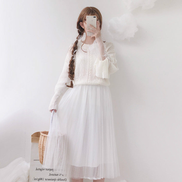 毛衣面料成分:腈纶100% 半身裙面料成分:聚酯纤维100%