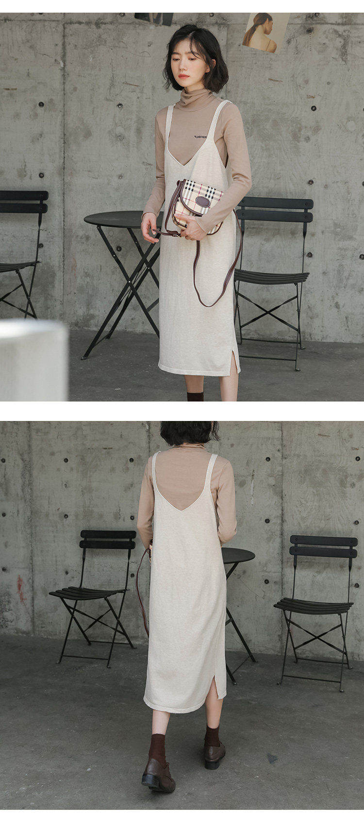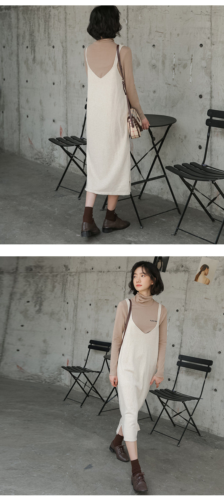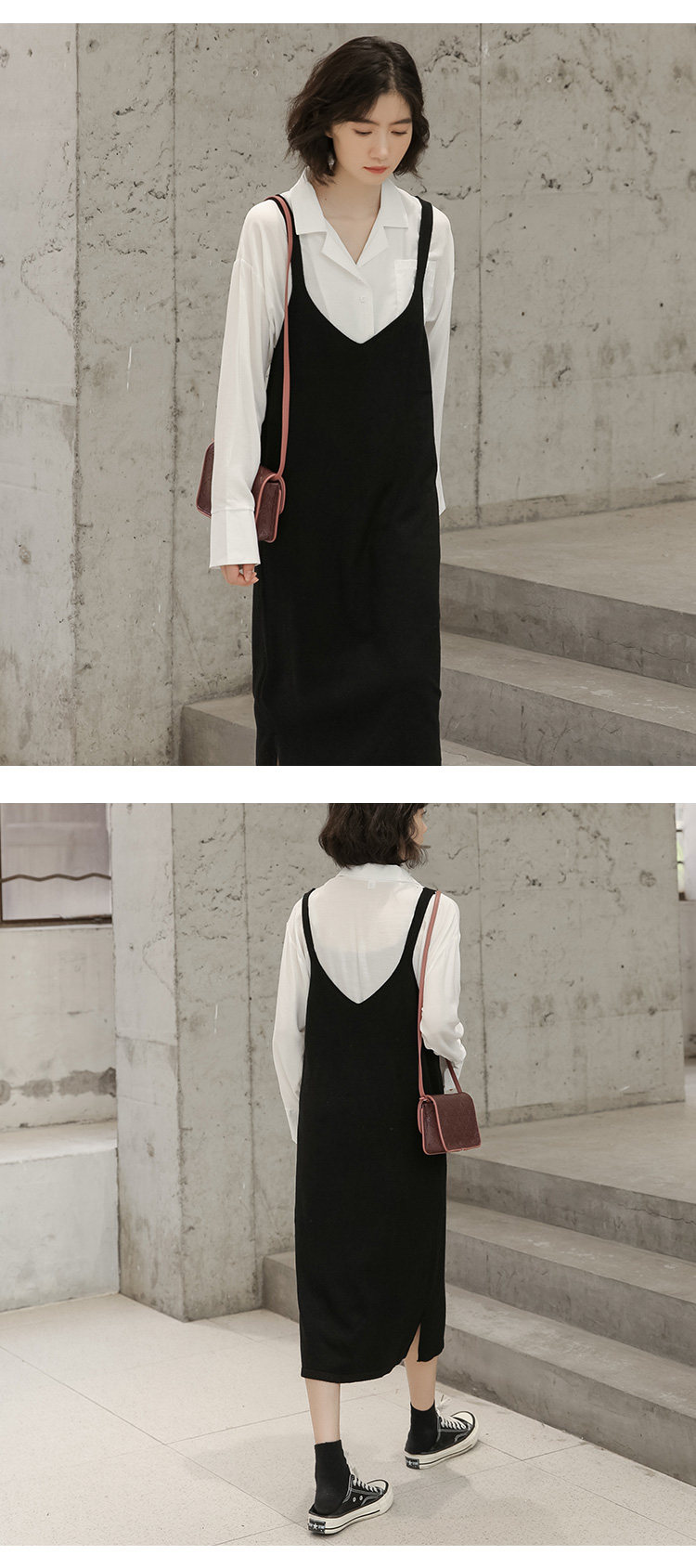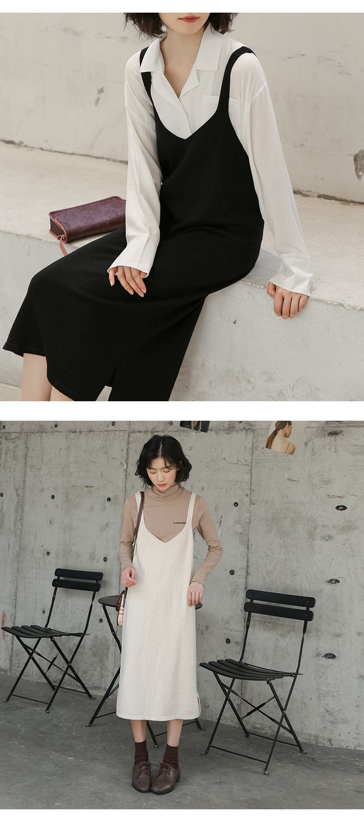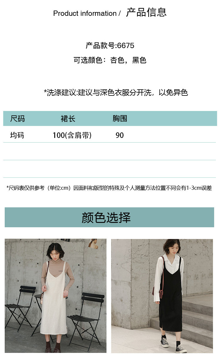 2020实拍图韩版百搭中长款针织V领吊带裙