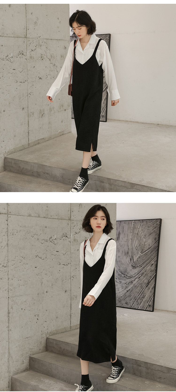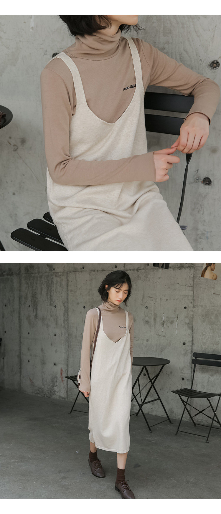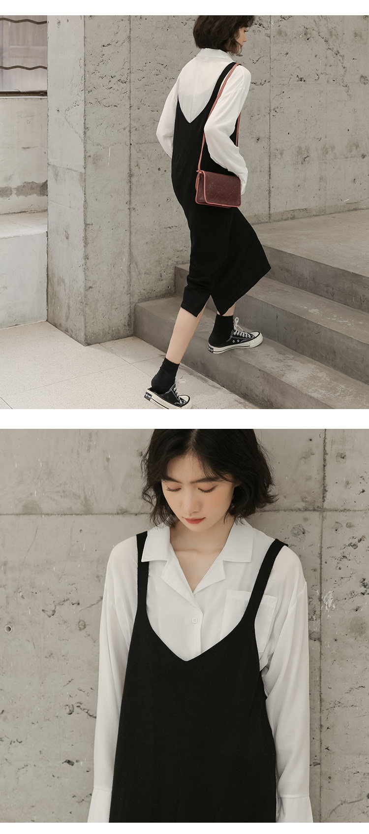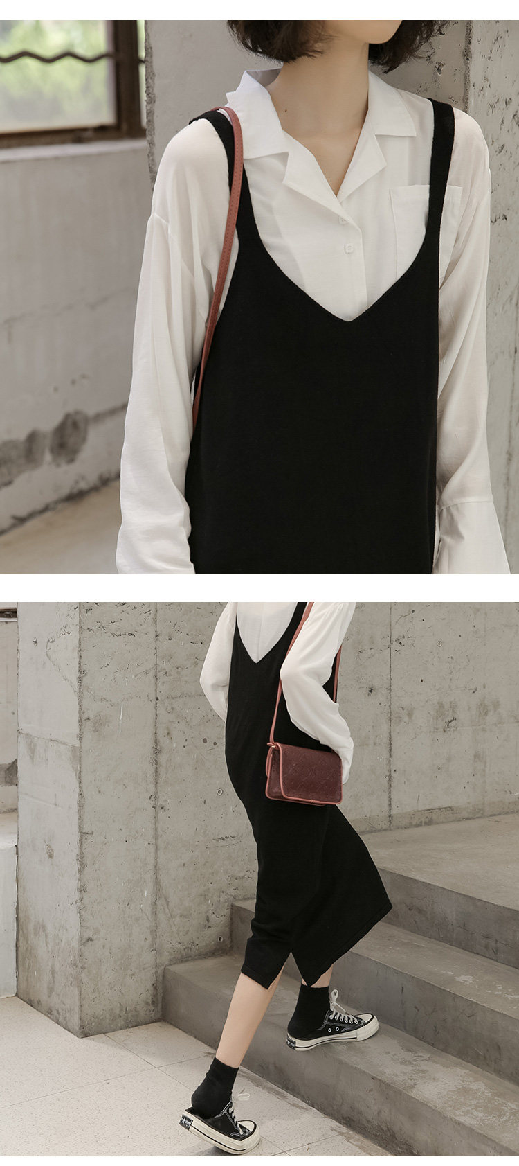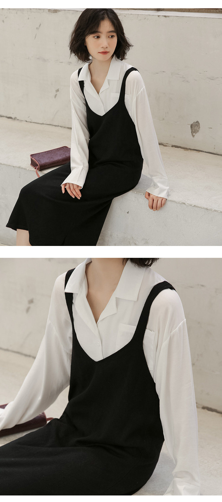 2020实拍图韩版百搭中长款针织V领吊带裙