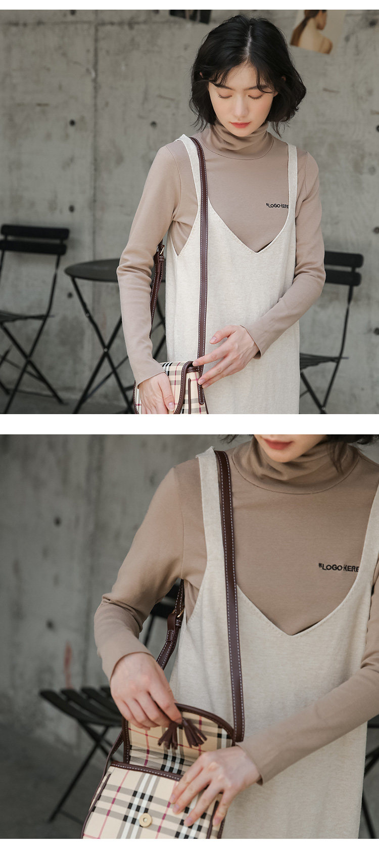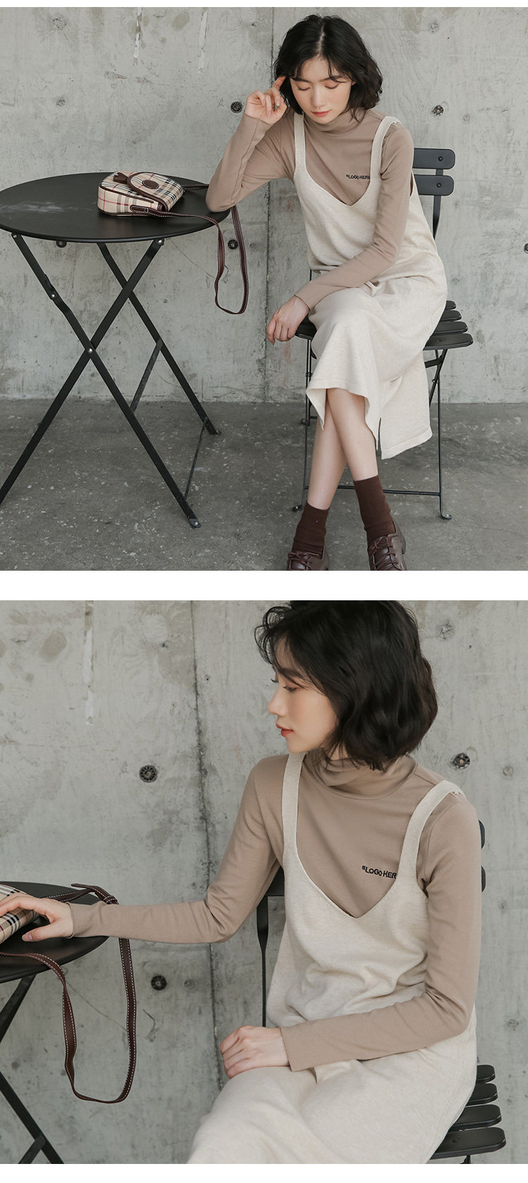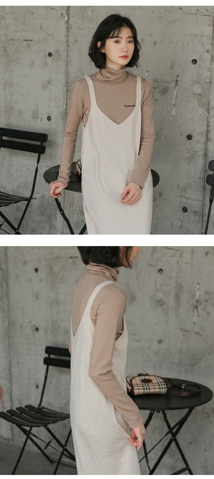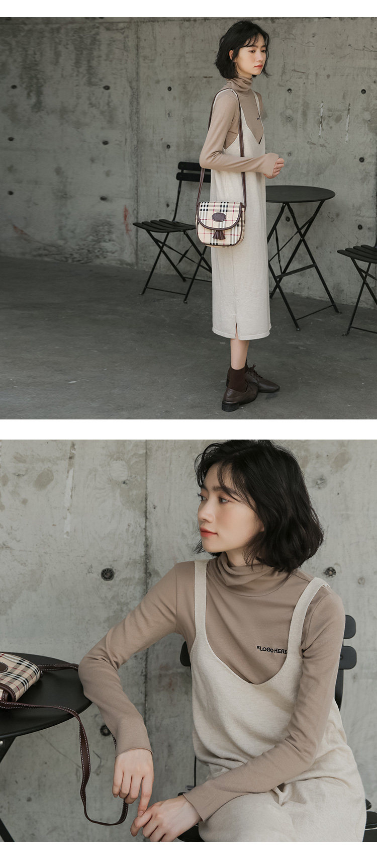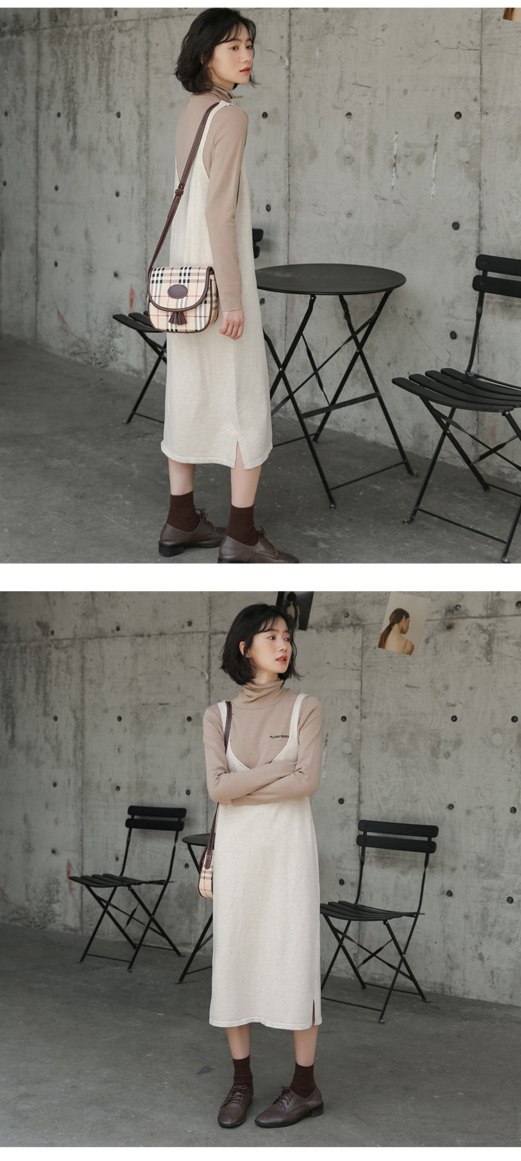 2020实拍图韩版百搭中长款针织V领吊带裙