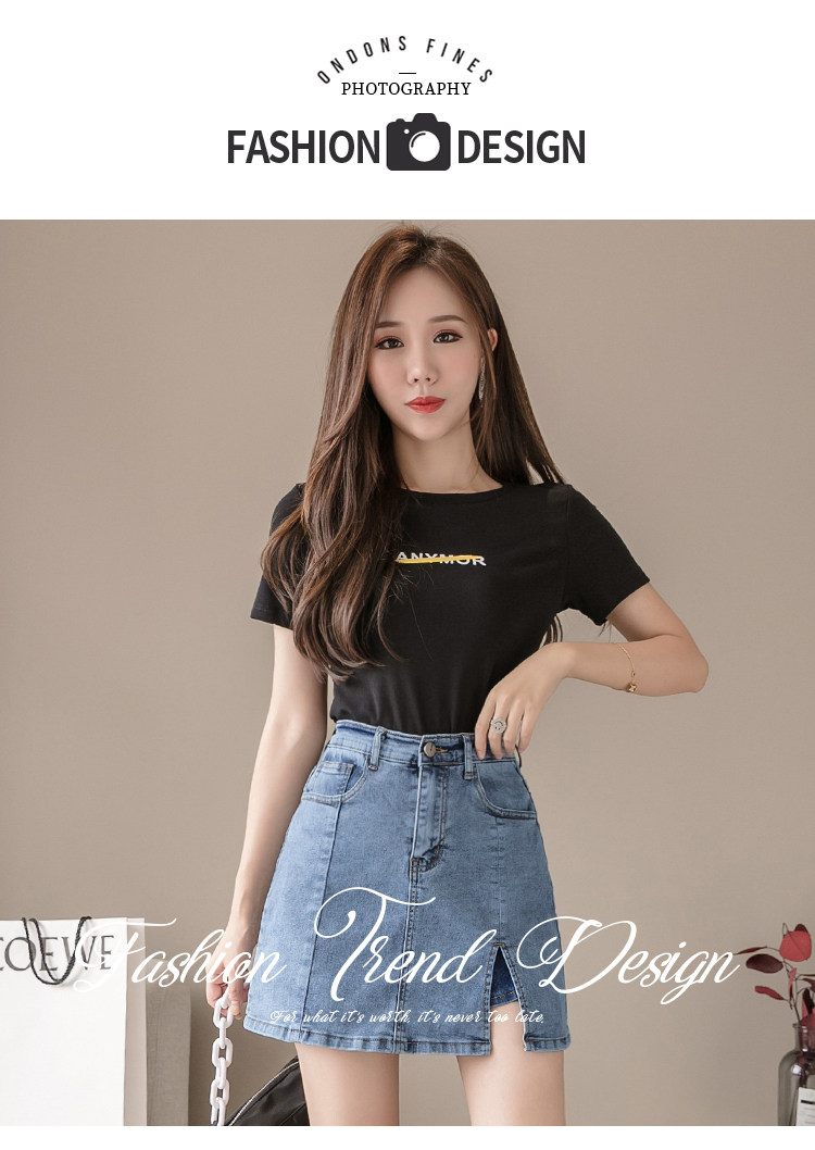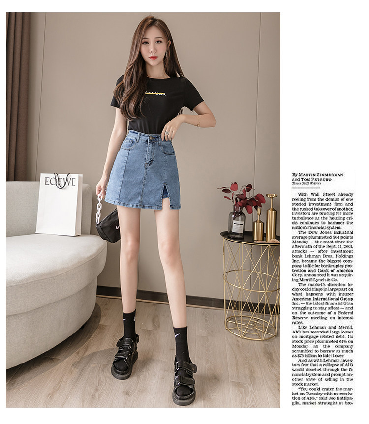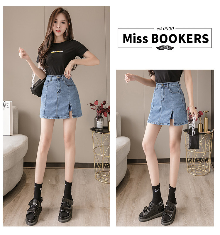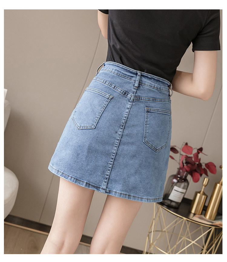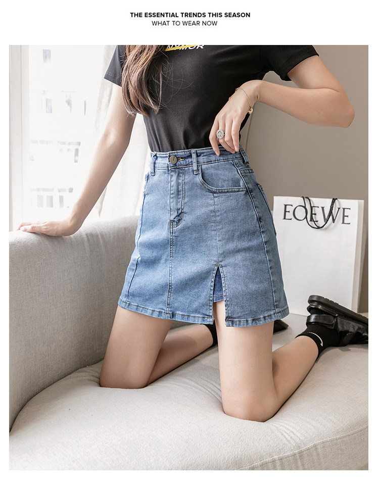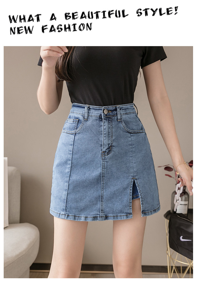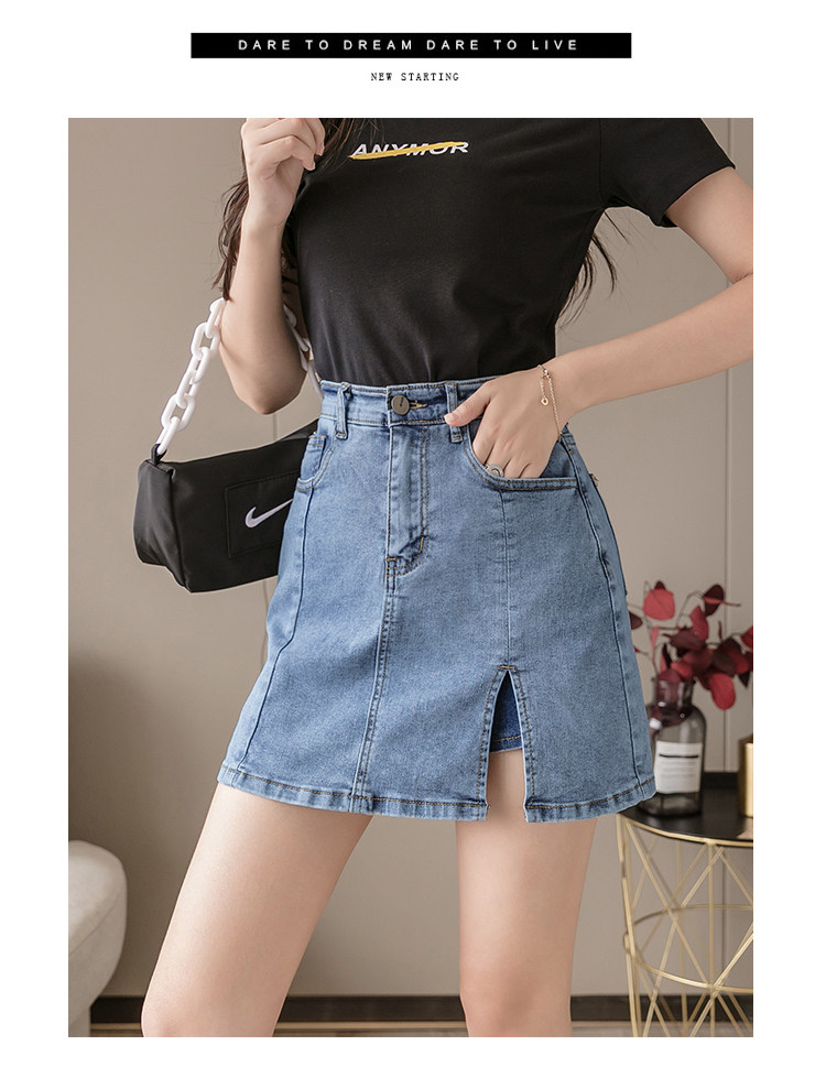实拍2021弹力高腰牛仔短裙女夏季百搭A字显瘦假两件包臀半身裤裙
