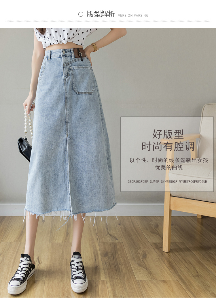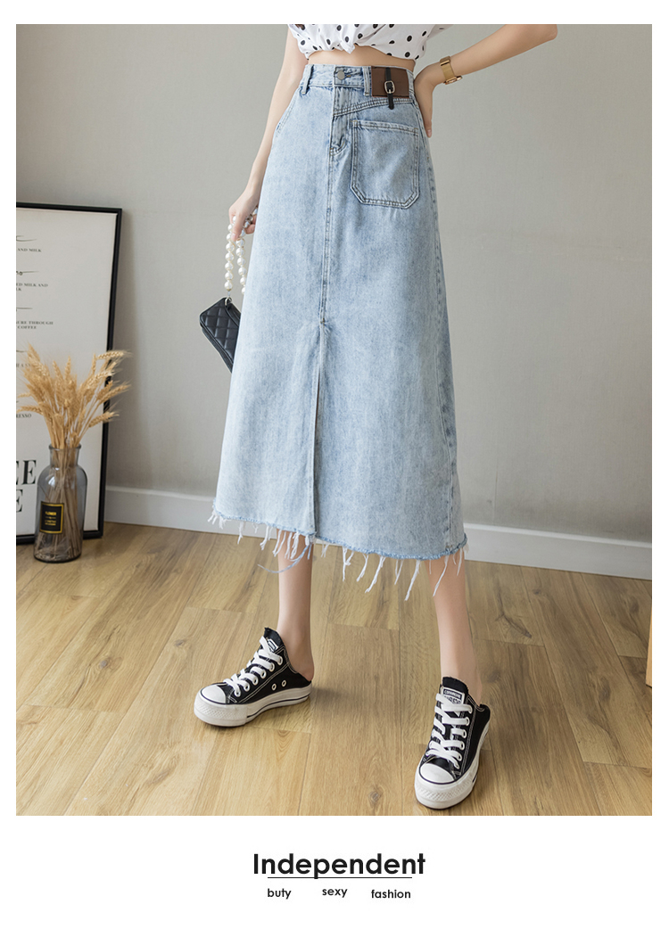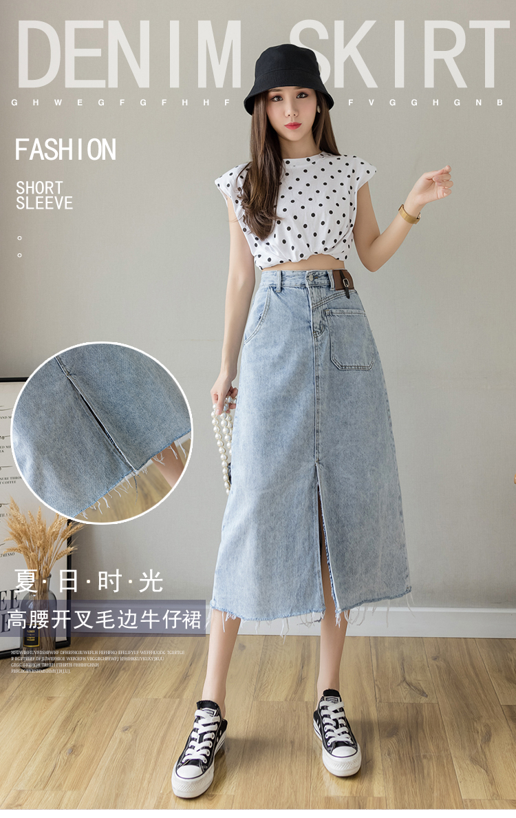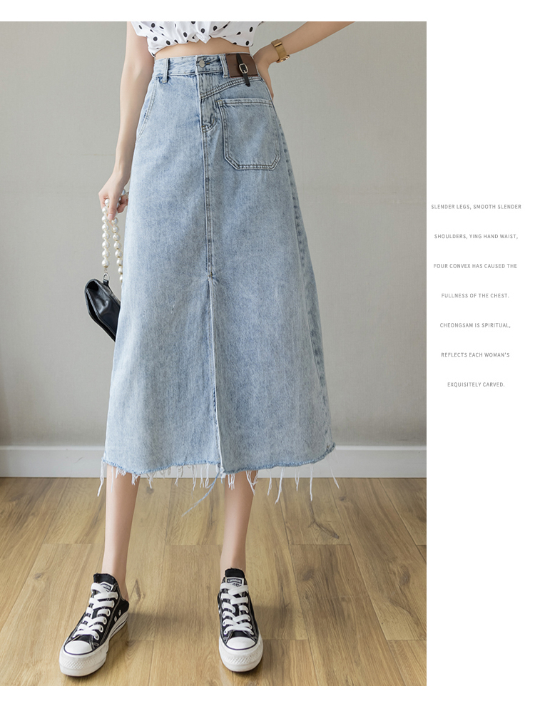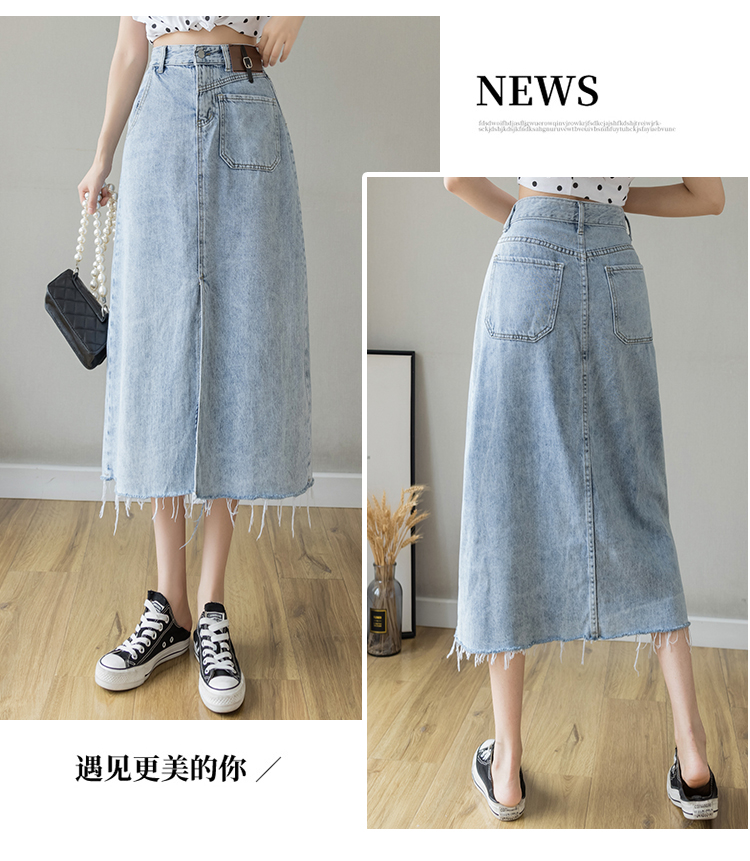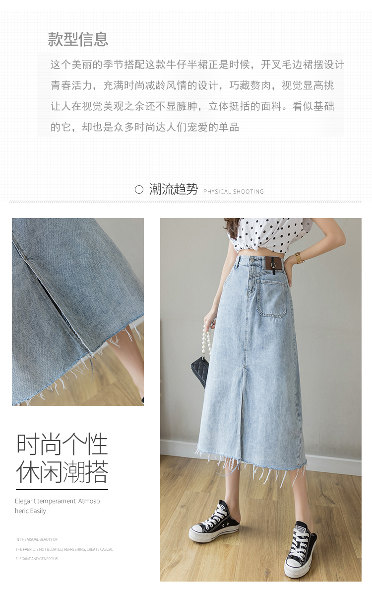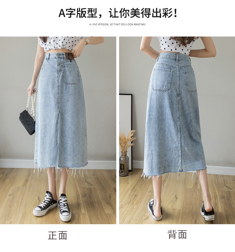 浅蓝色半身裙女夏季薄款2021年新款高腰a字中长款包臀开叉牛仔裙