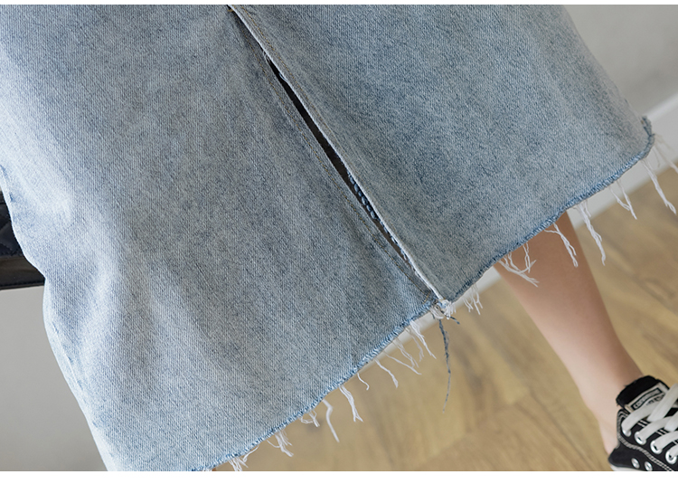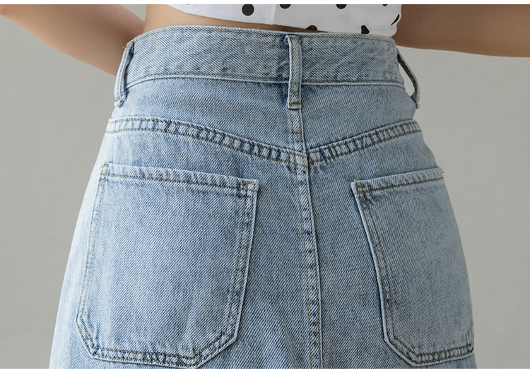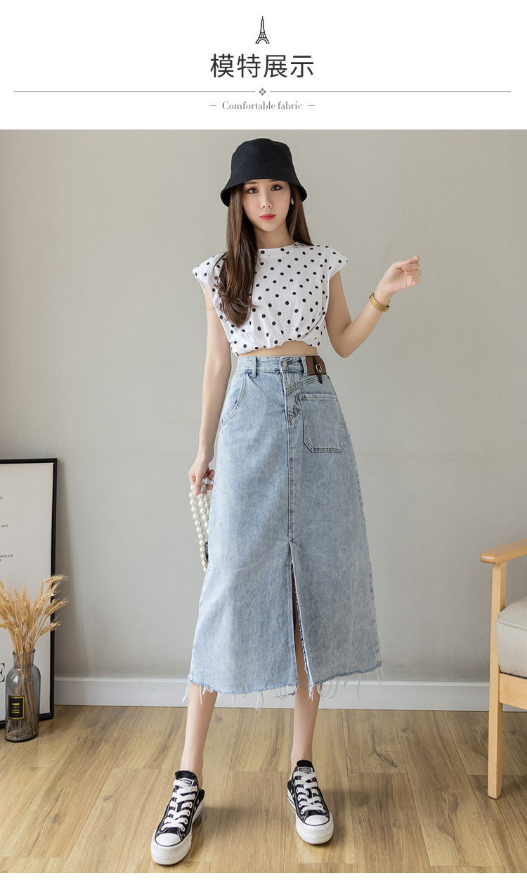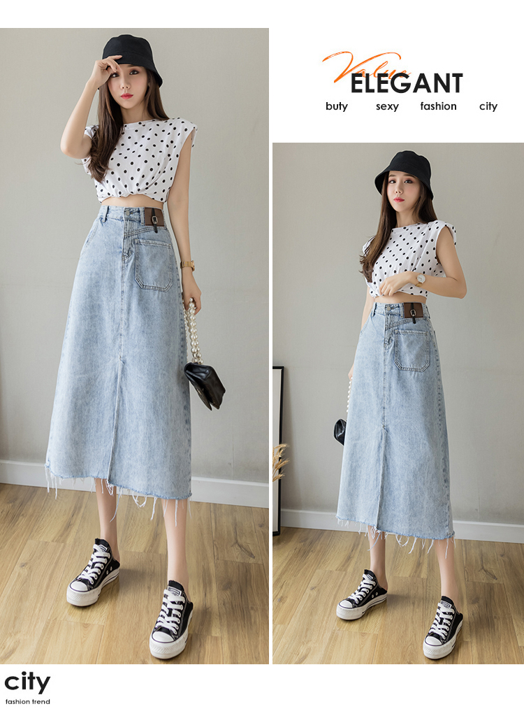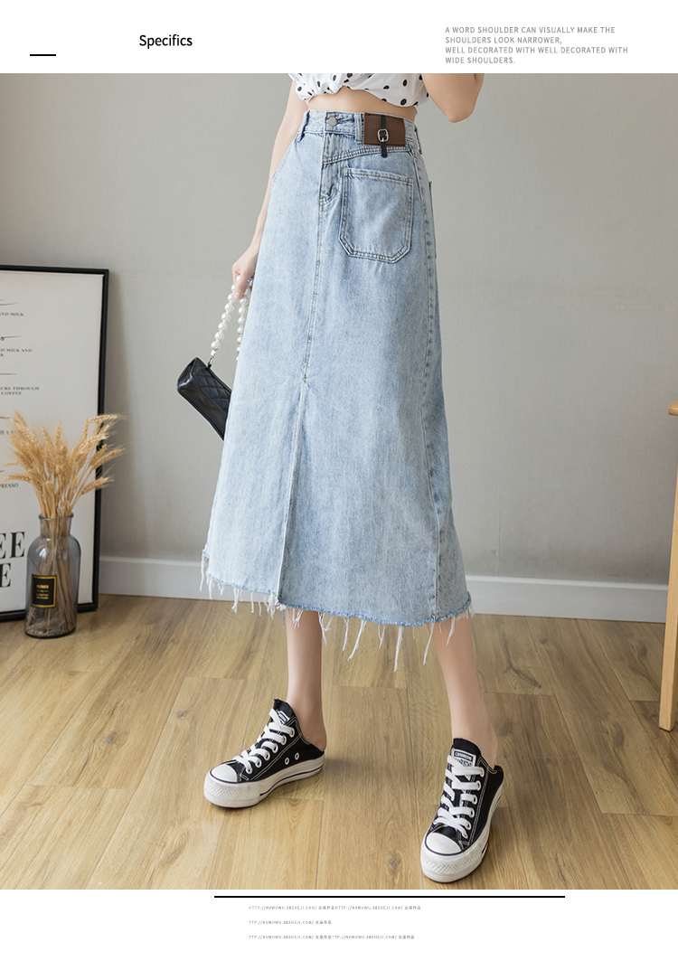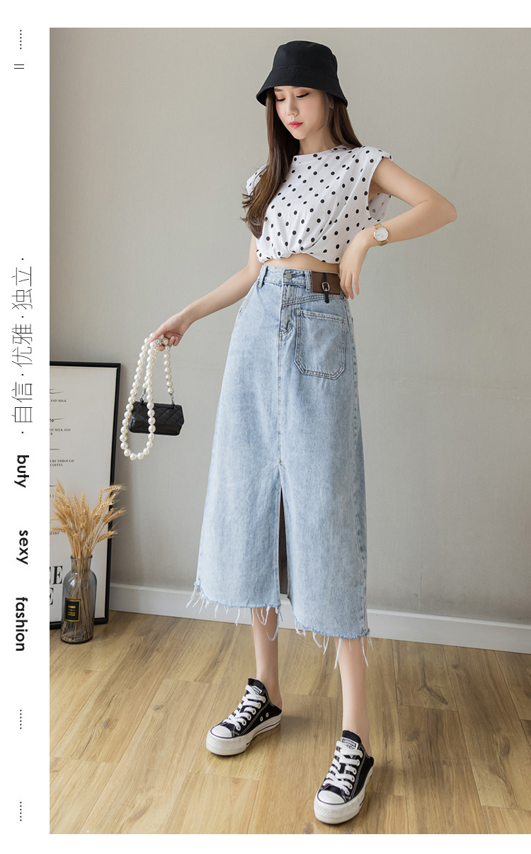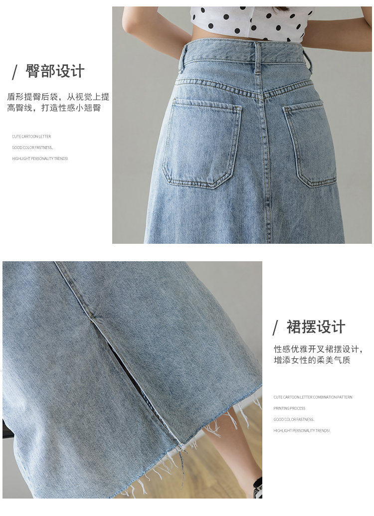 浅蓝色半身裙女夏季薄款2021年新款高腰a字中长款包臀开叉牛仔裙
