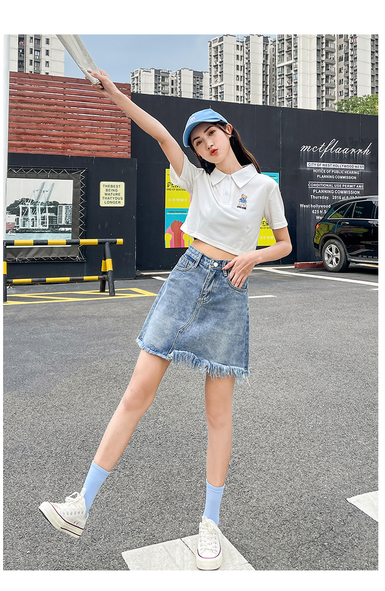 实拍港风牛仔半身裙2021年新款高腰a字显瘦短裙夏季女包臀裙子ins