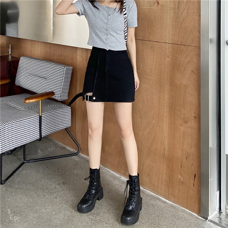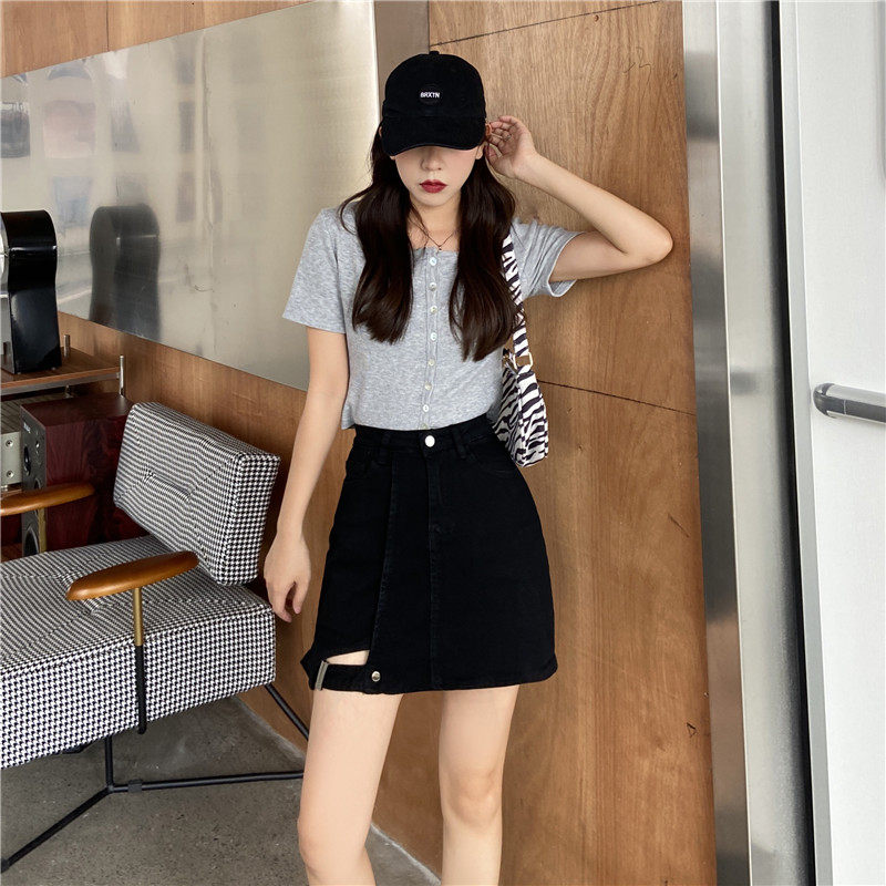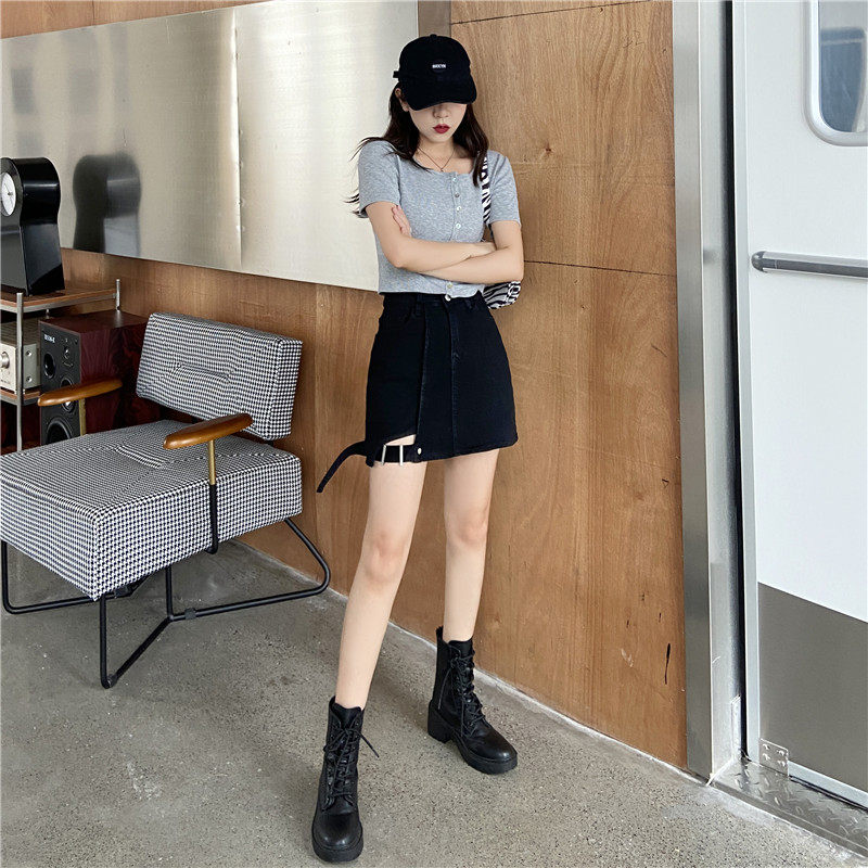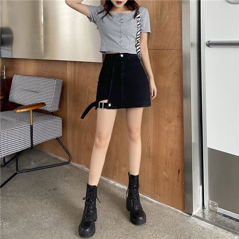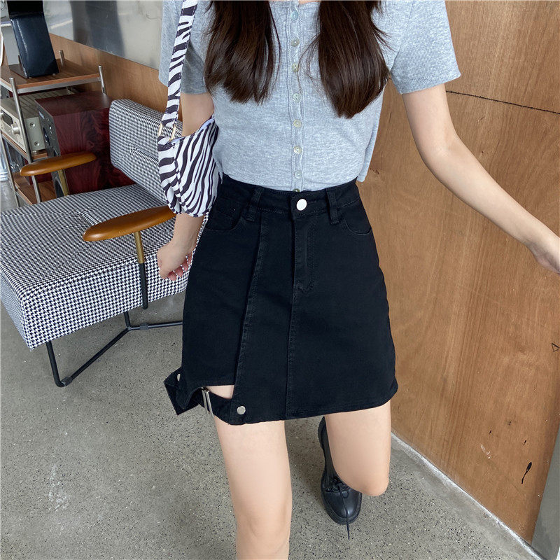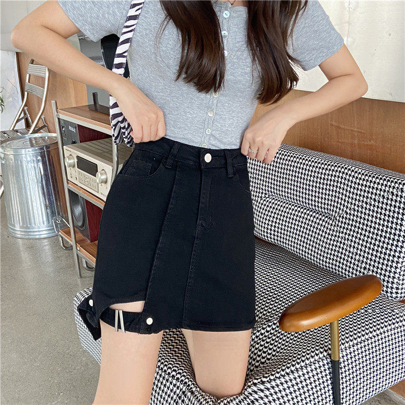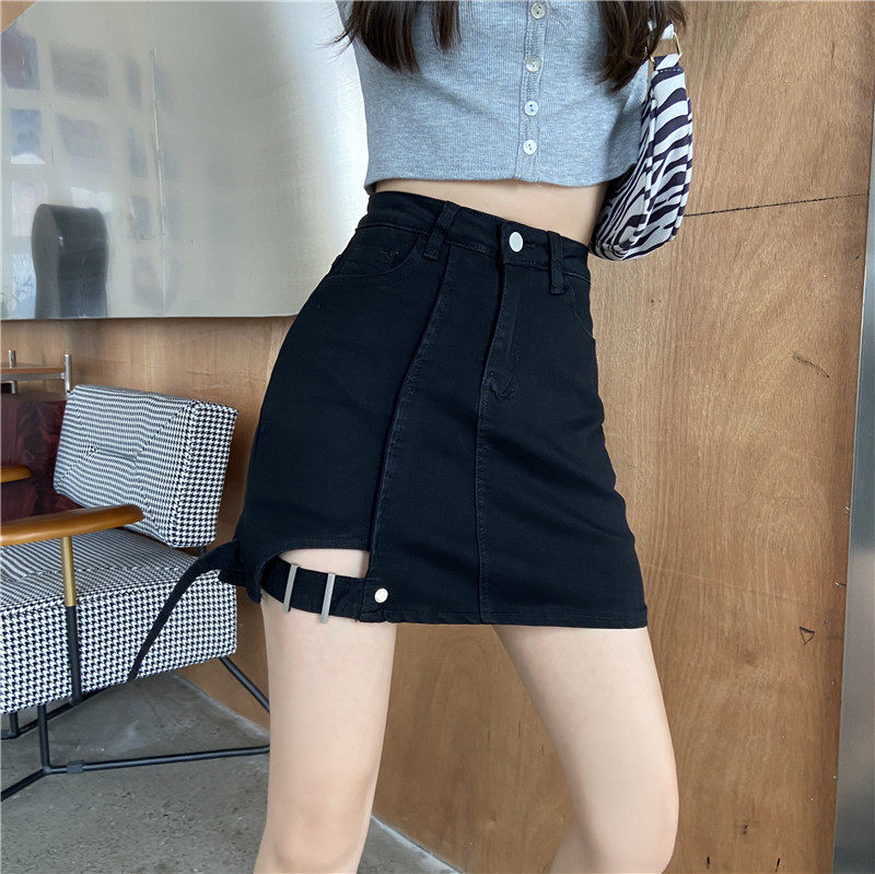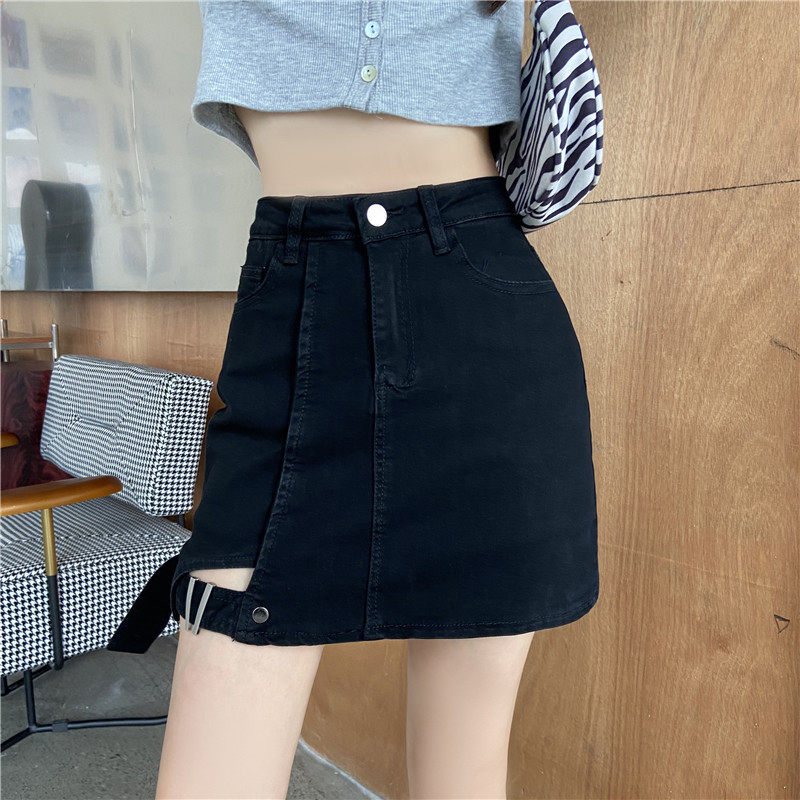 大码女装胖mm牛仔不规则高腰包臀半身裙2021年春夏新款黑色a字裙
