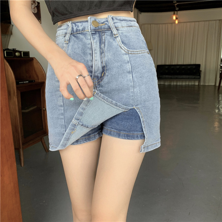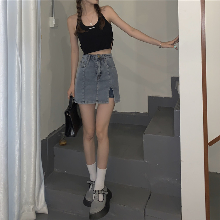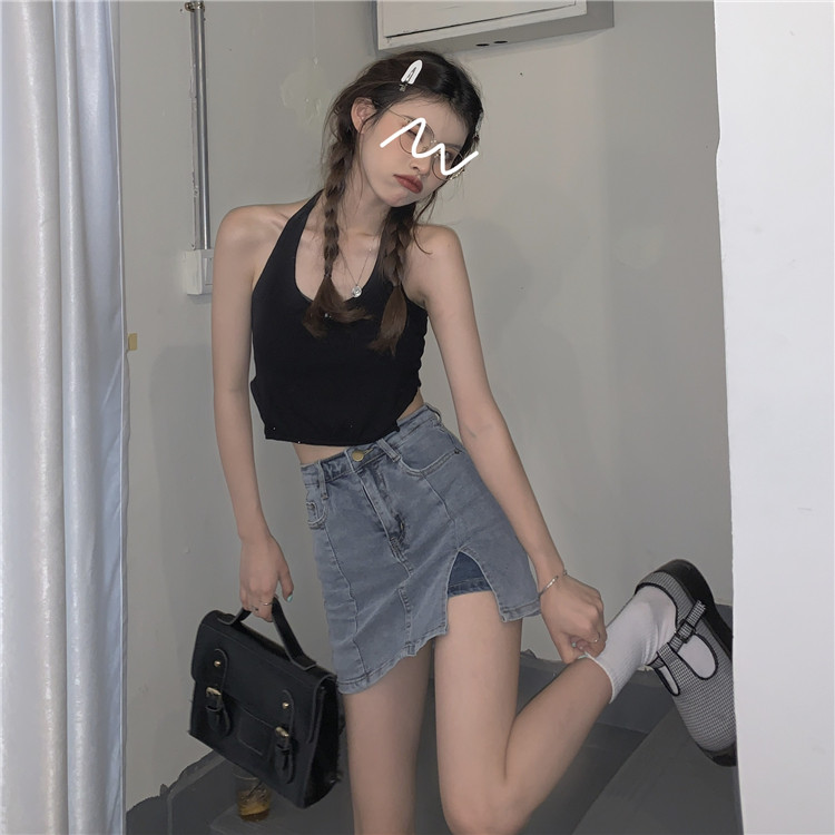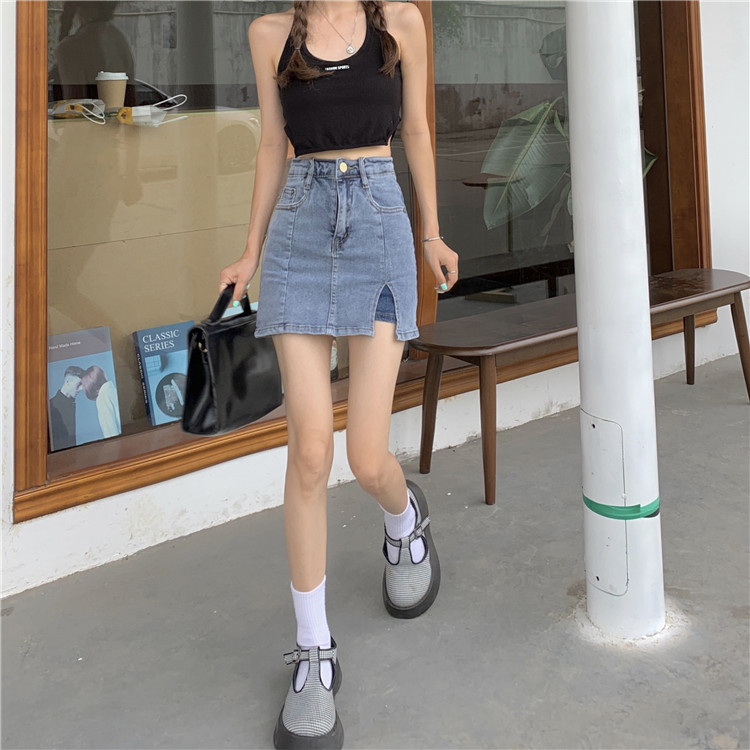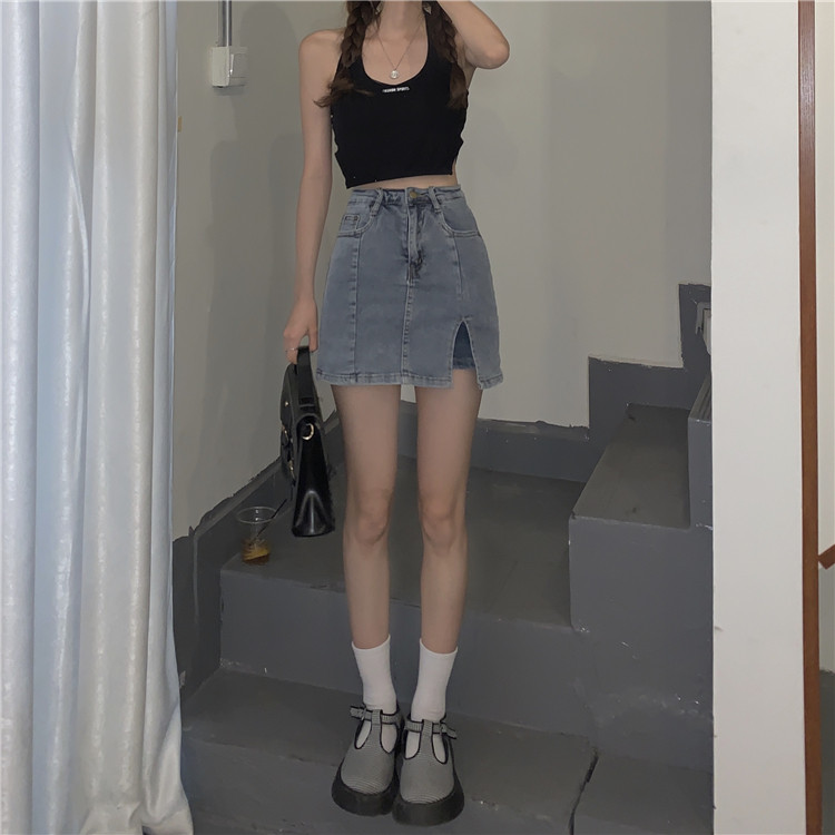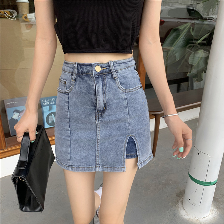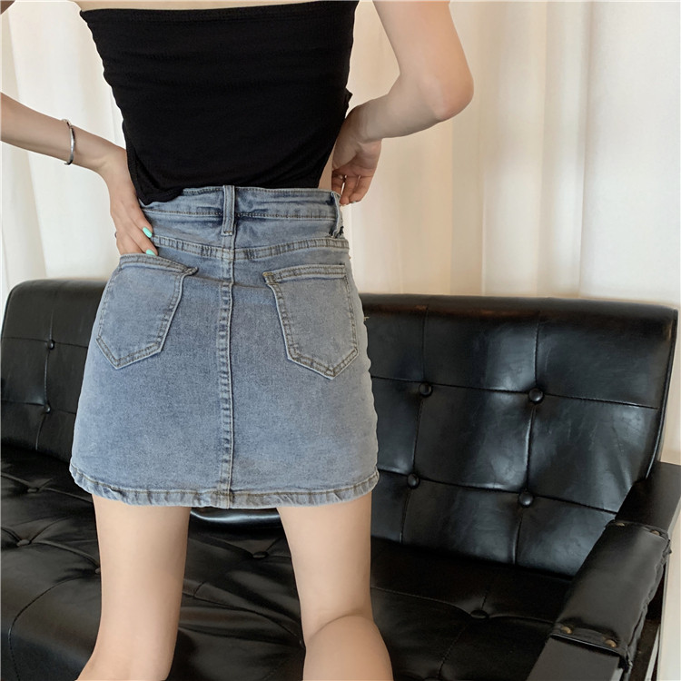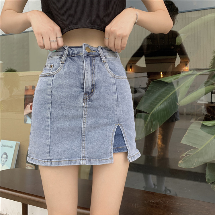 弹力包臀牛仔半身裙