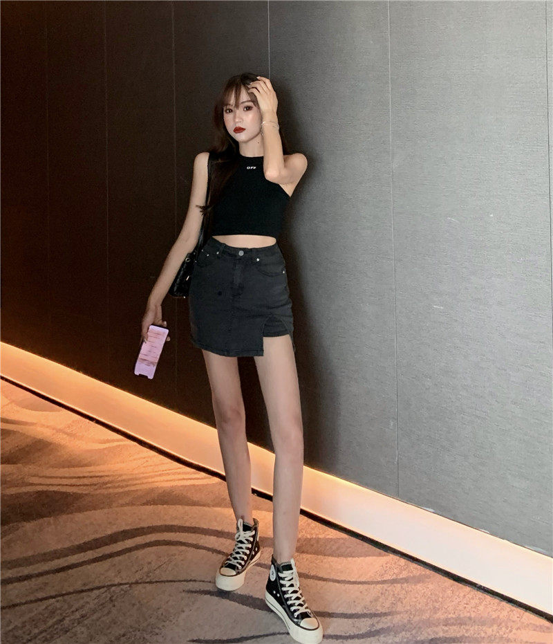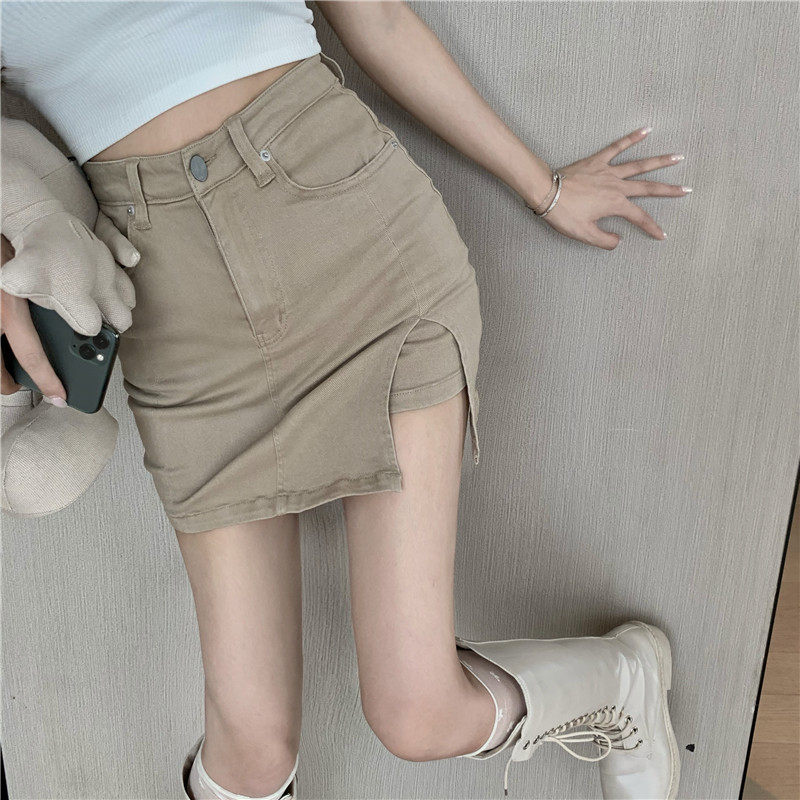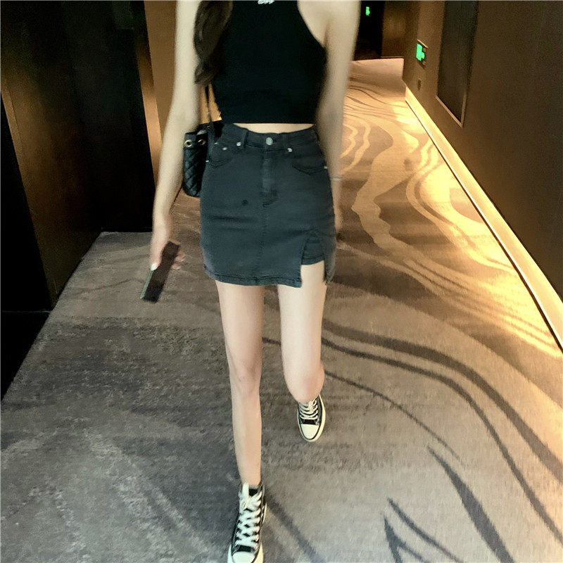 实拍实价不减39 高腰侧开叉包臀牛仔裙弹力a字半身裙